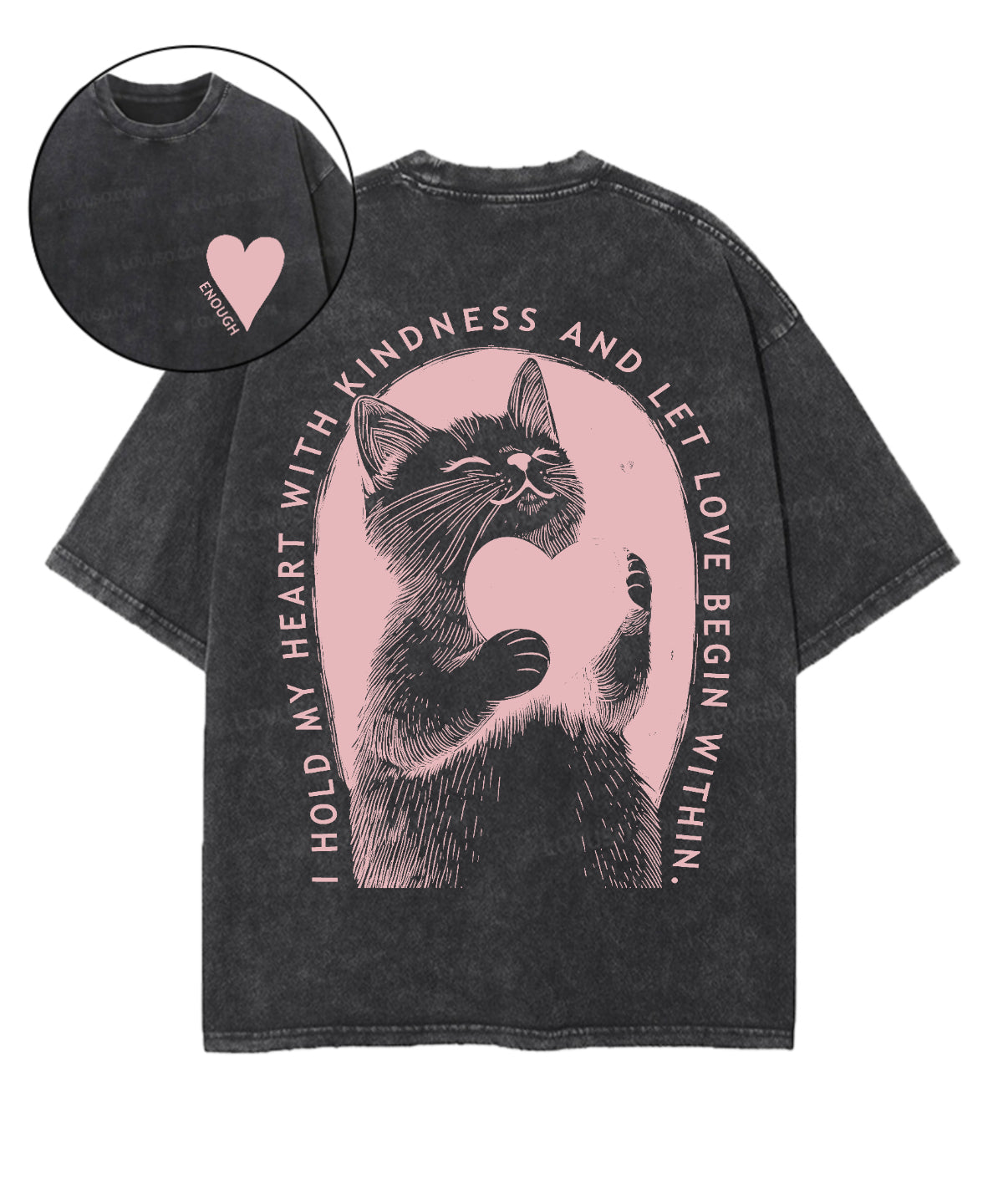 I Hold My Heart With Kindness Double Sided Washed T-shirt