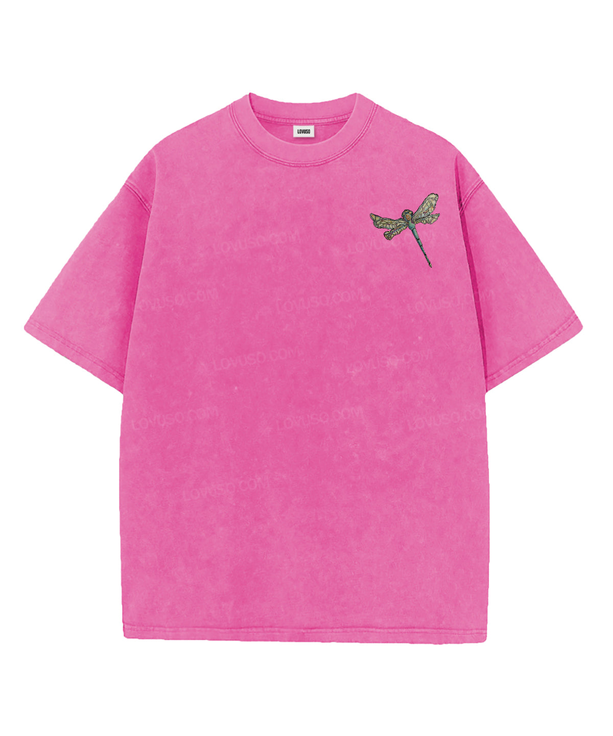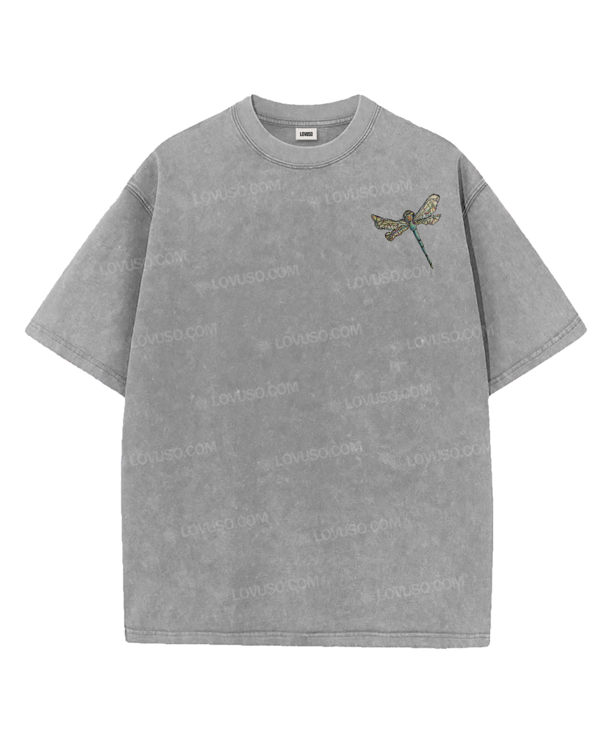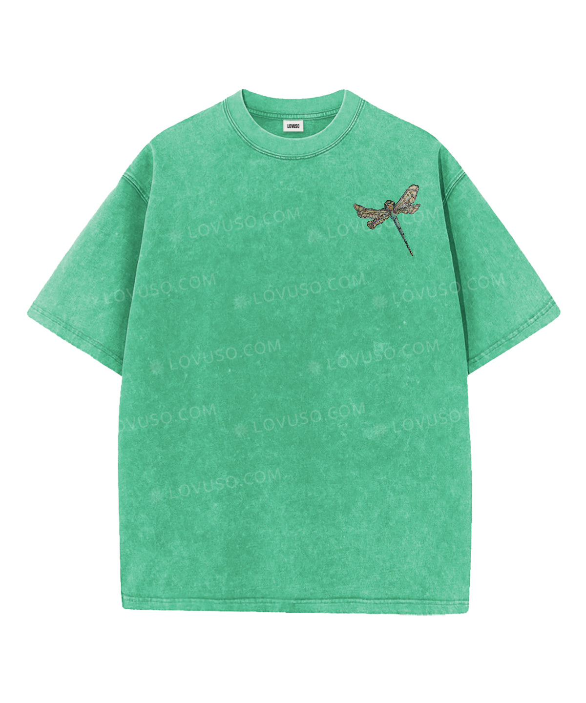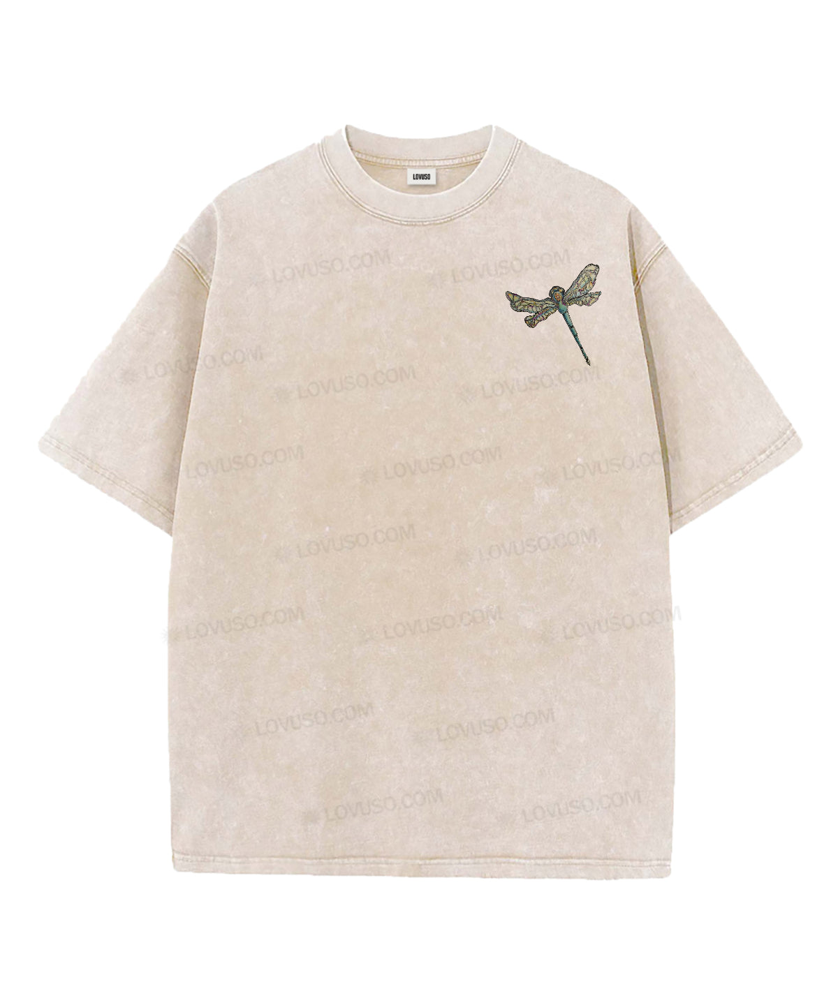 Retro Dragonfly Softly Always Double Sided Washed T-shirt