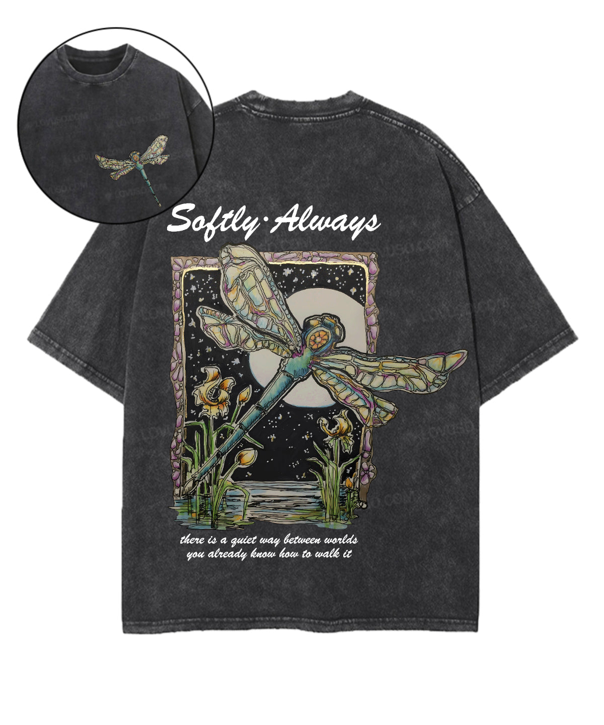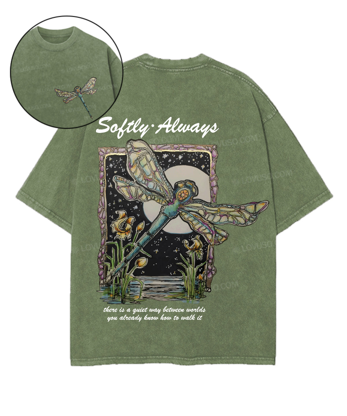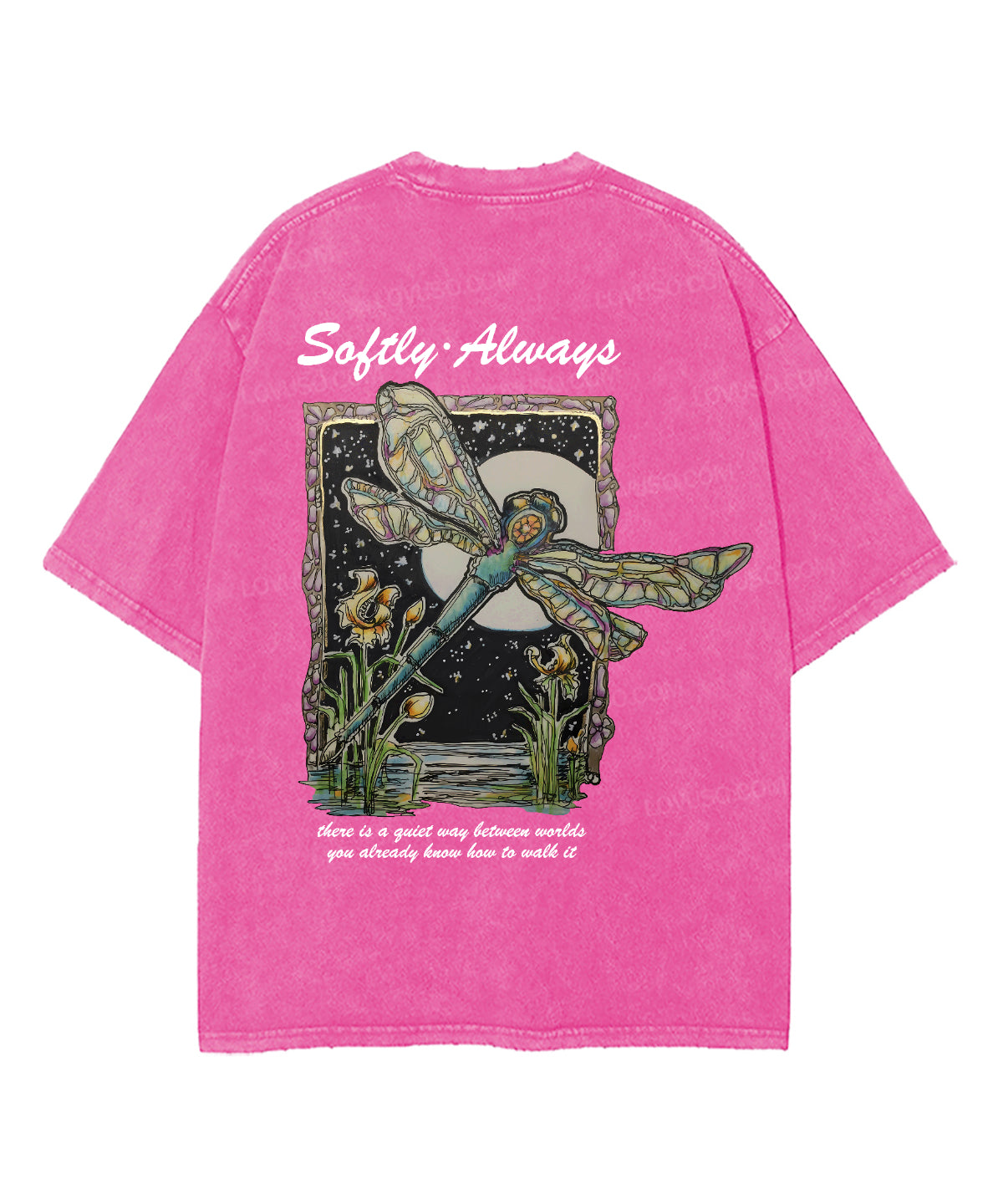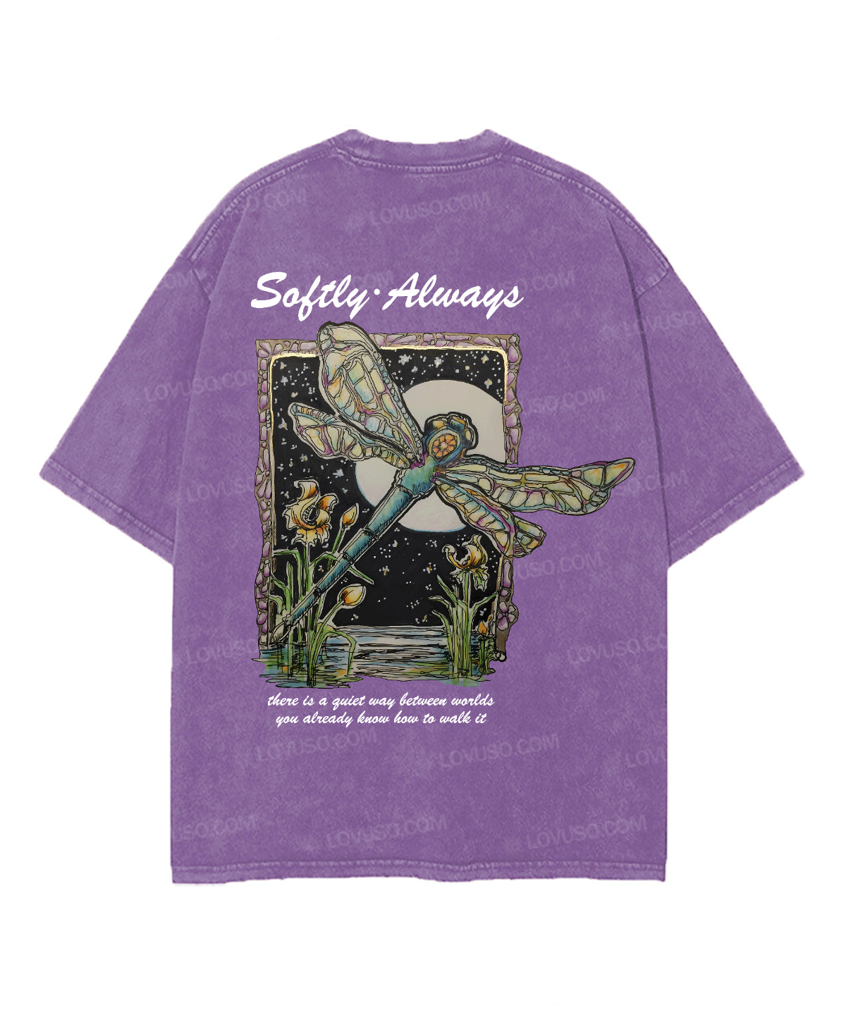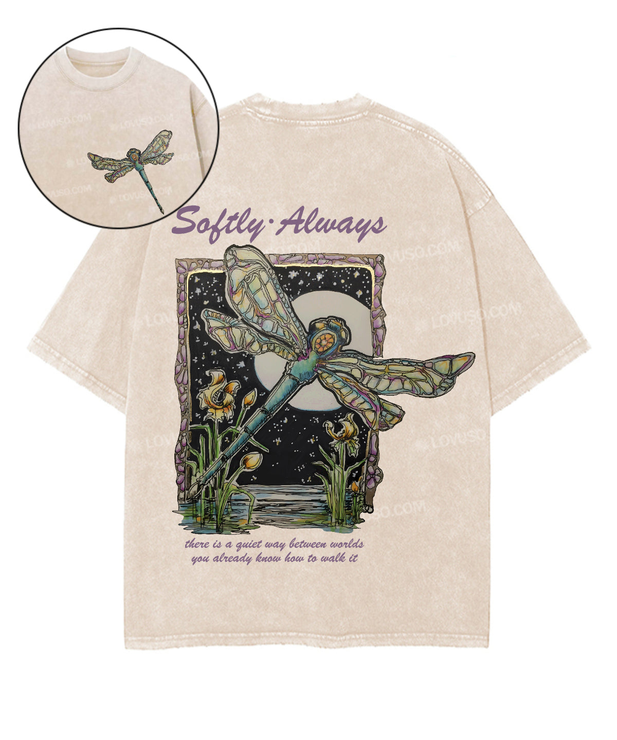 Retro Dragonfly Softly Always Double Sided Washed T-shirt