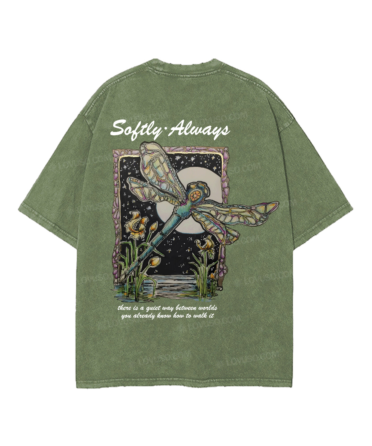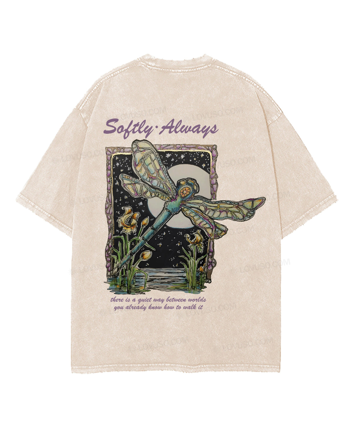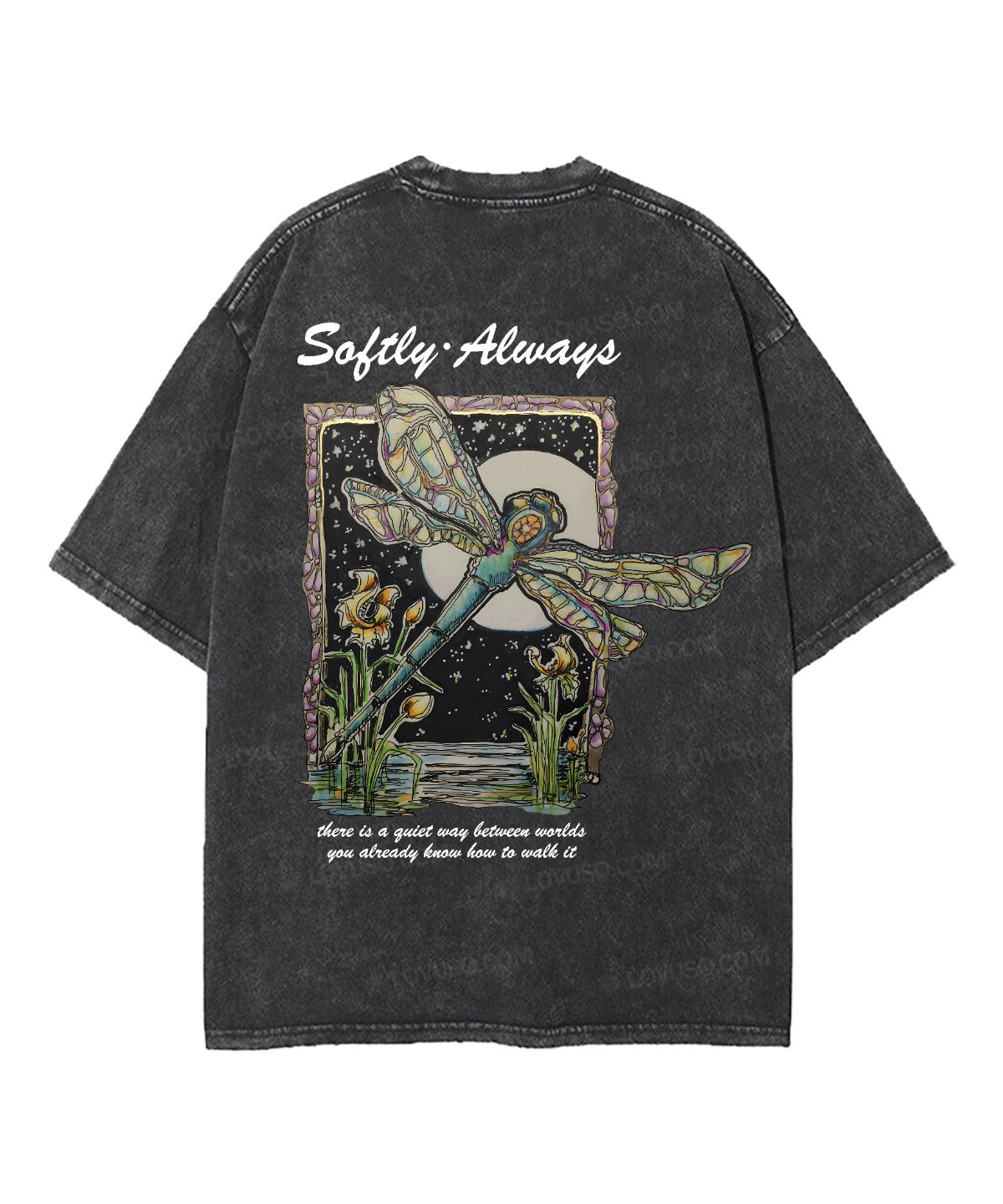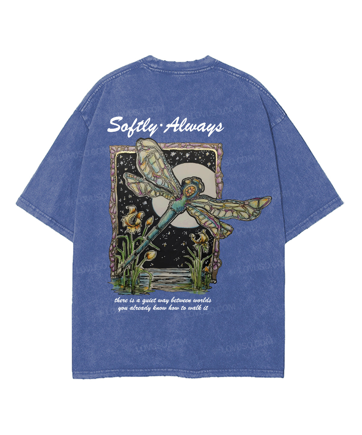 Retro Dragonfly Softly Always Double Sided Washed T-shirt