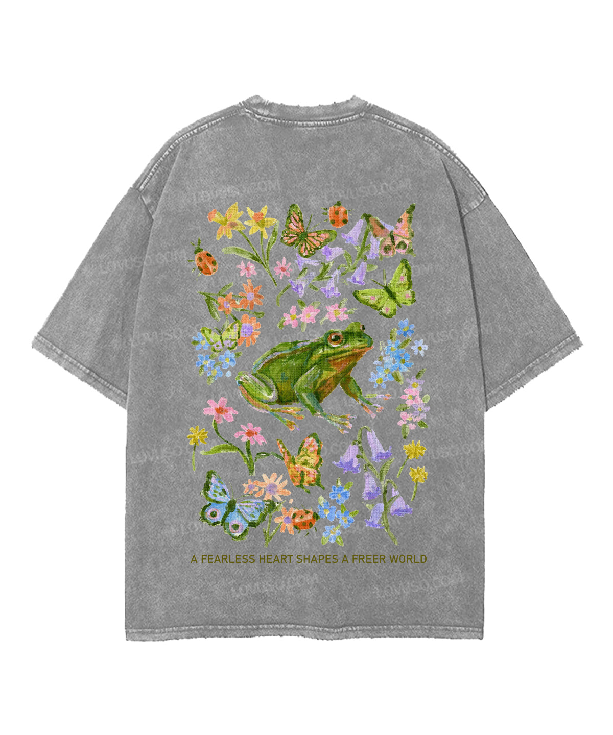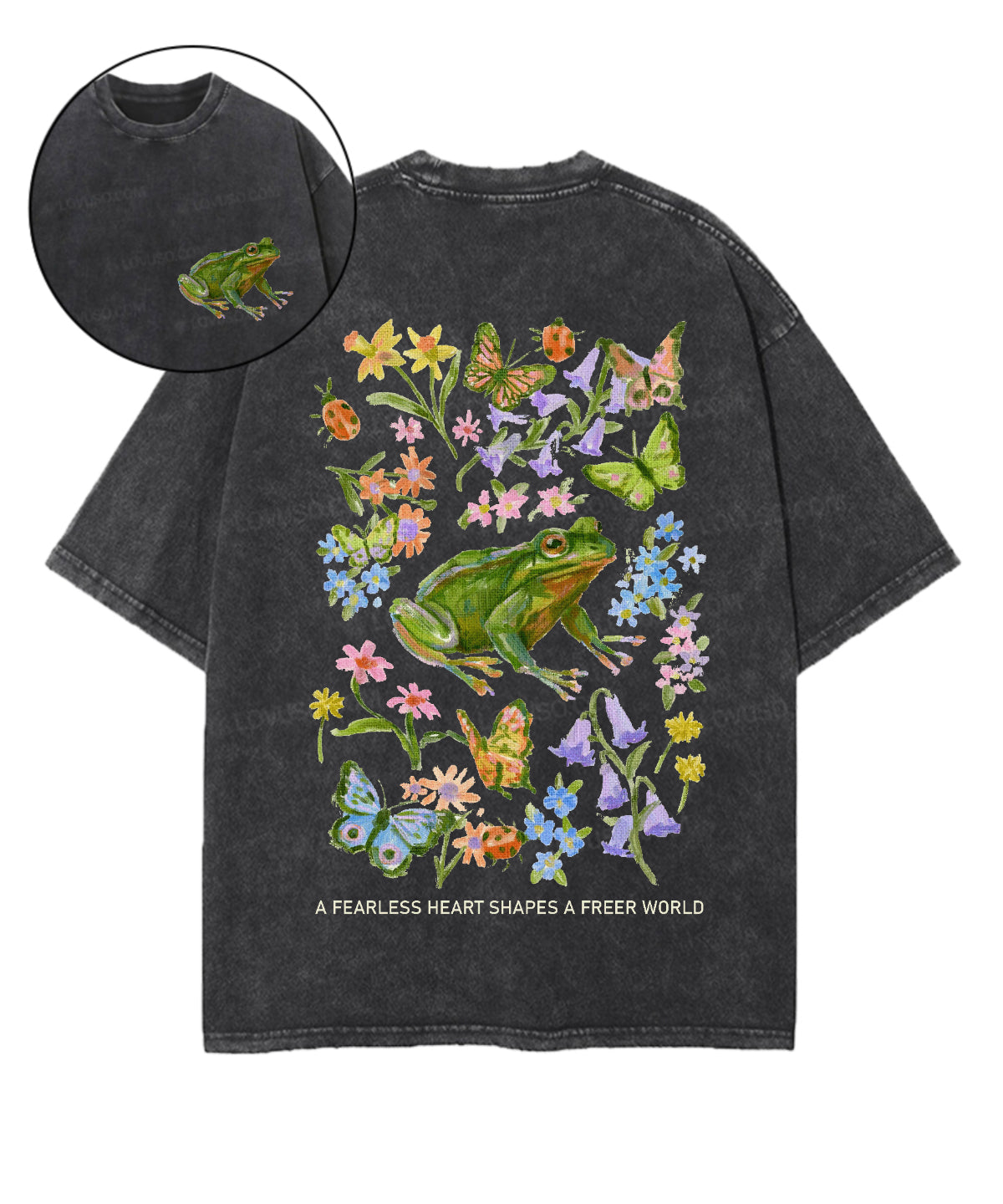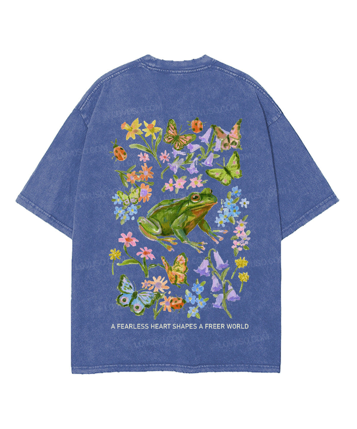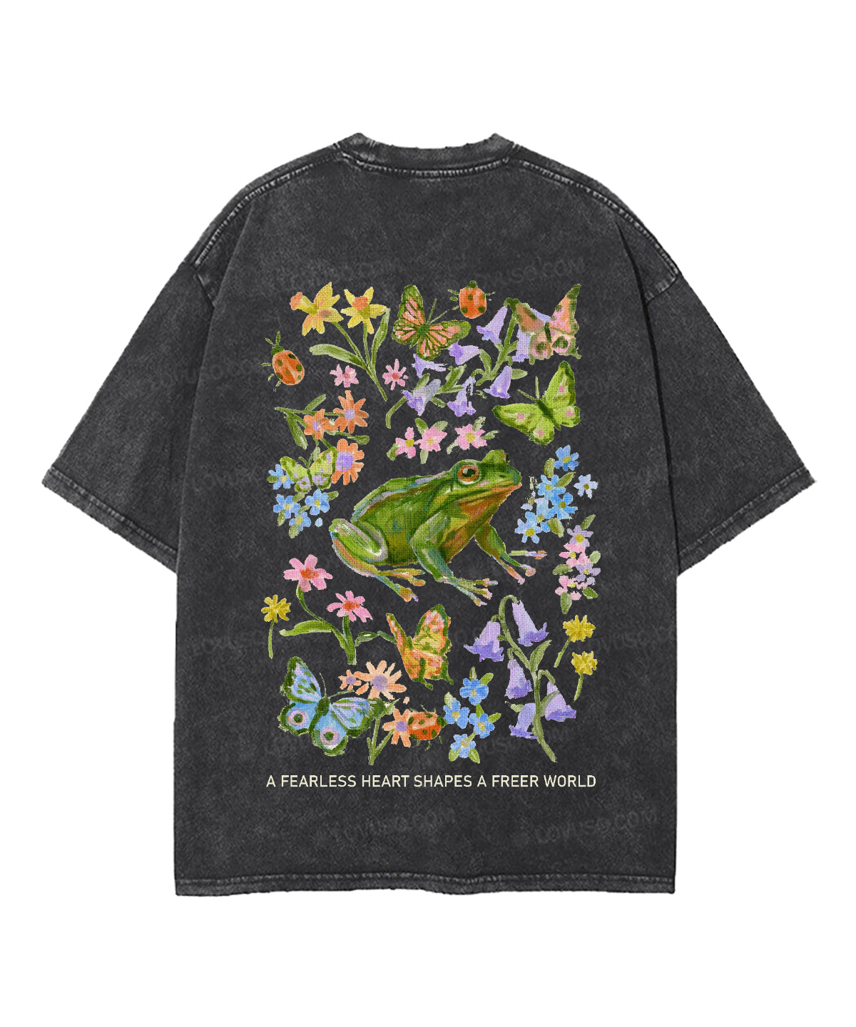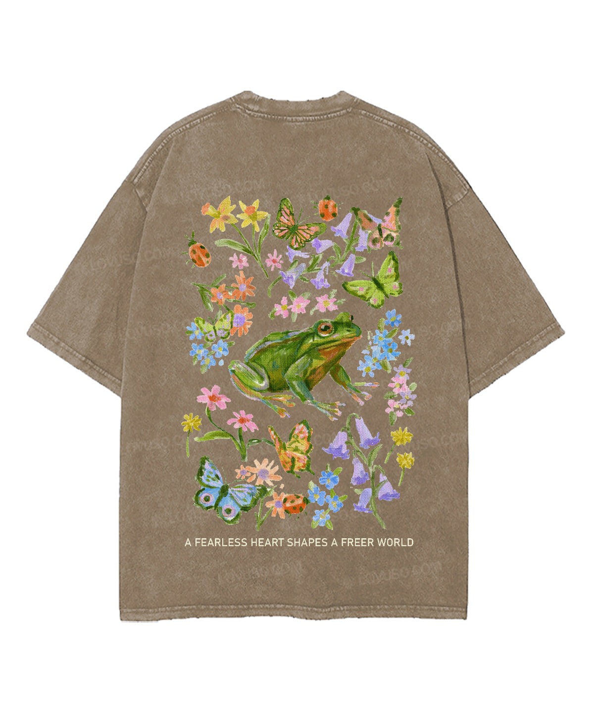 Retro Funny Frog A Fearless Heart Shapes A Freer World Double Sided Washed T-shirt