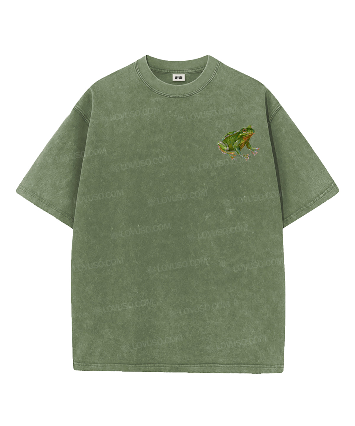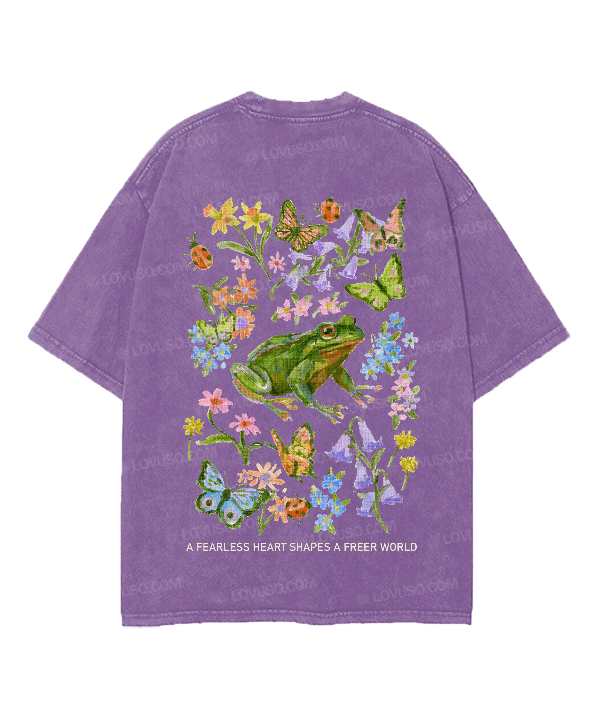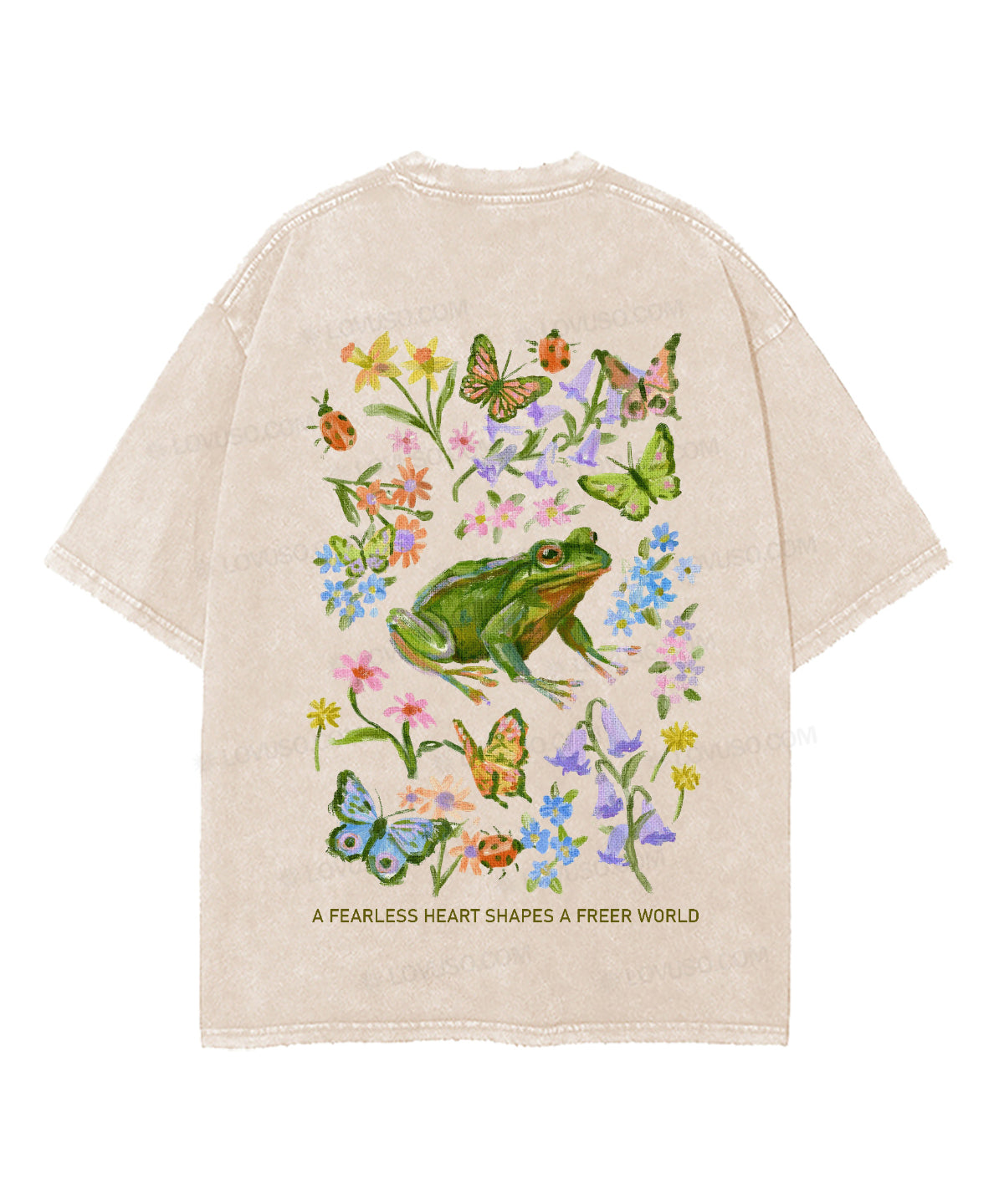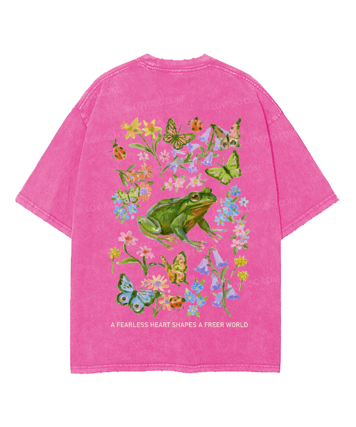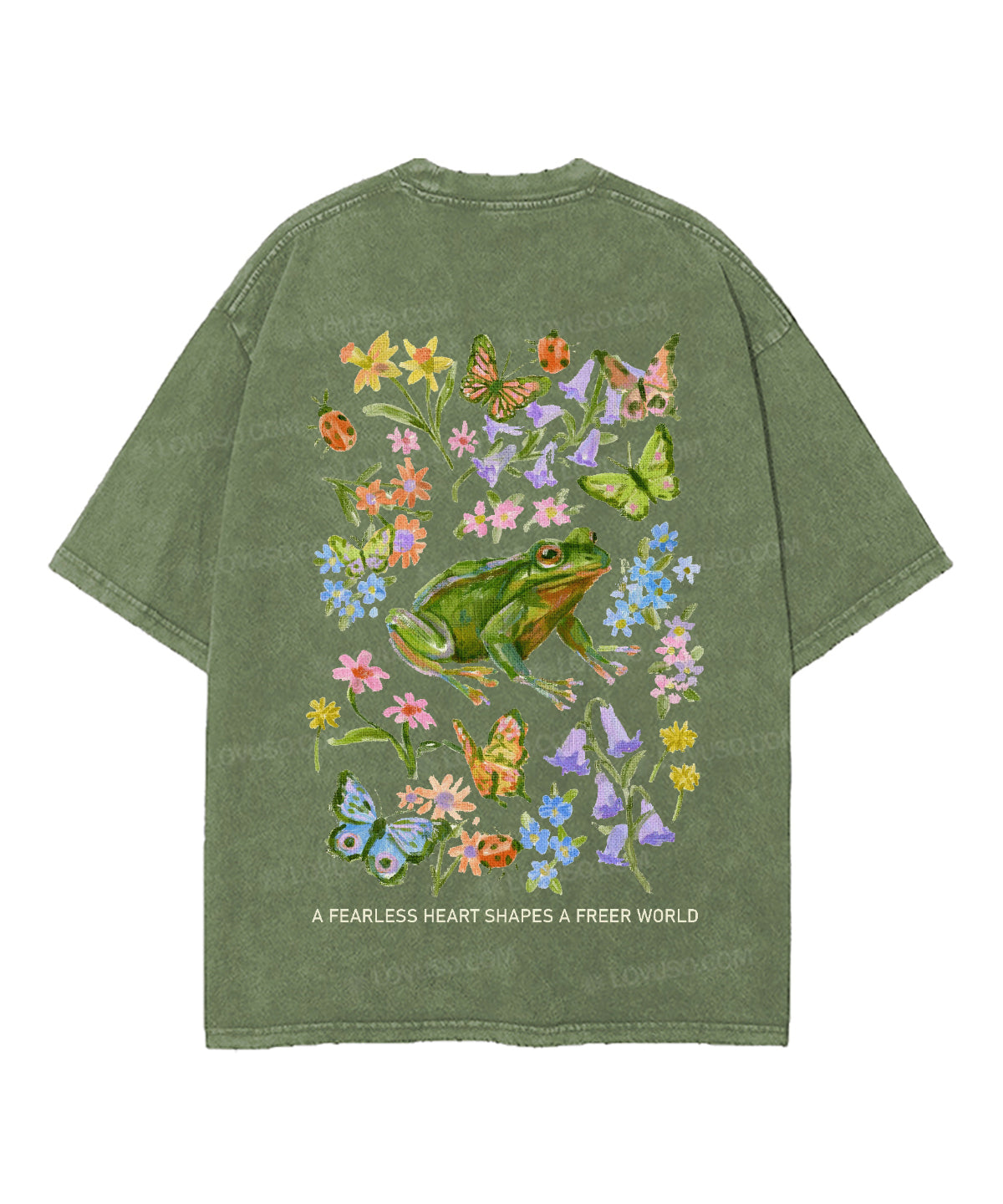 Retro Funny Frog A Fearless Heart Shapes A Freer World Double Sided Washed T-shirt