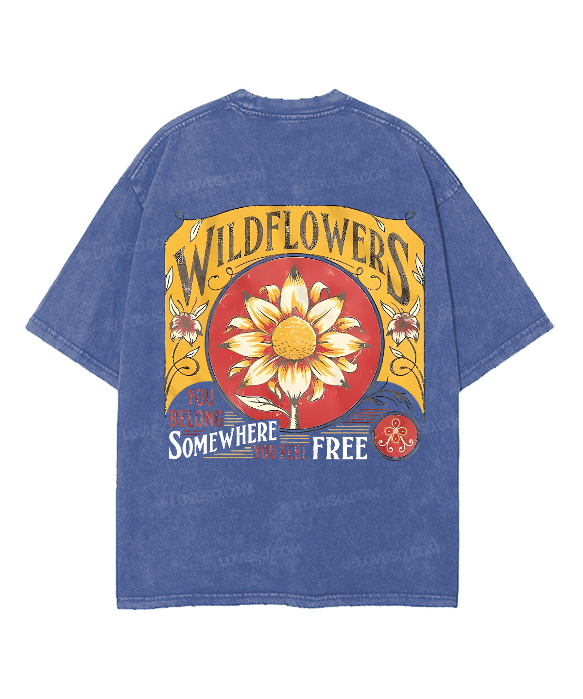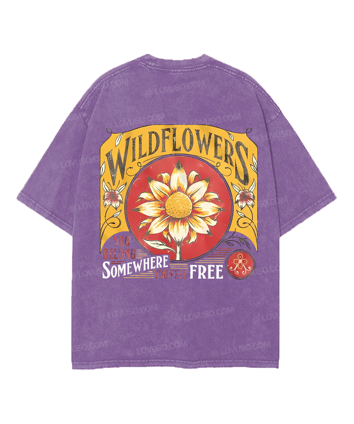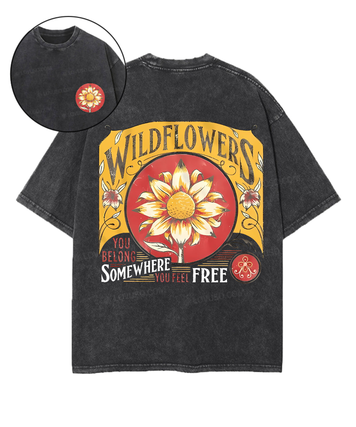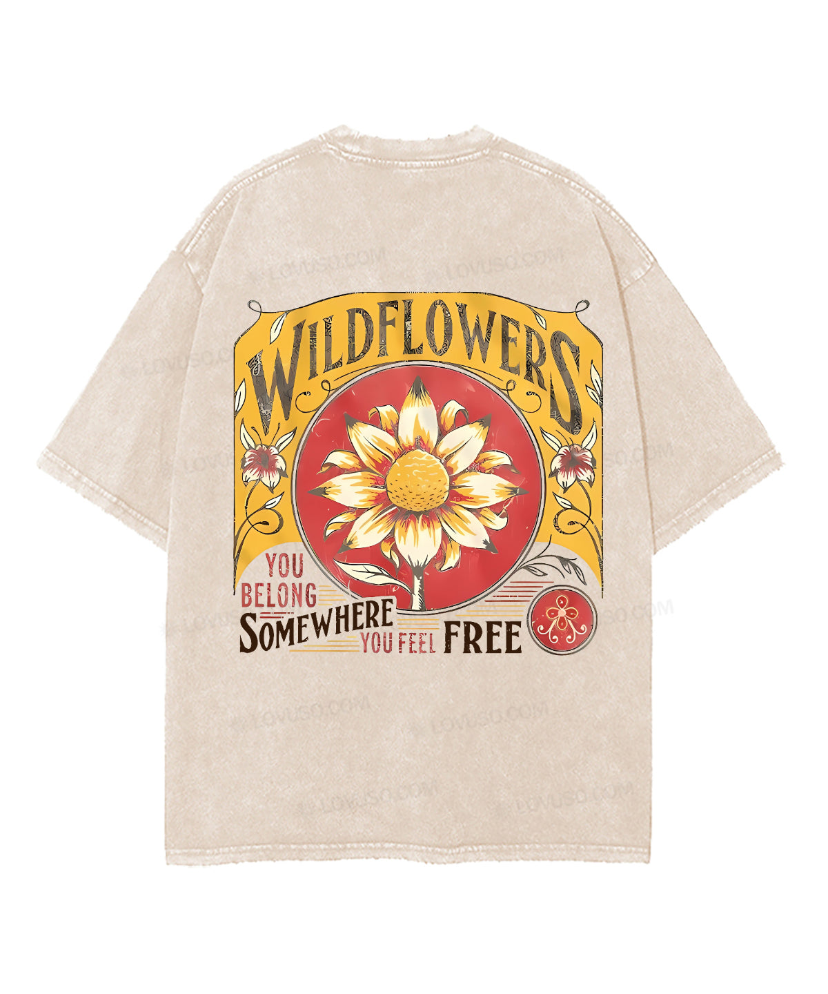 Retro Wildflowers You Belong Somewhere You Feel Free Double Sided Washed T-shirt