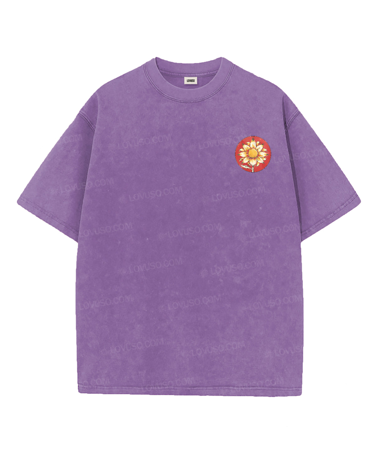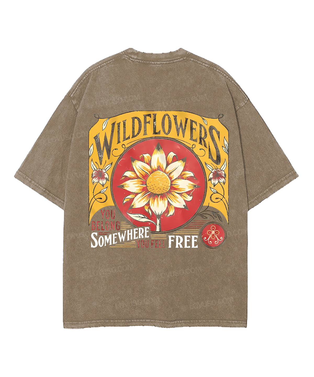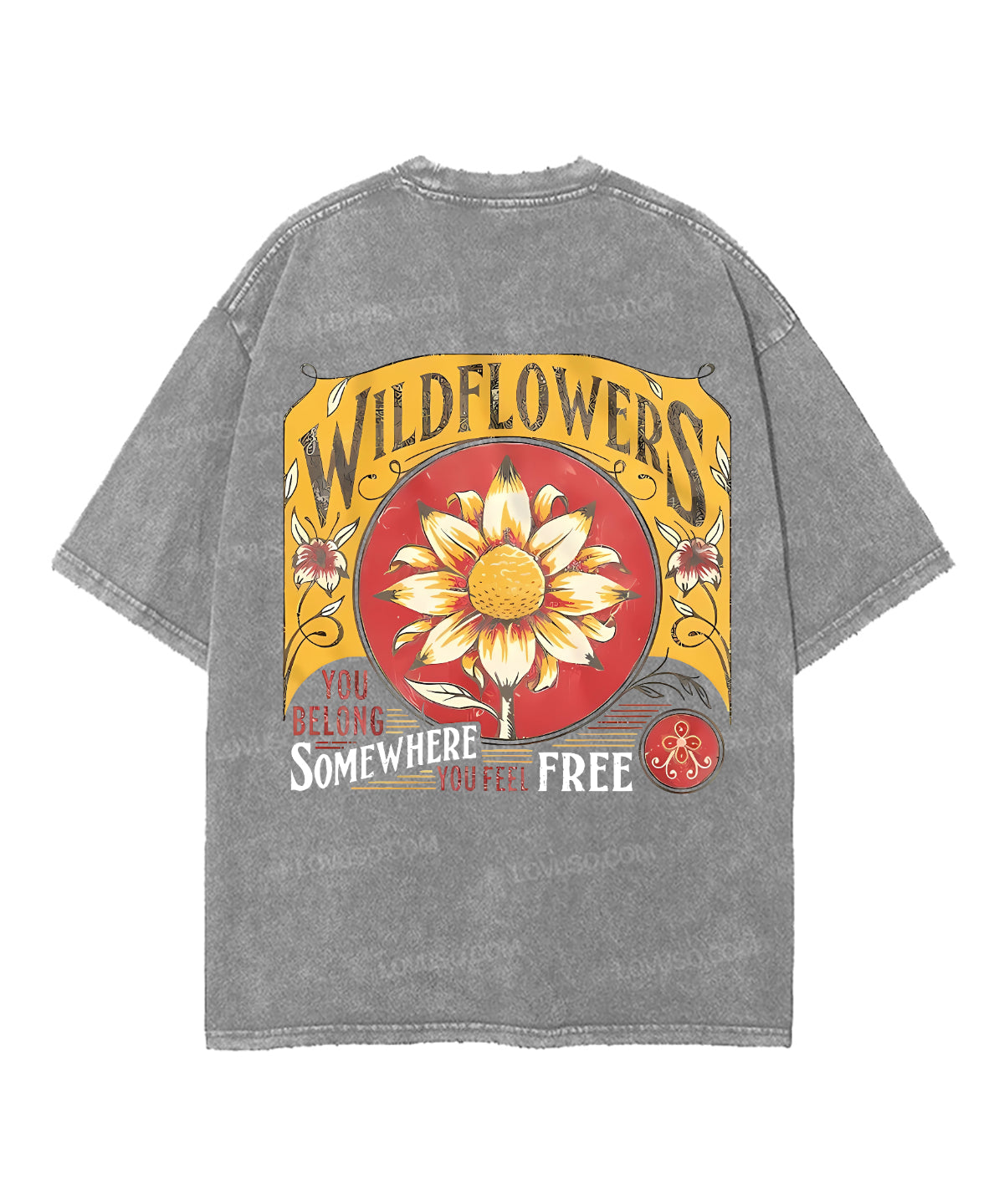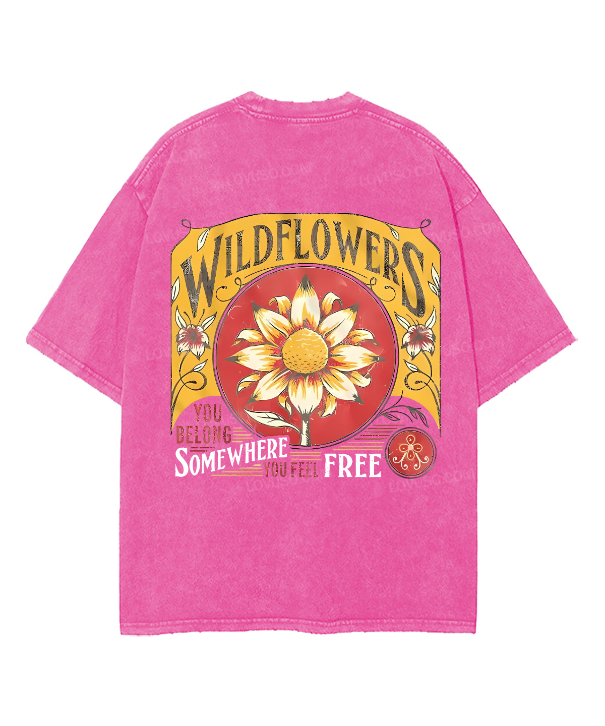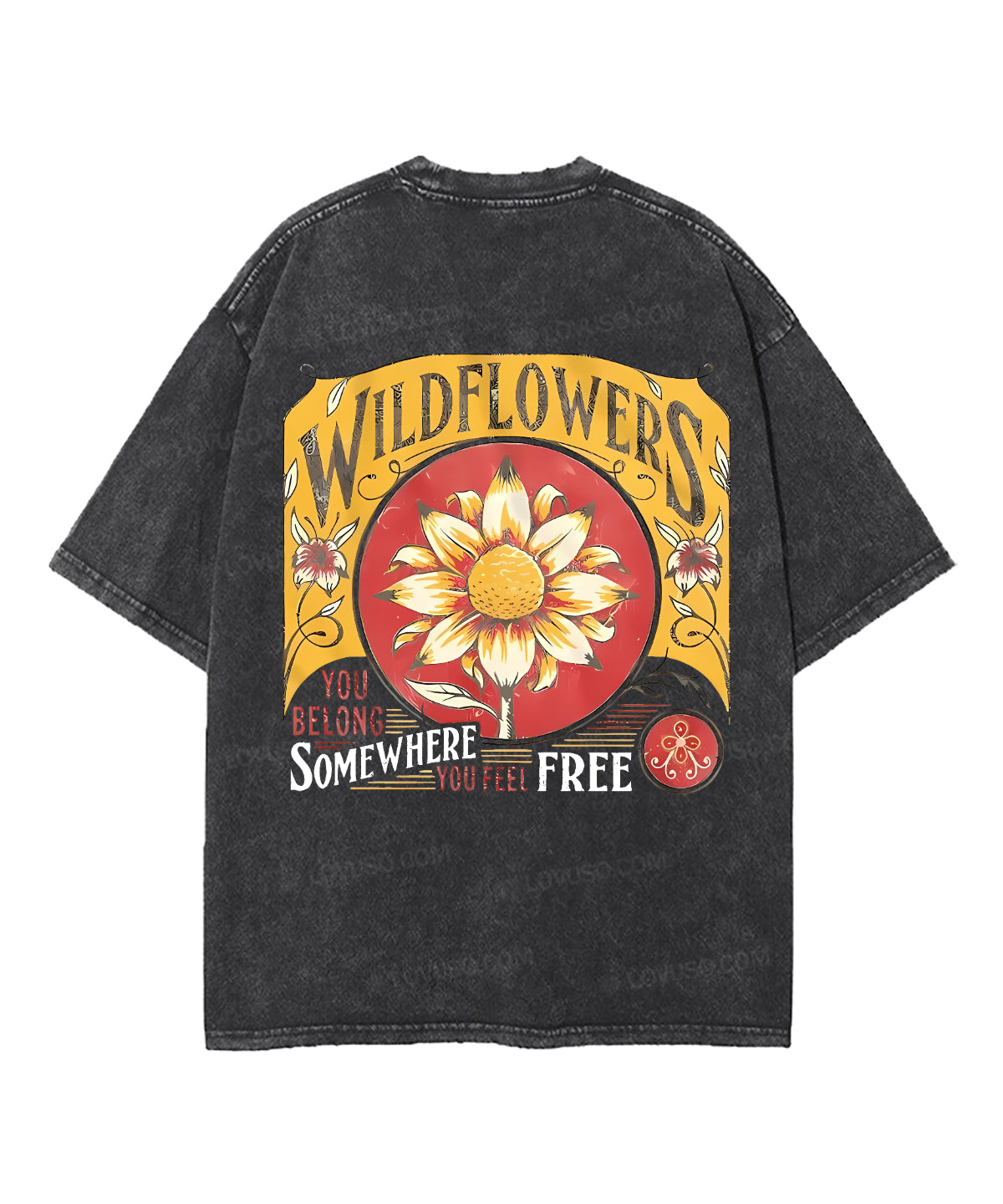 Retro Wildflowers You Belong Somewhere You Feel Free Double Sided Washed T-shirt