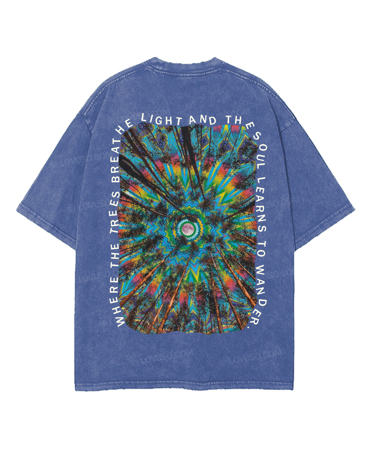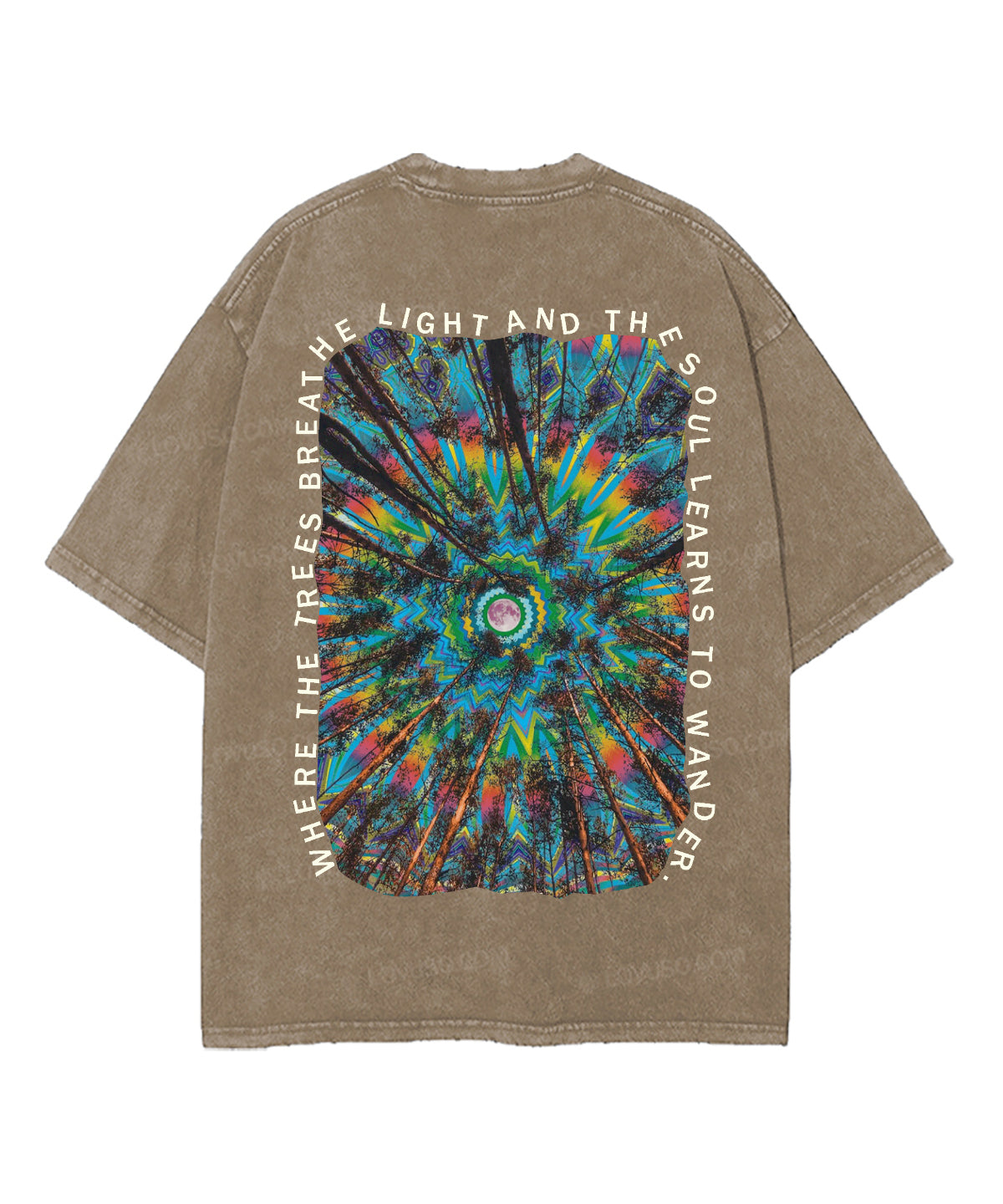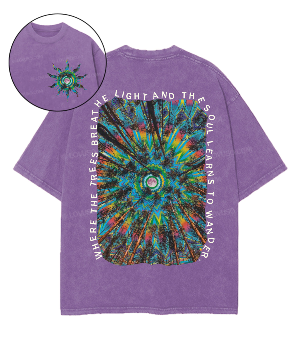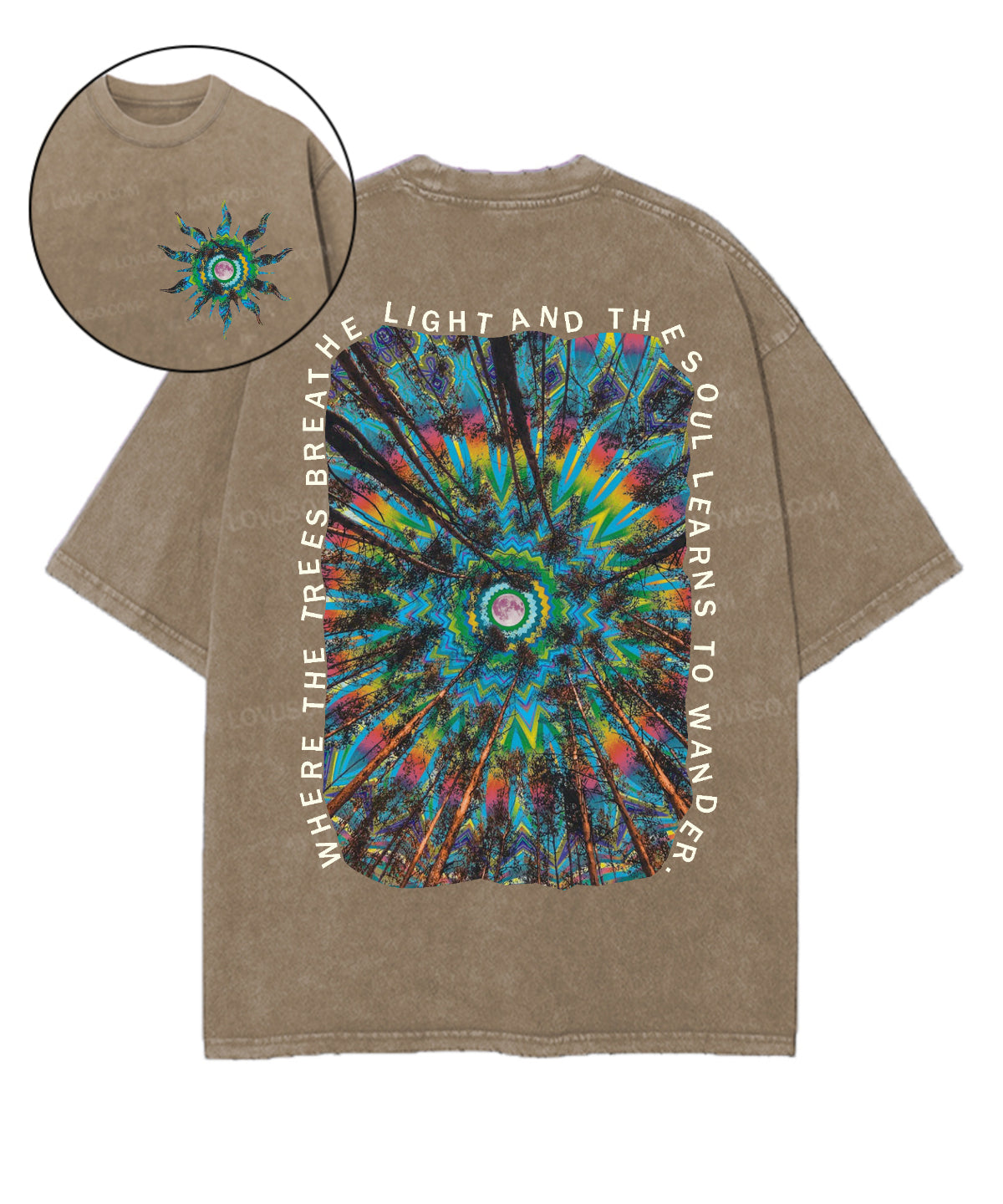 Spiritual Retro Nature The Soul Learns To Wander Double Sided Washed T-shirt