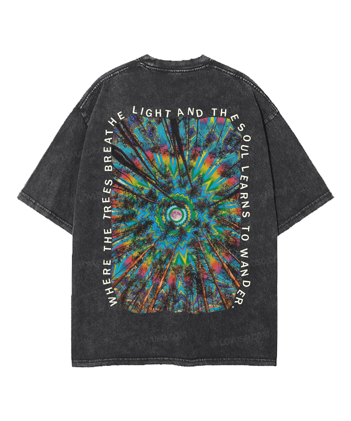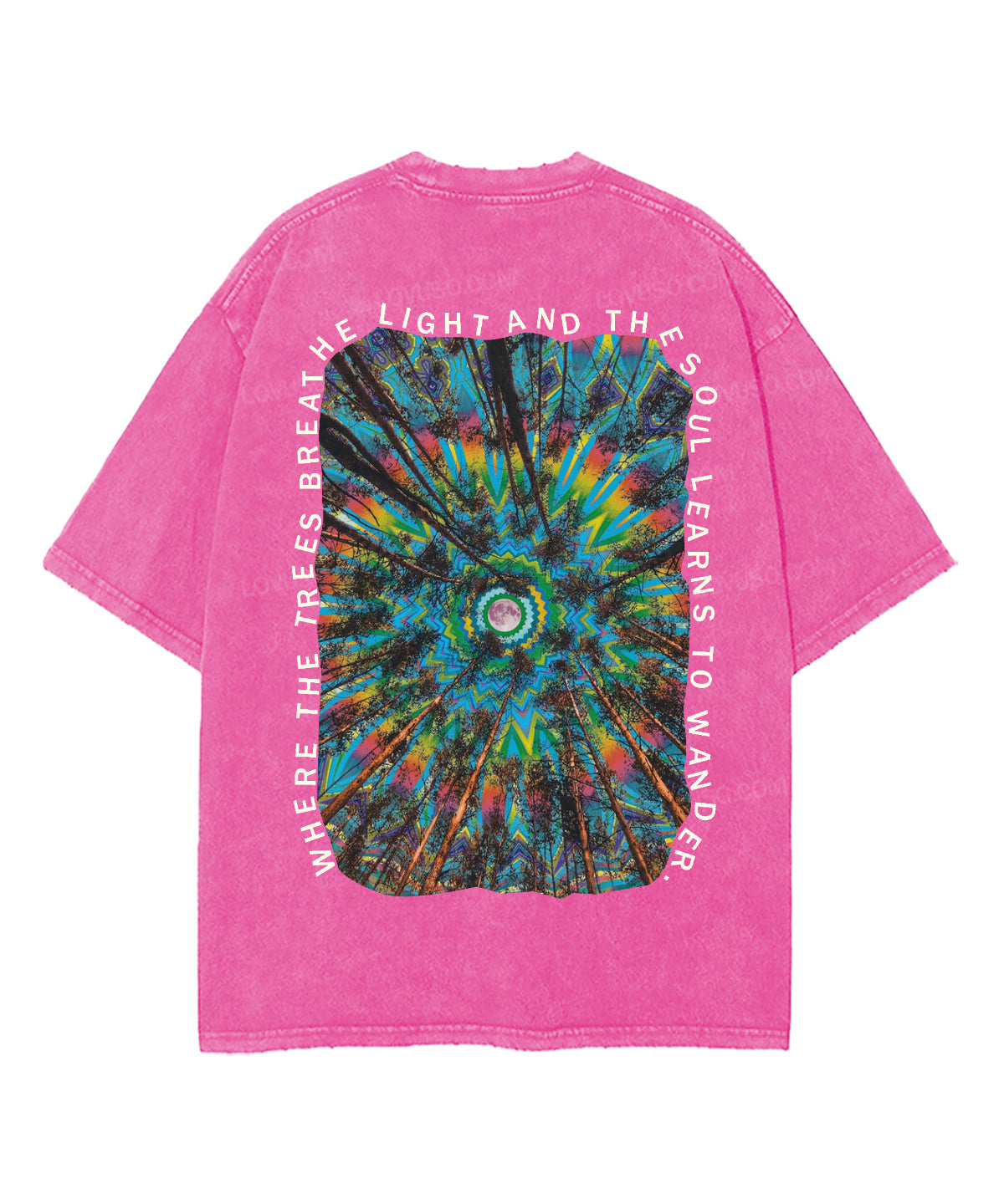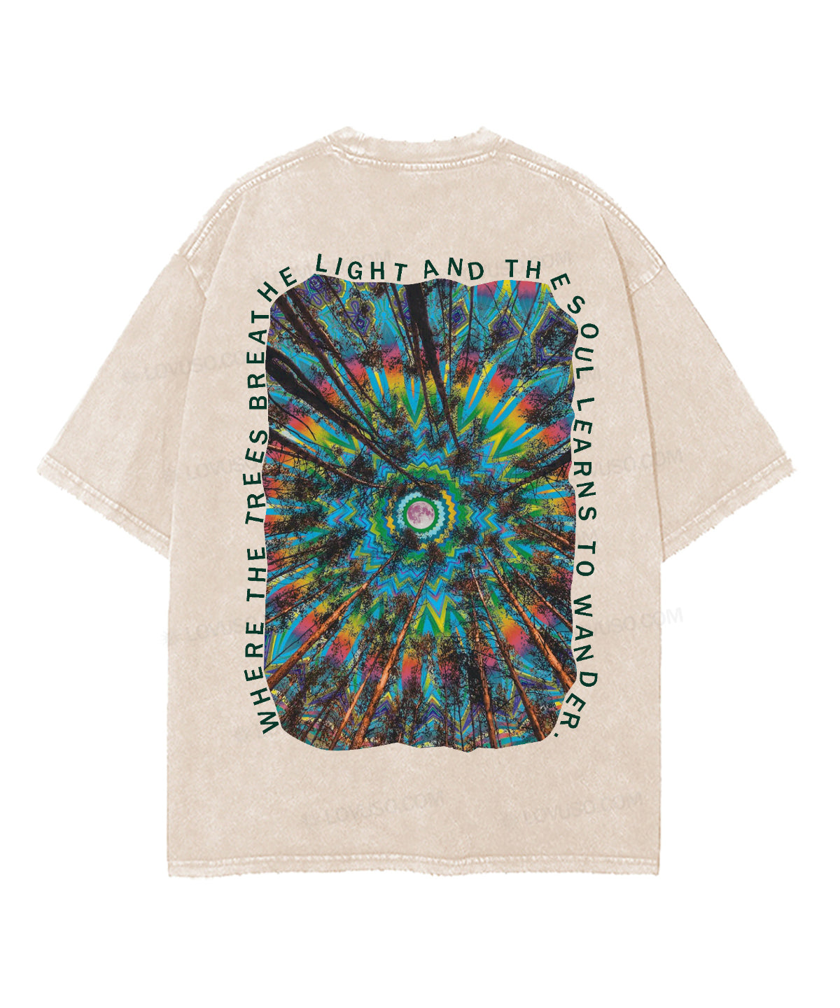 Spiritual Retro Nature The Soul Learns To Wander Double Sided Washed T-shirt