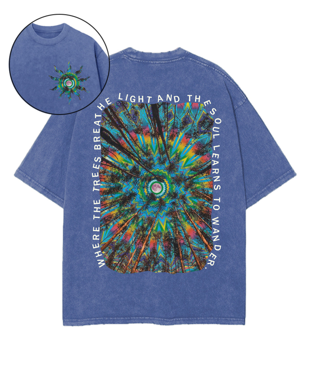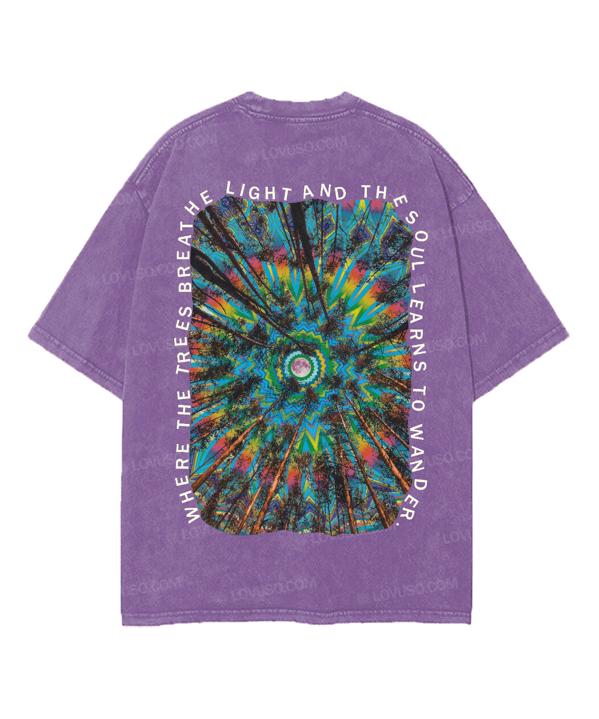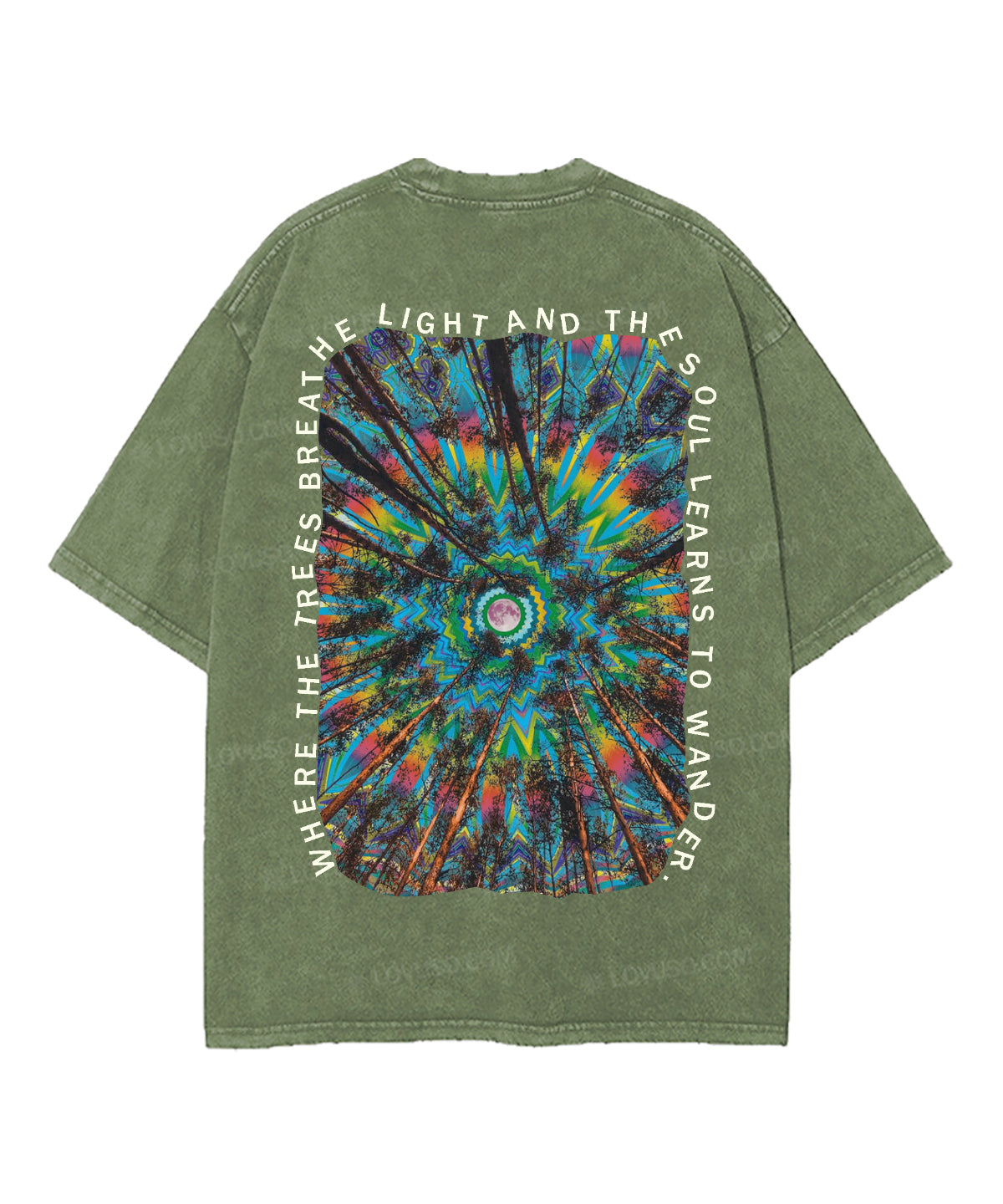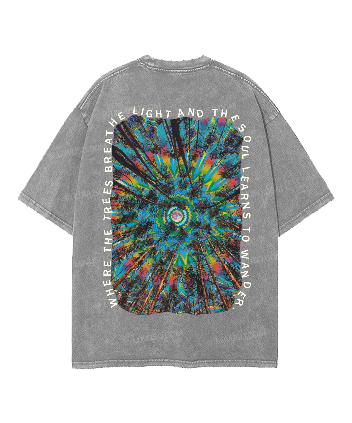 Spiritual Retro Nature The Soul Learns To Wander Double Sided Washed T-shirt