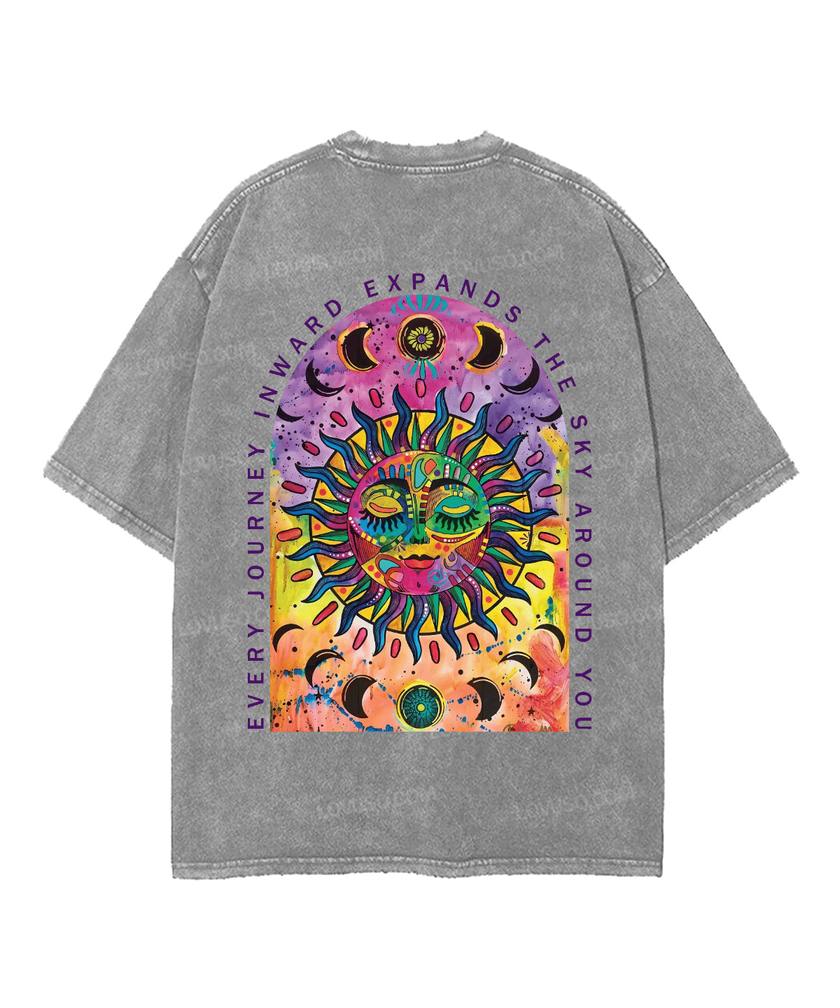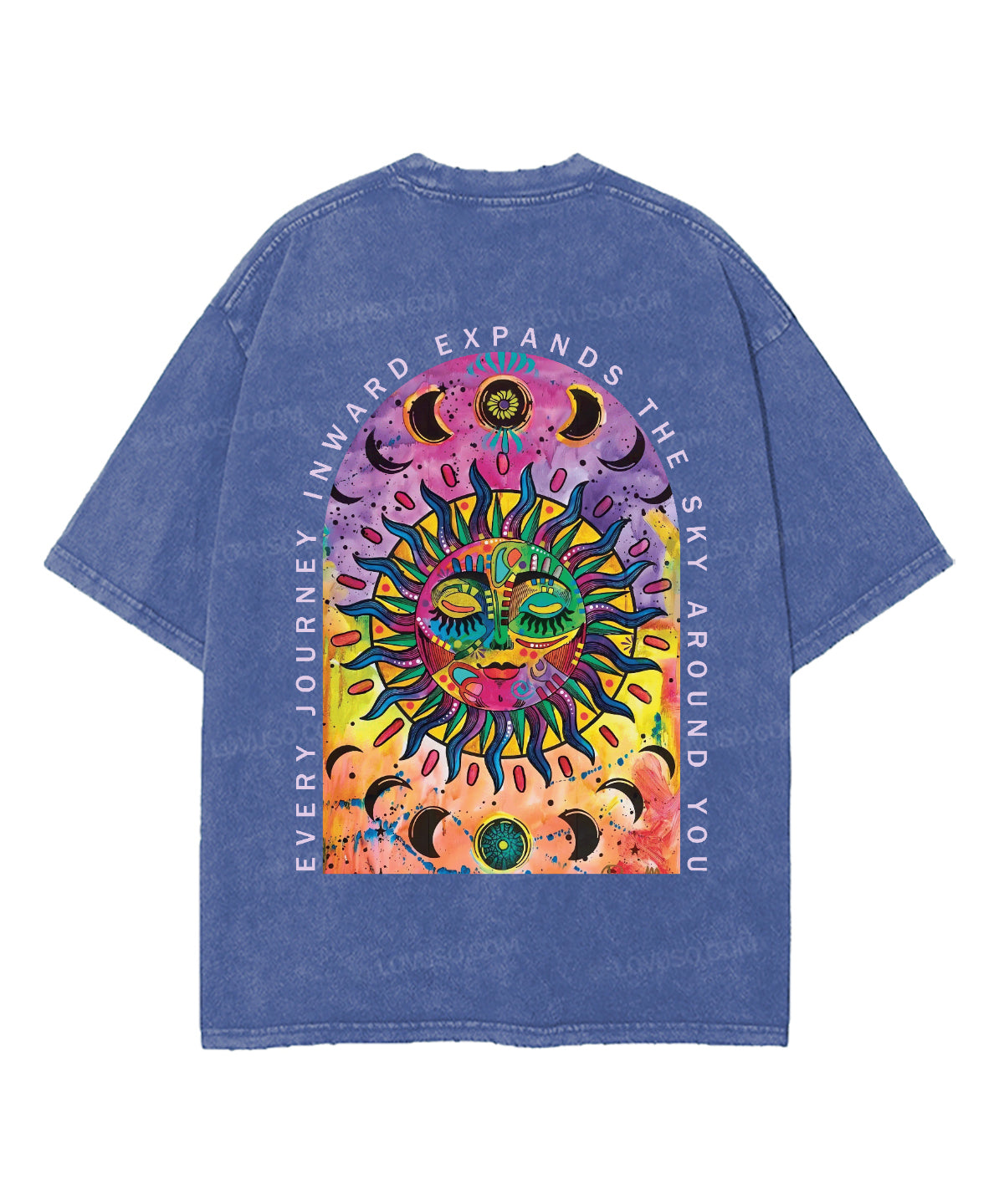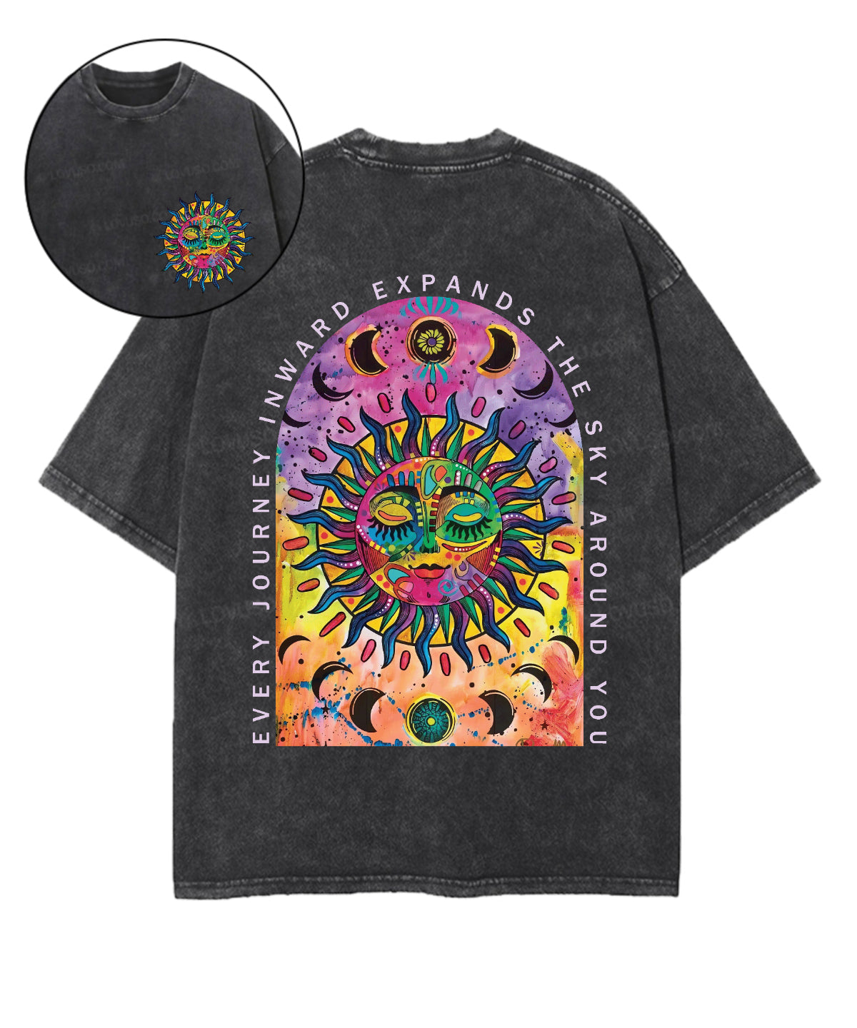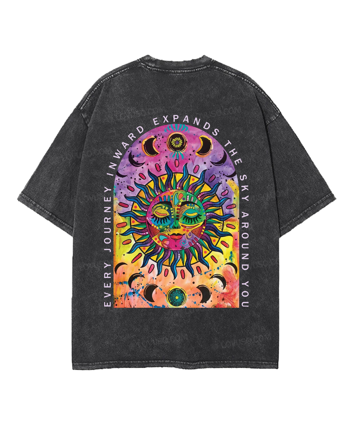 Spiritual Sun Moon Every Journey Inward Expands The Sky Around You Double Sided Washed T-shirt