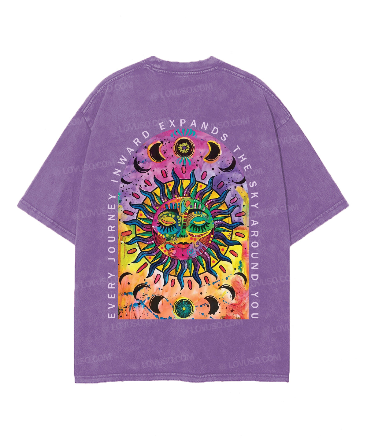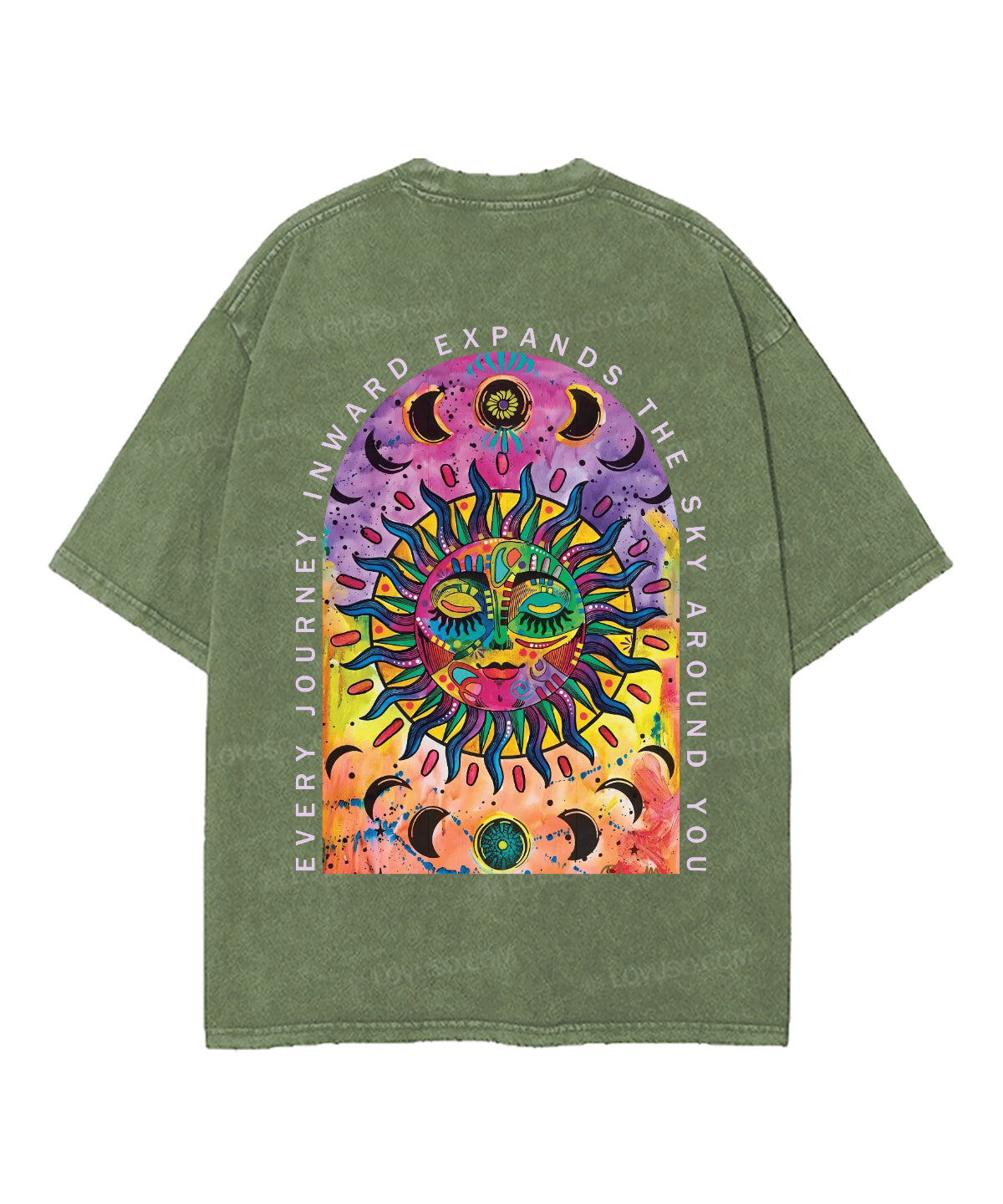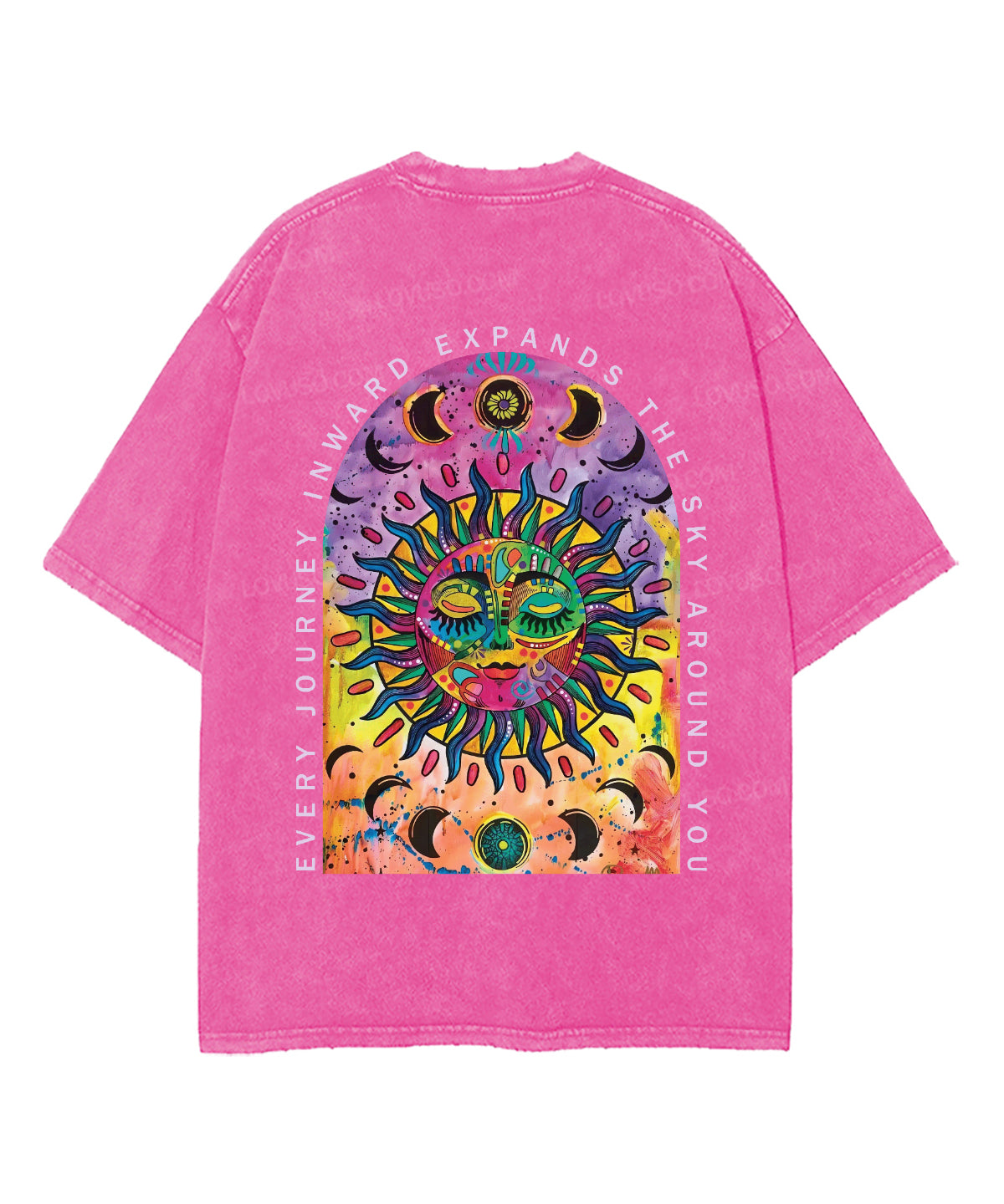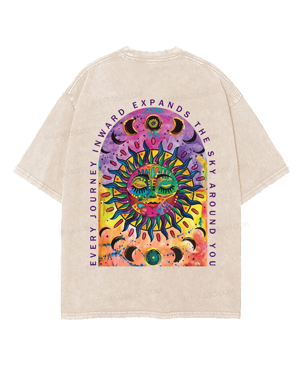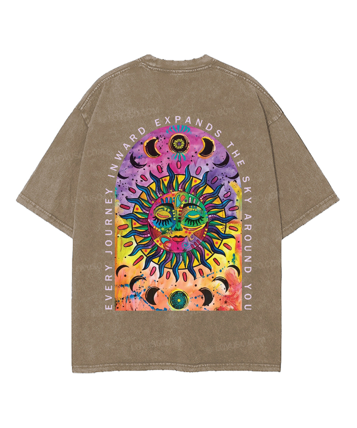 Spiritual Sun Moon Every Journey Inward Expands The Sky Around You Double Sided Washed T-shirt