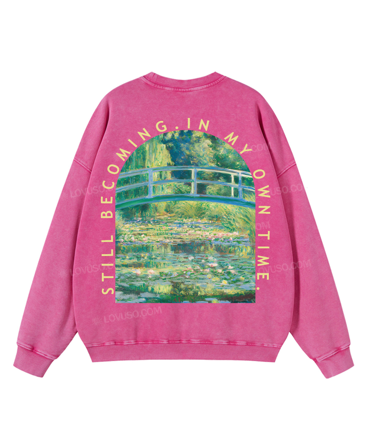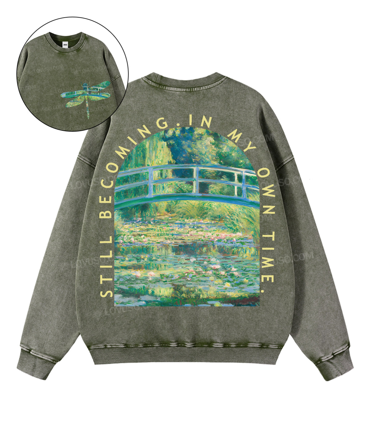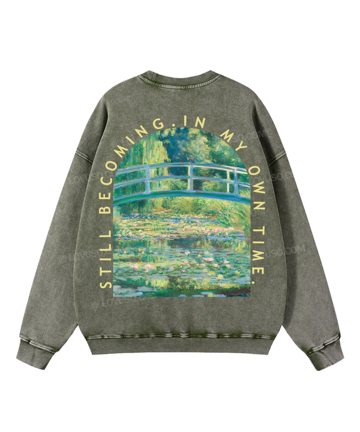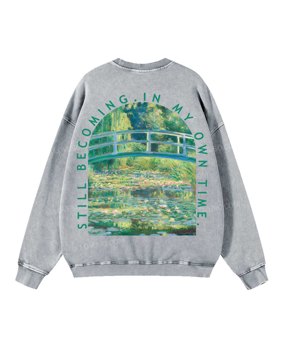 Still Becoming In My Own Time Double Sided Washed Sweatshirt