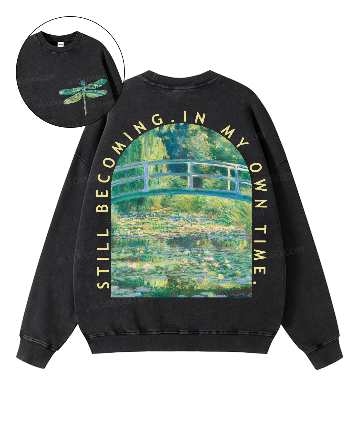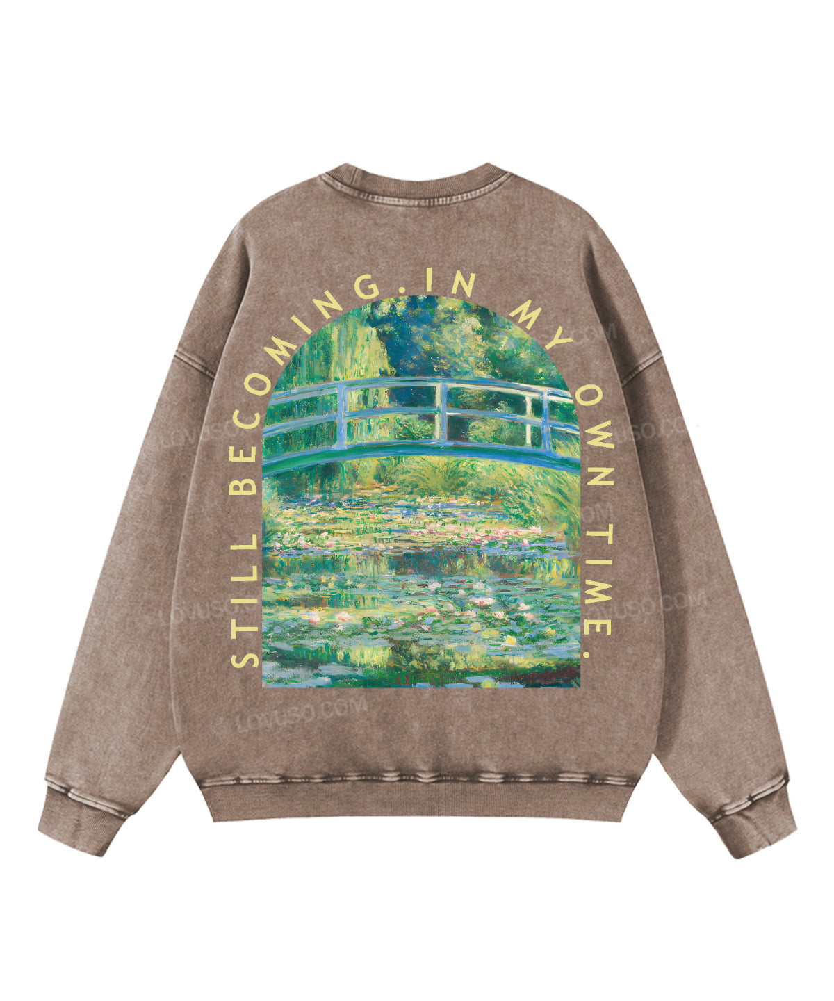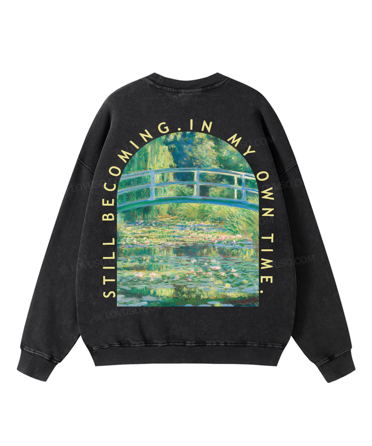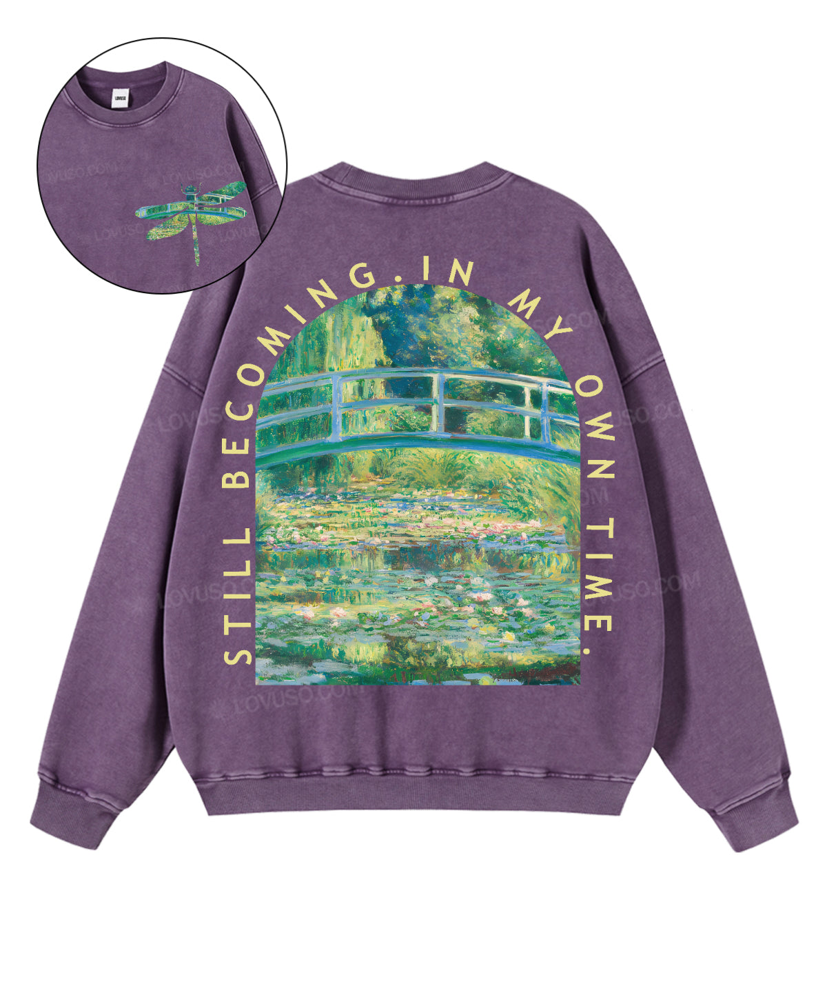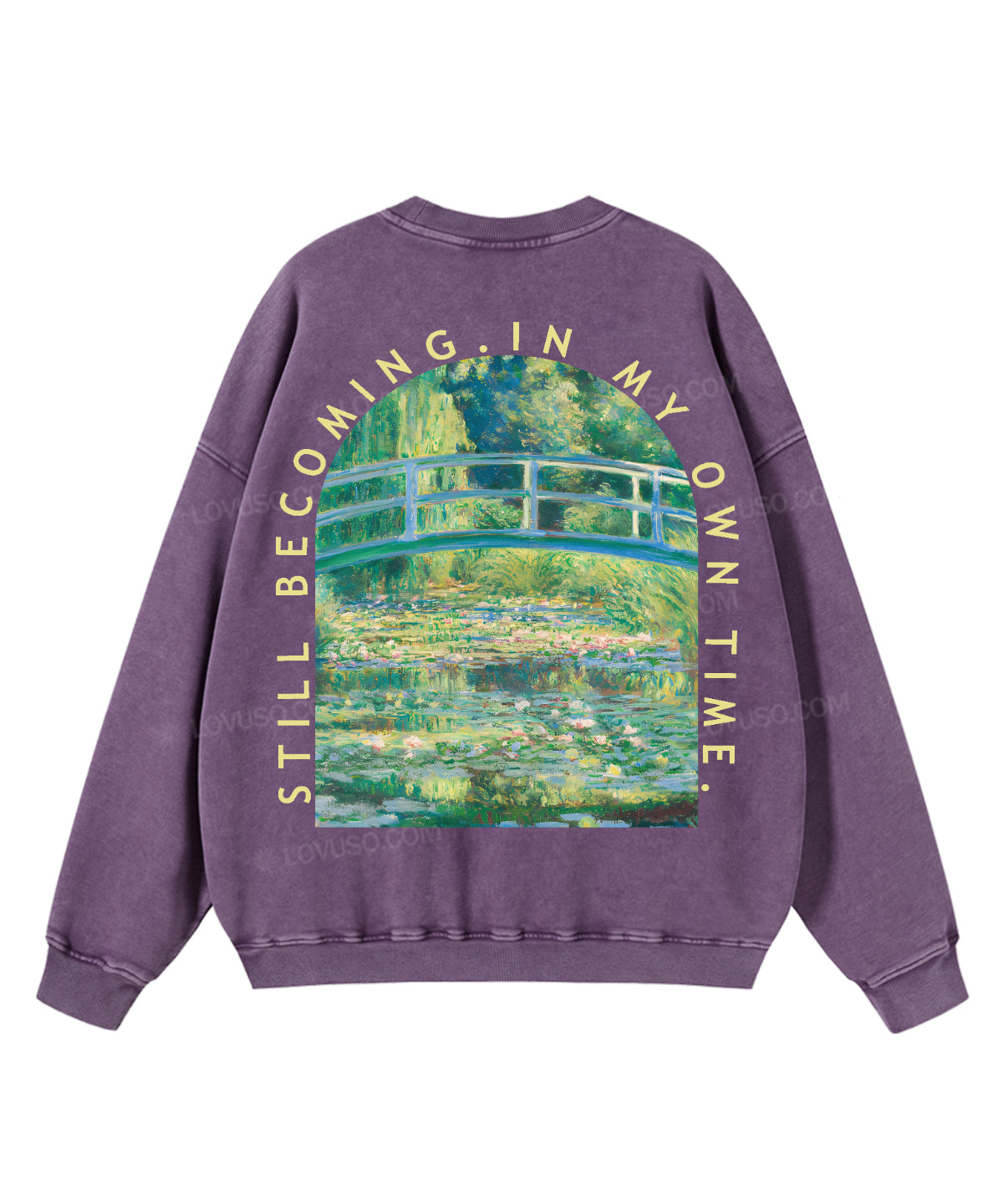 Still Becoming In My Own Time Double Sided Washed Sweatshirt