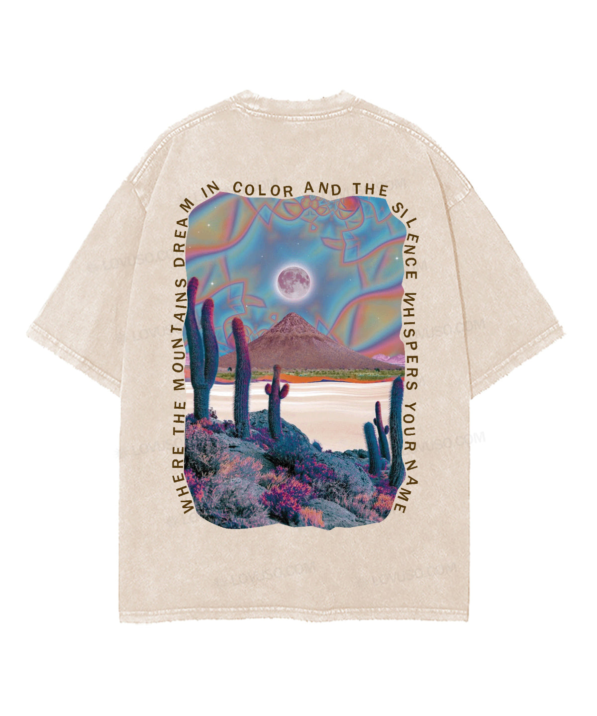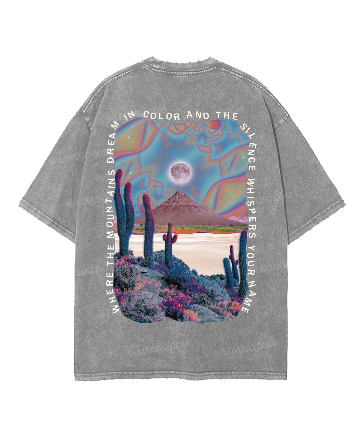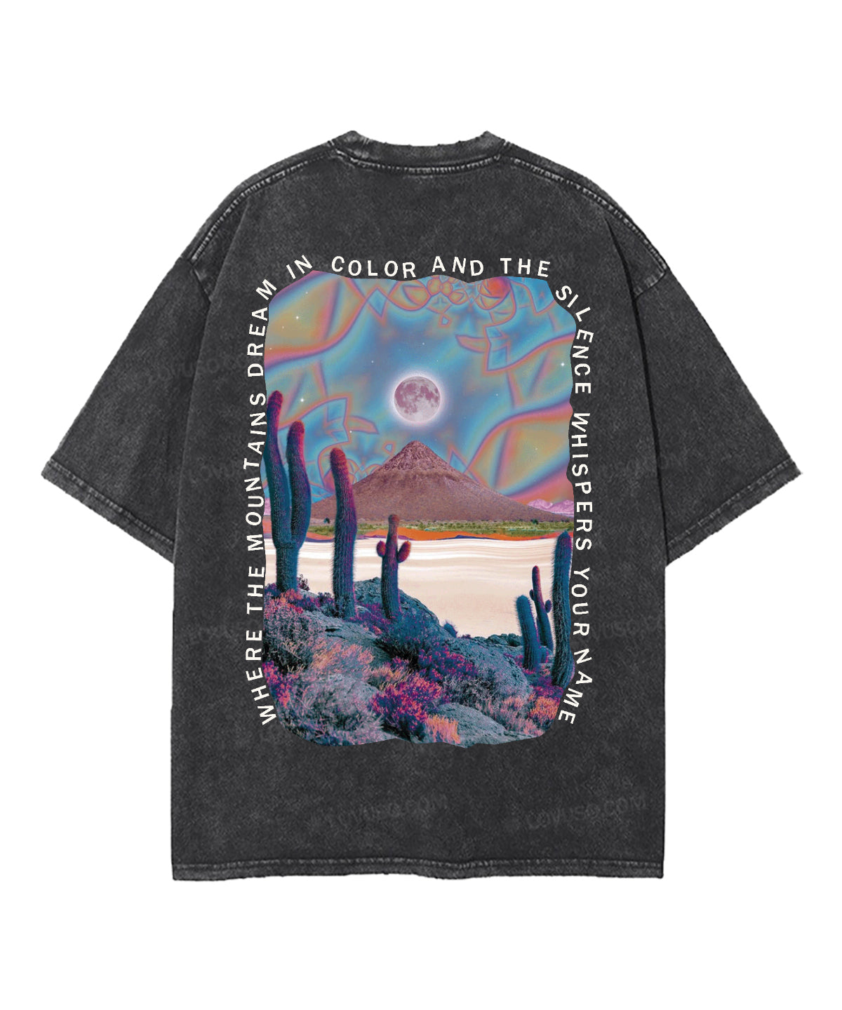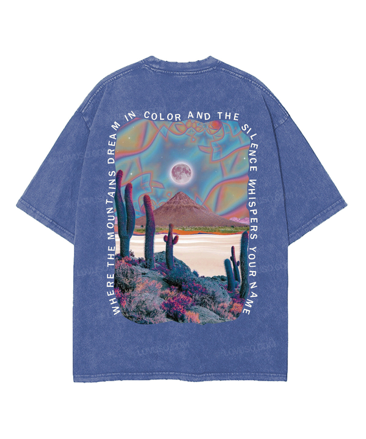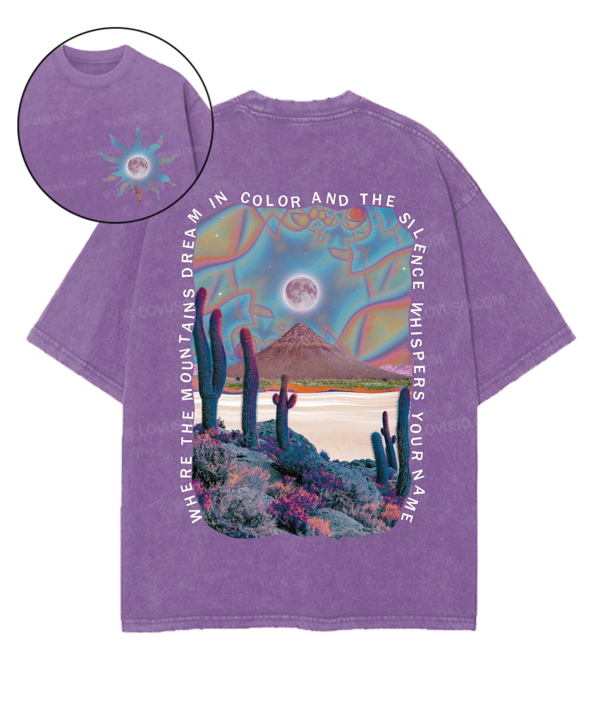 Where The Mountains Dream In Double Sided Washed T-shirt