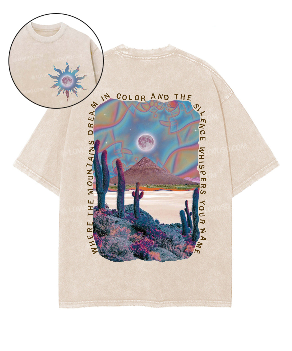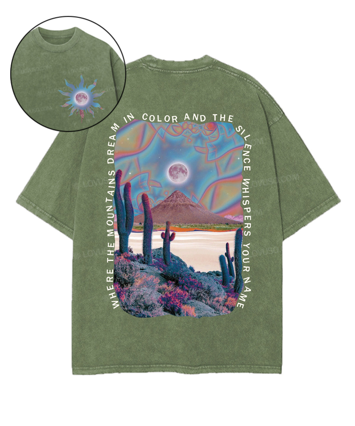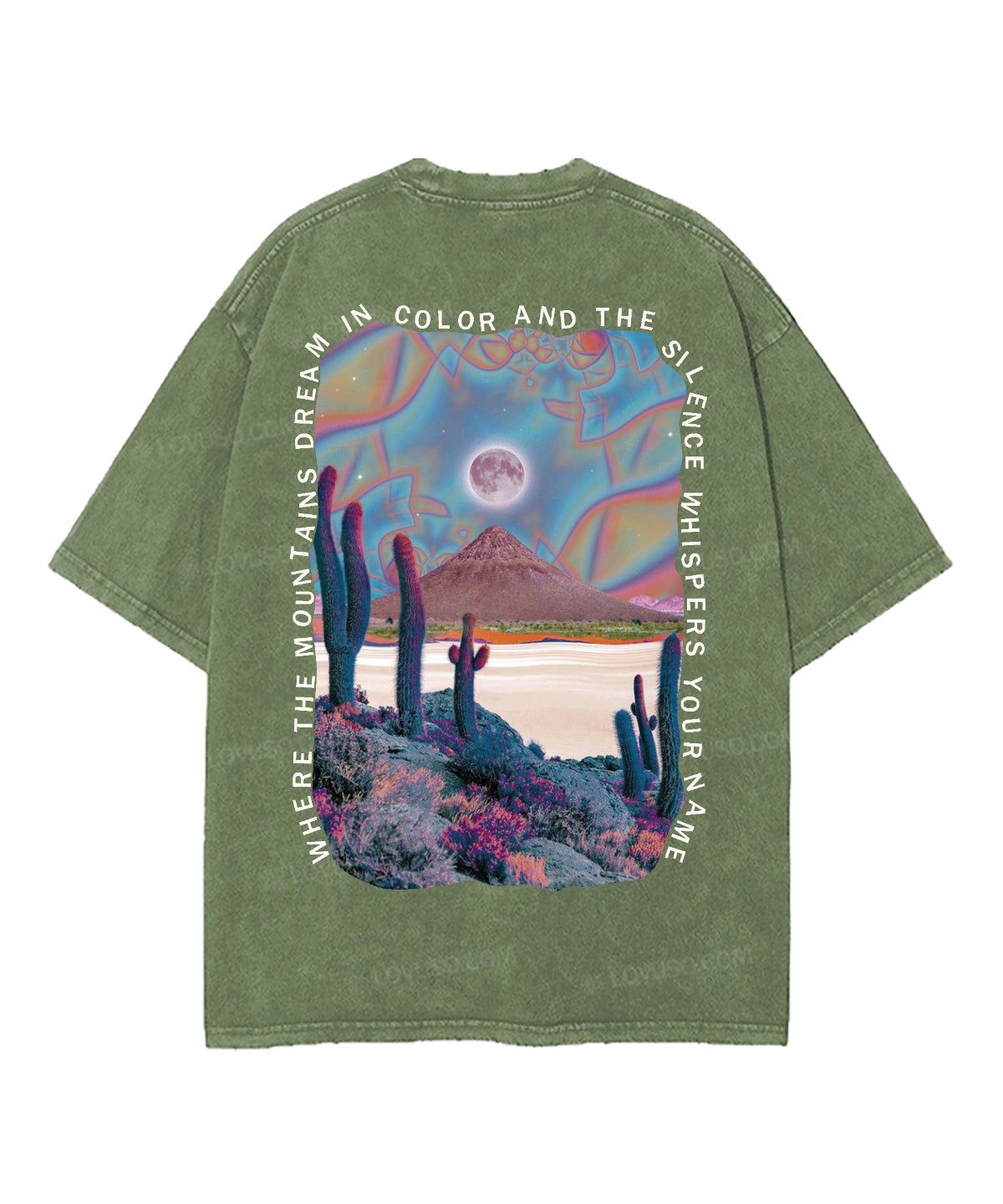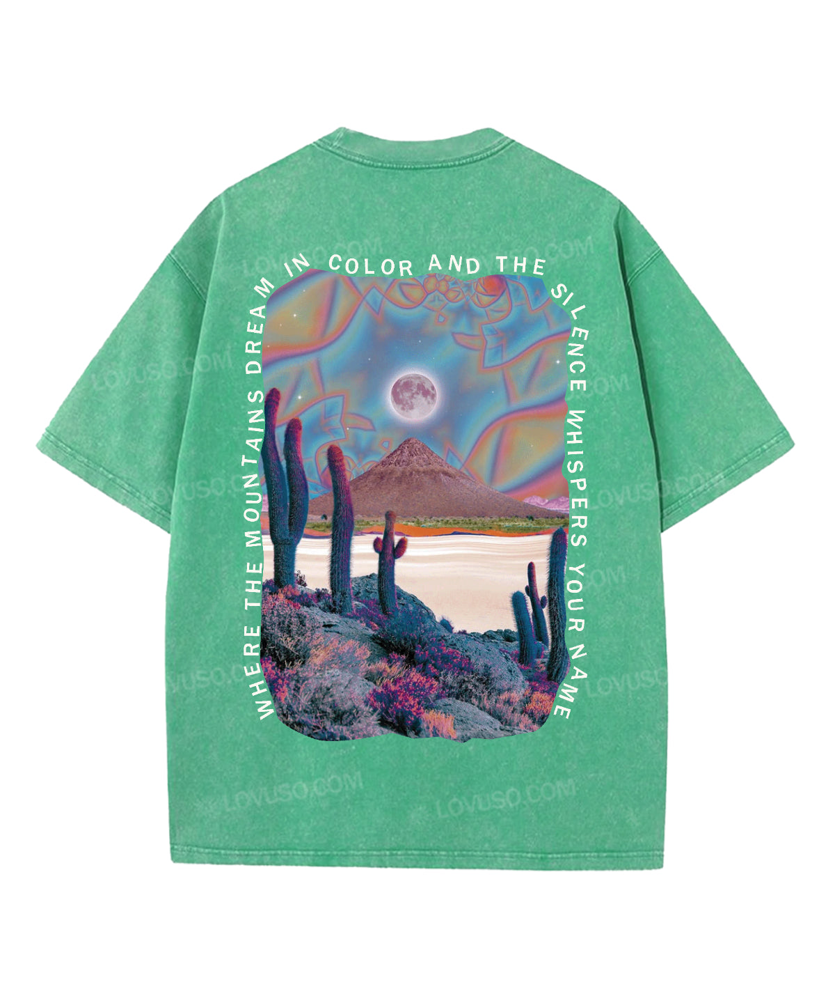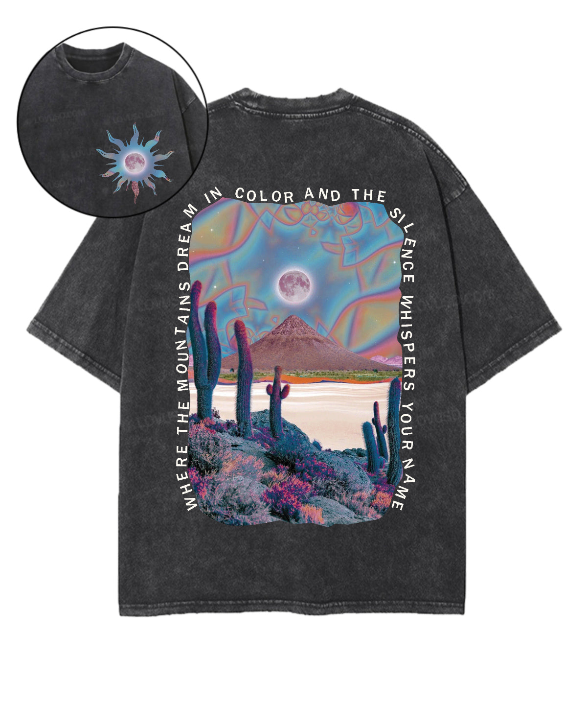 Where The Mountains Dream In Double Sided Washed T-shirt