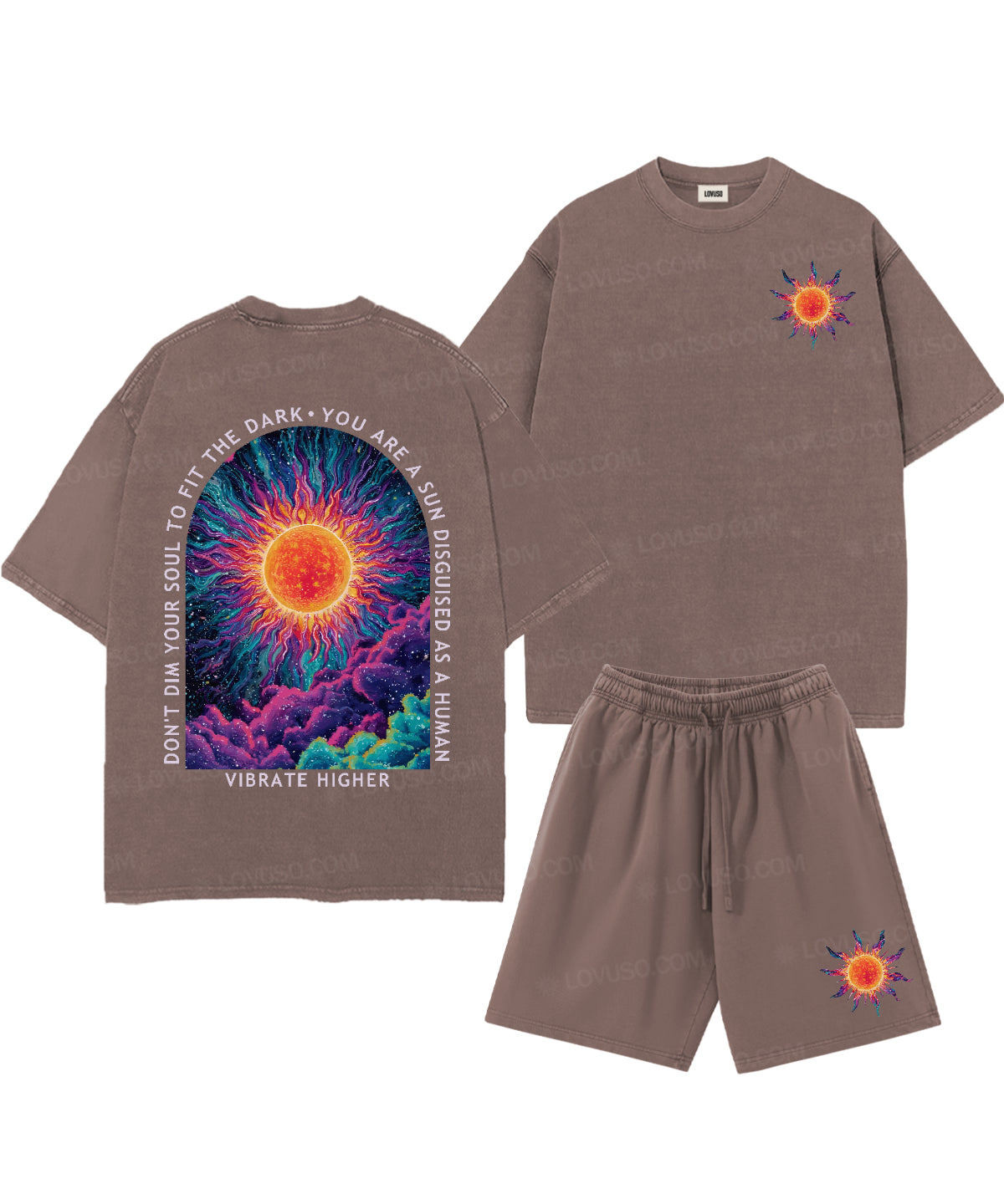 Don't Dim Your Soul To Fit The Dark You Are A Sun Disguised As A Human Double Sided Unisex Washed T-Shirt & Shorts