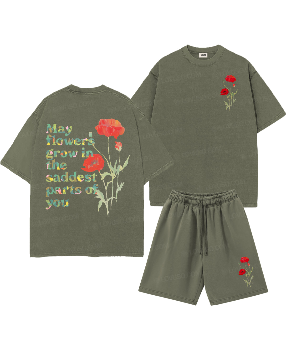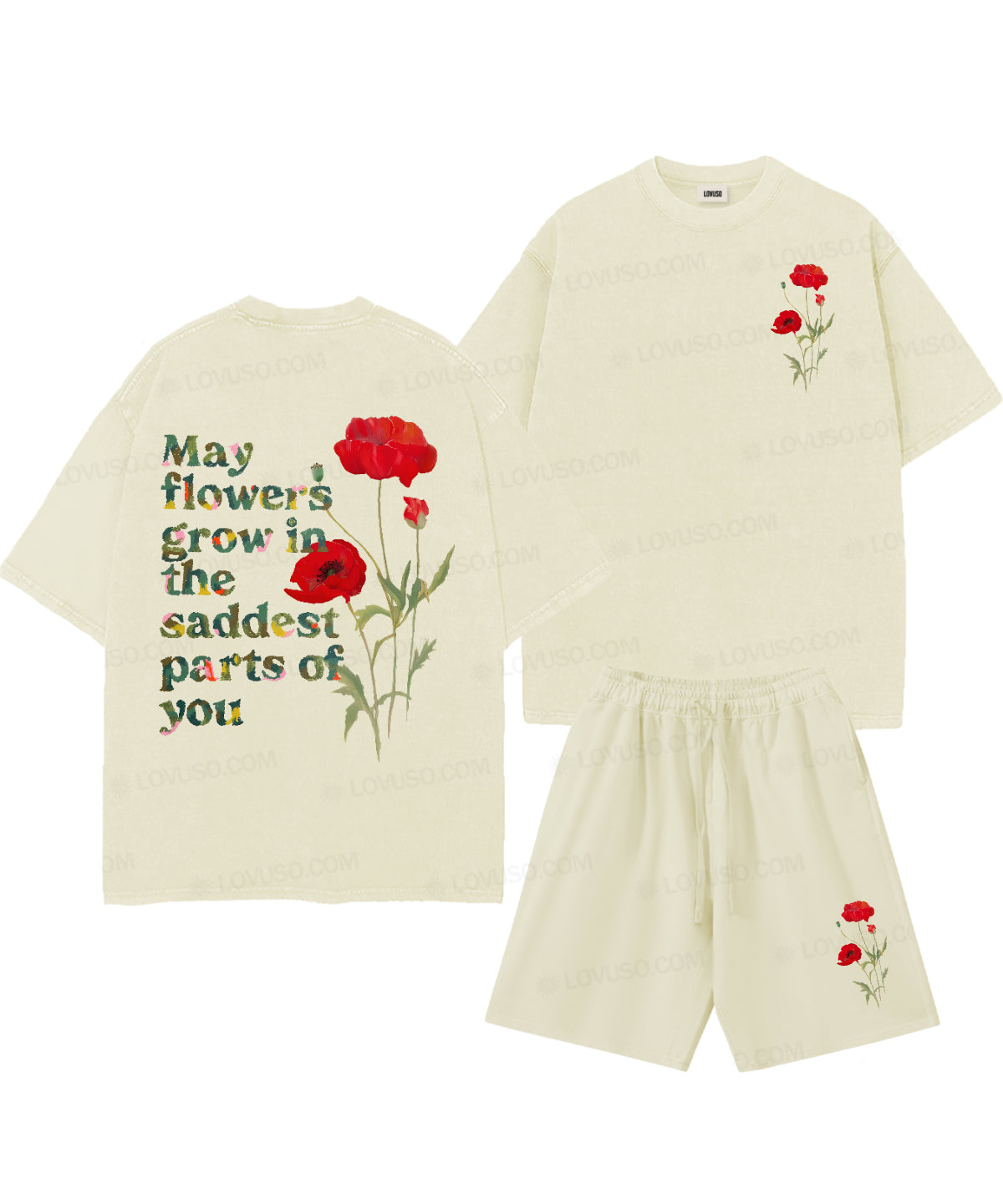 May Flowers Grow In The Saddest Parts Of You Double Sided Unisex Washed T-Shirt & Shorts