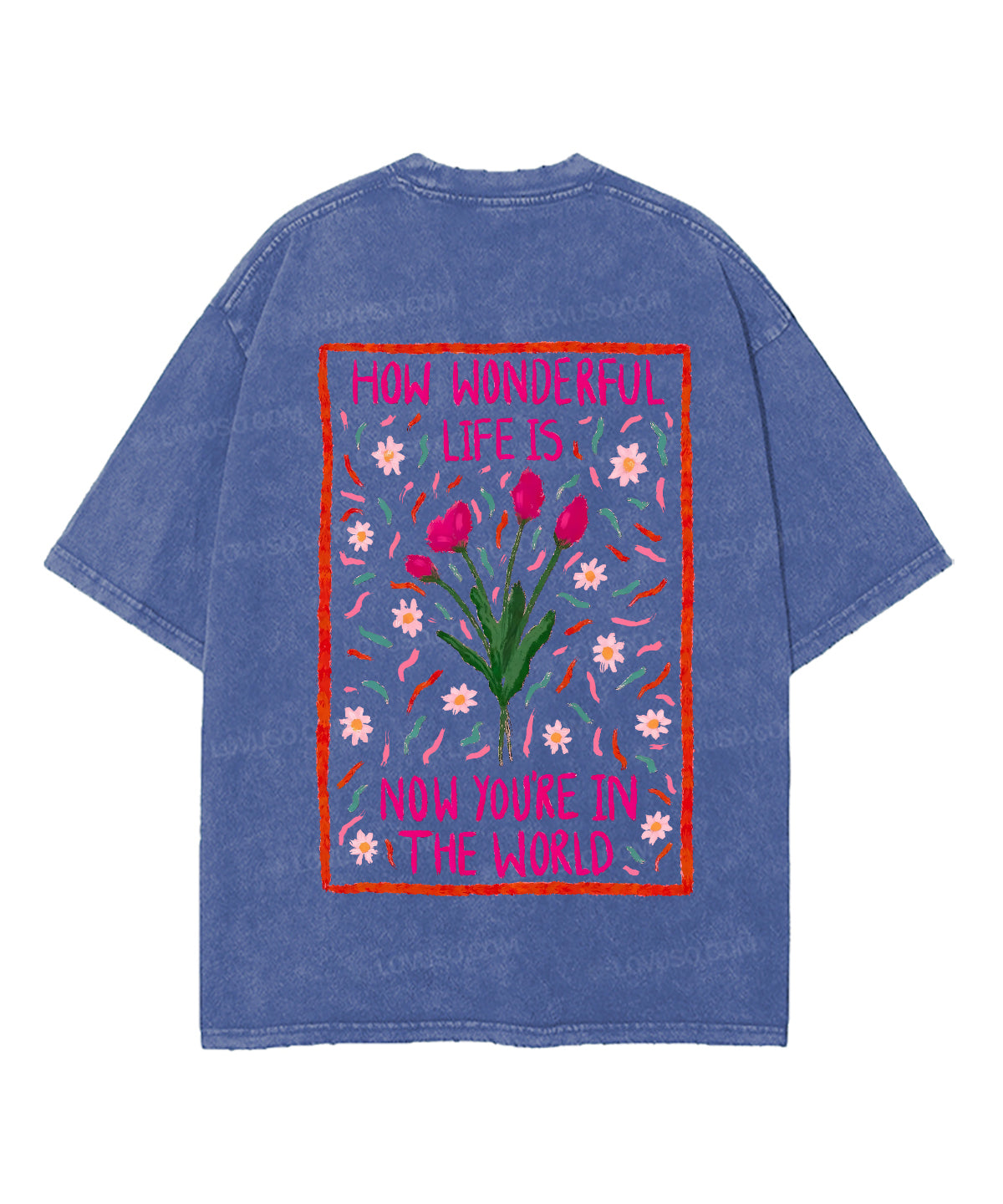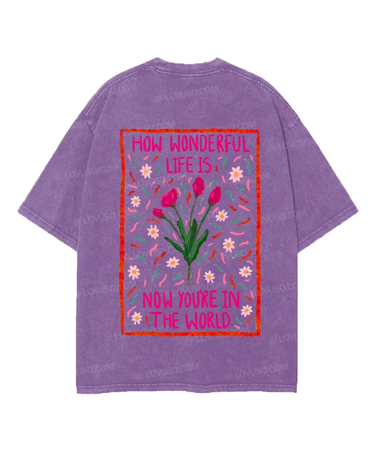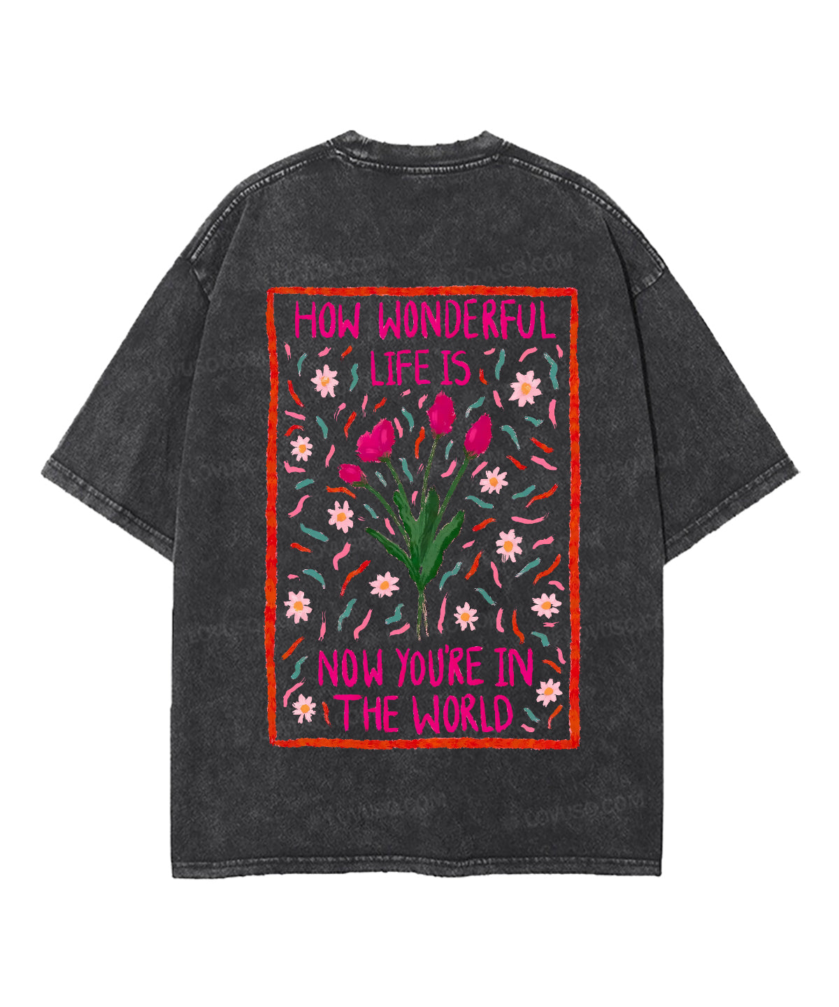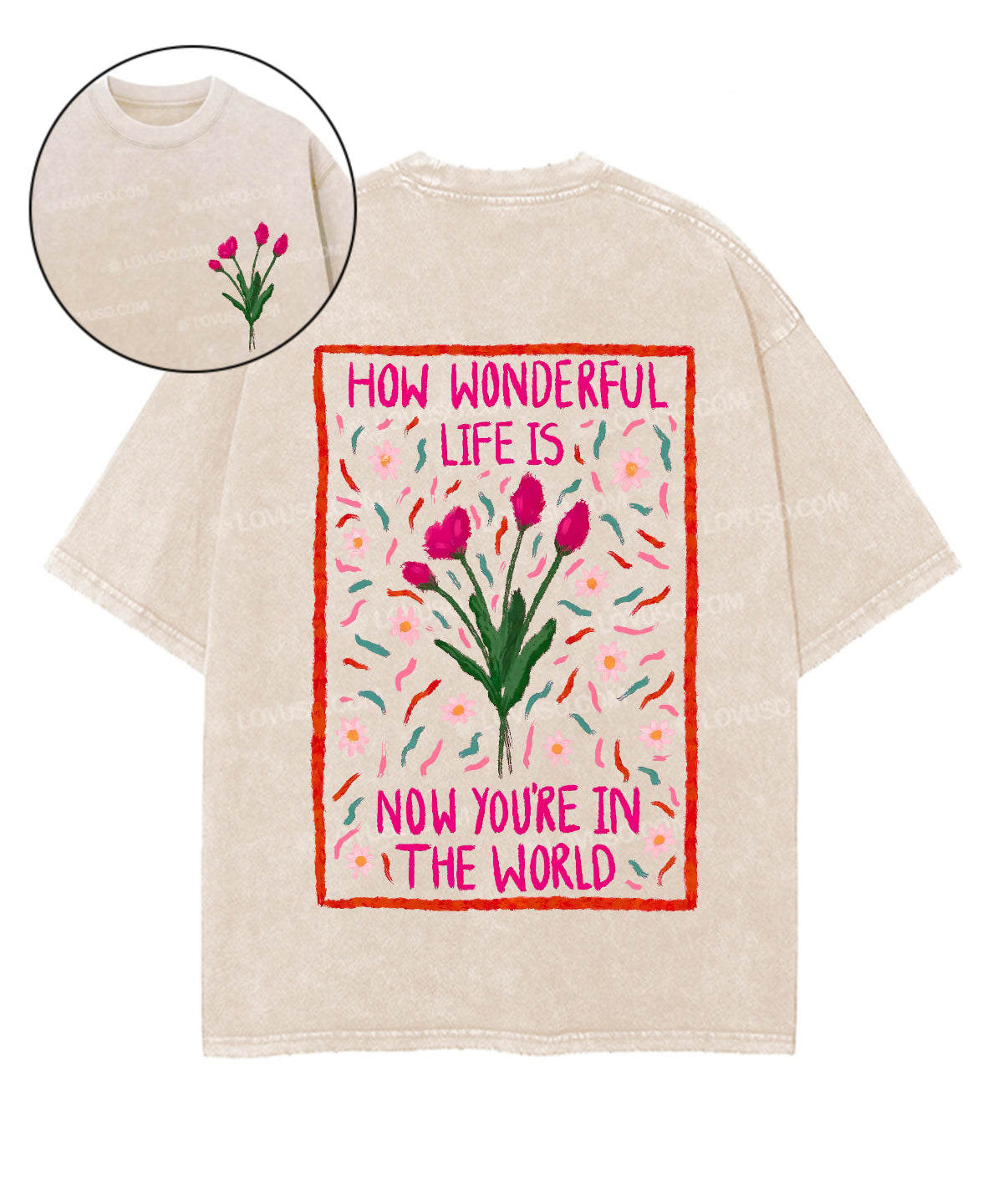 Flower How Wonderful Life Is Double Sided Washed T-shirt