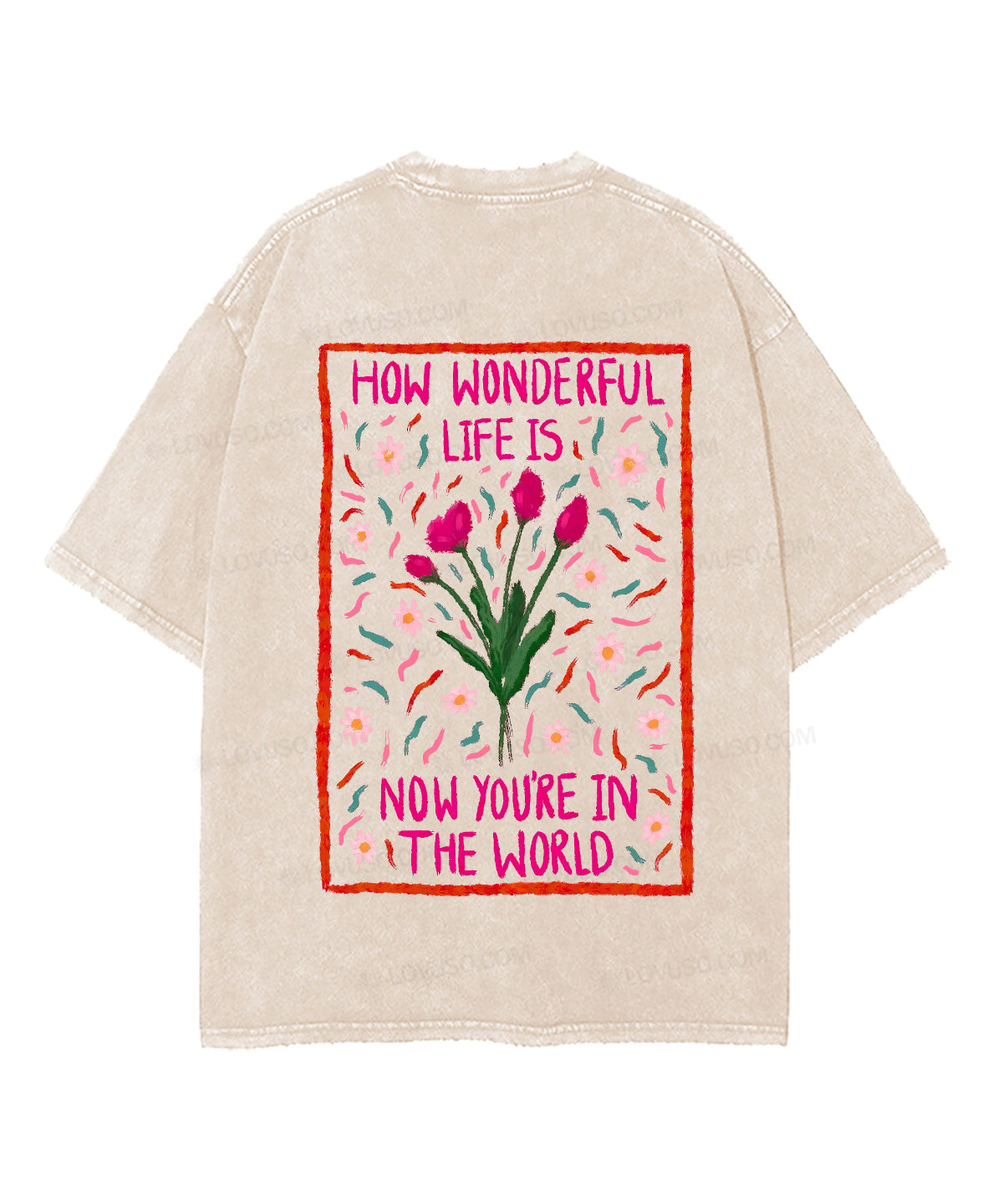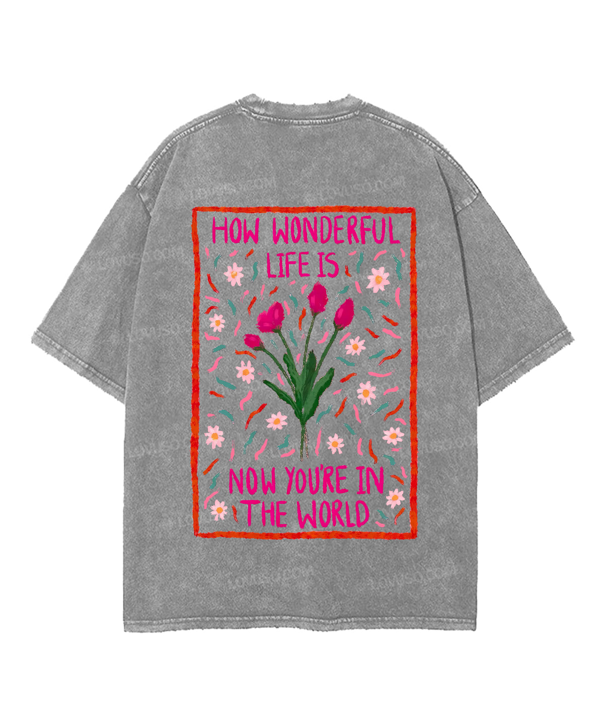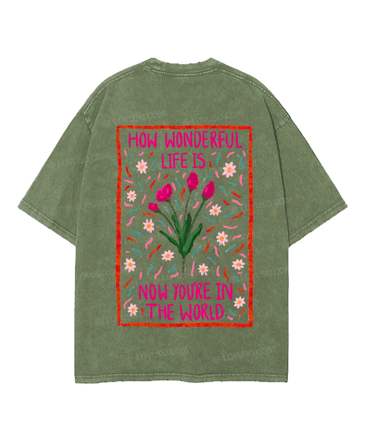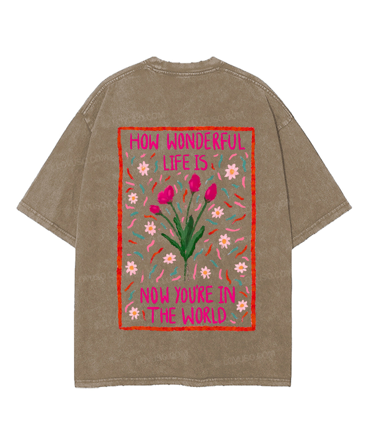 Flower How Wonderful Life Is Double Sided Washed T-shirt