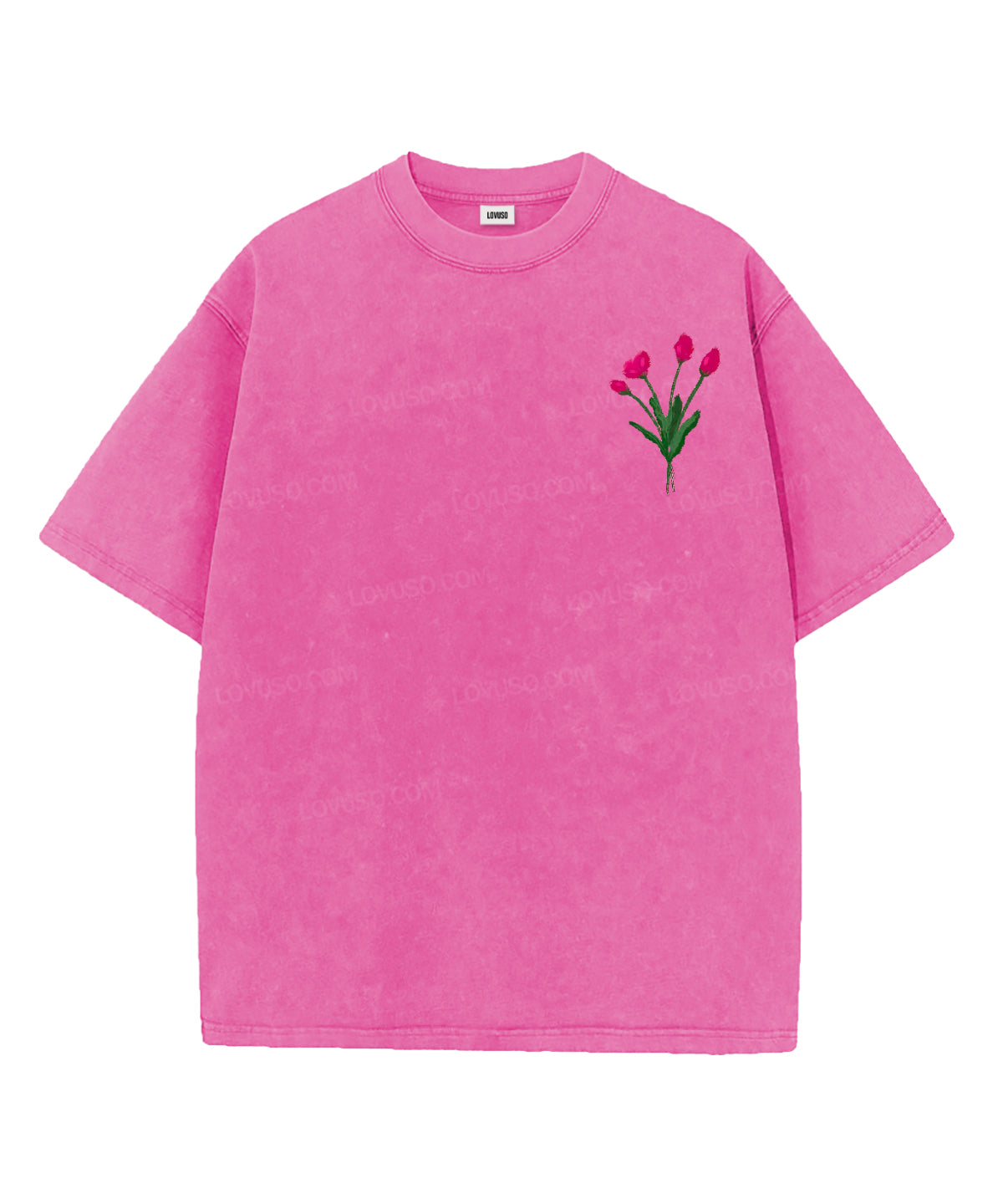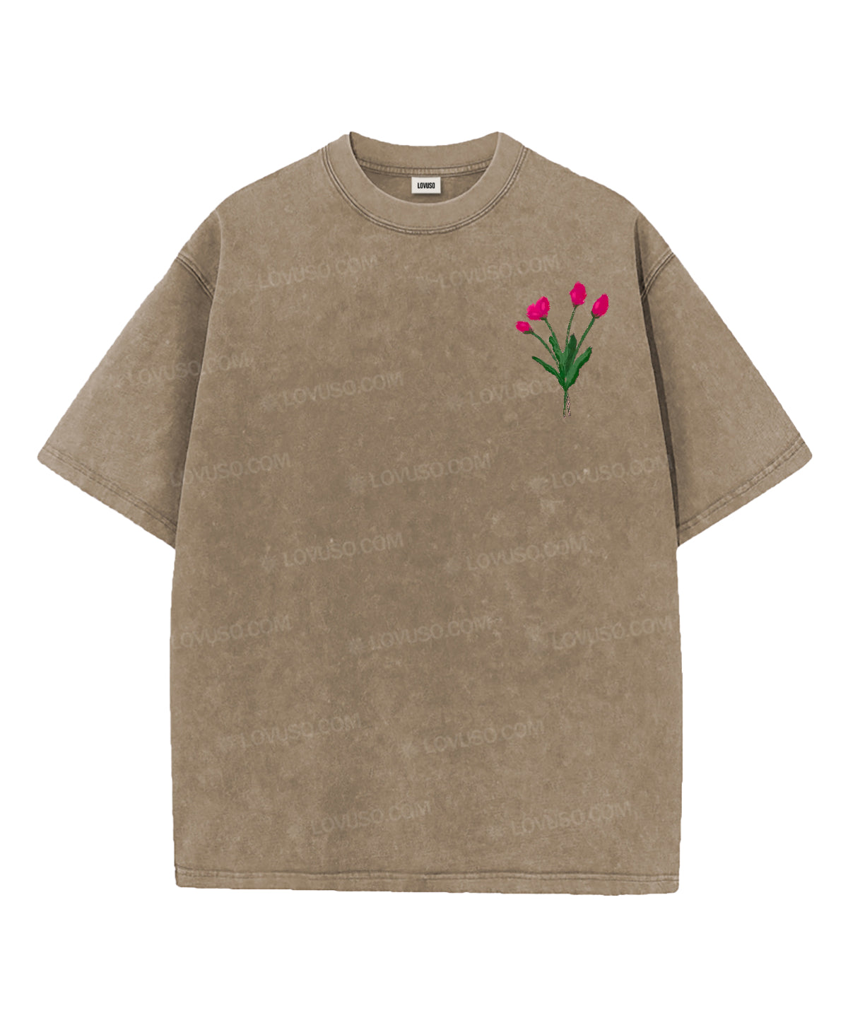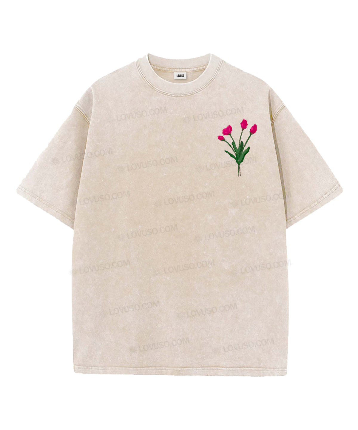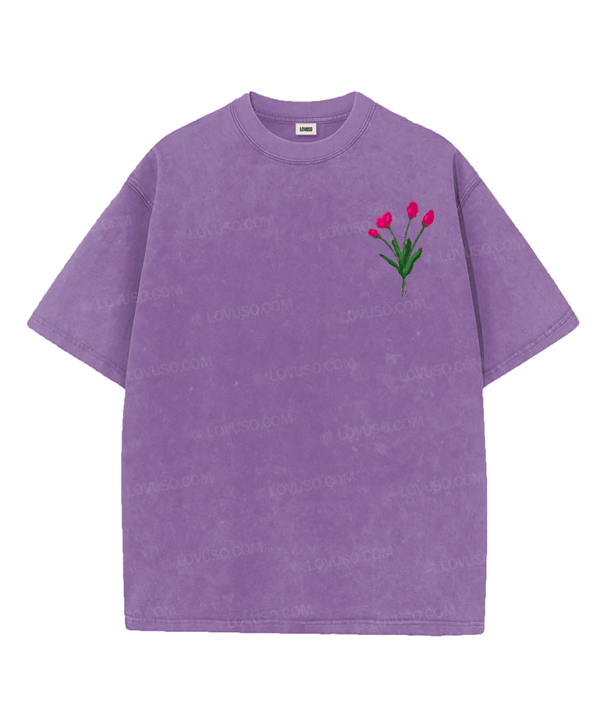 Flower How Wonderful Life Is Double Sided Washed T-shirt