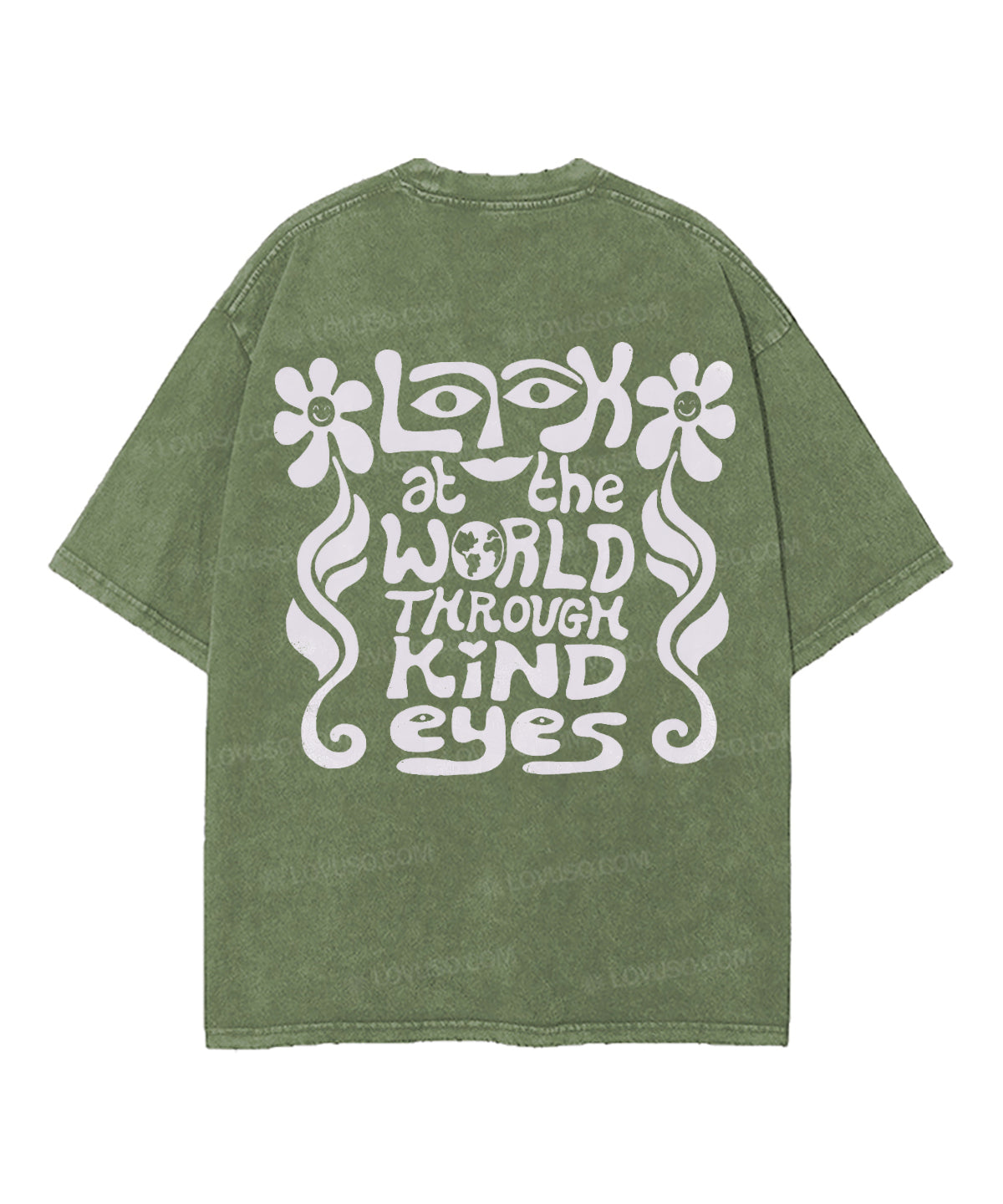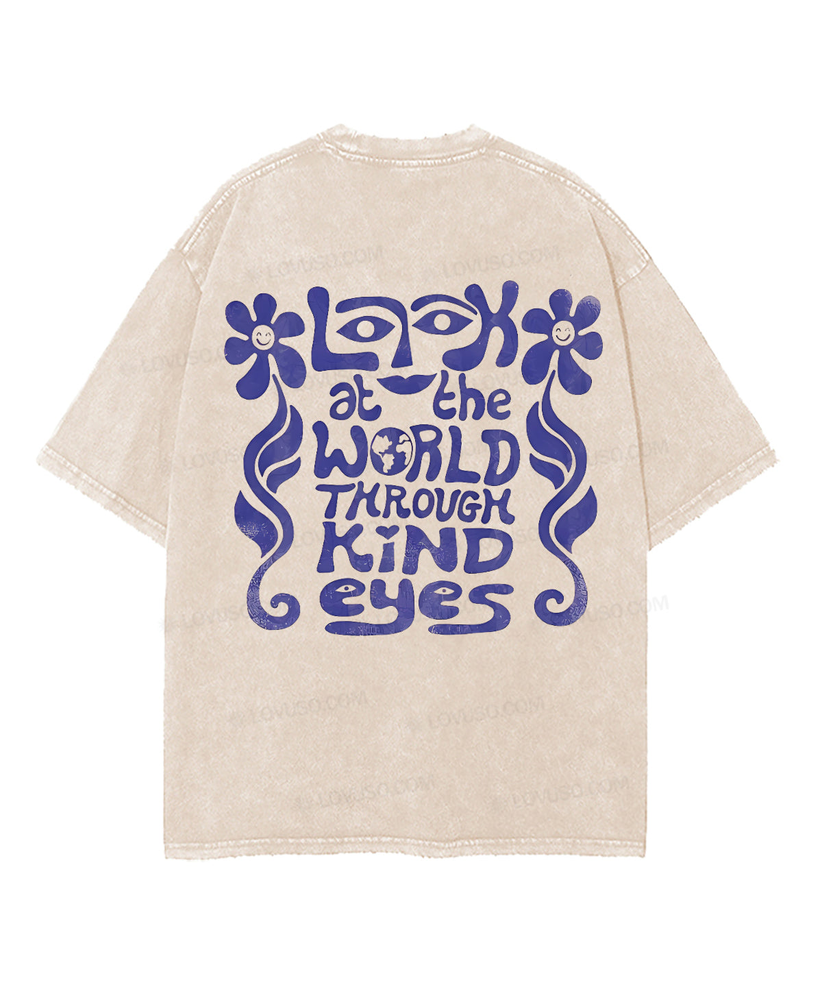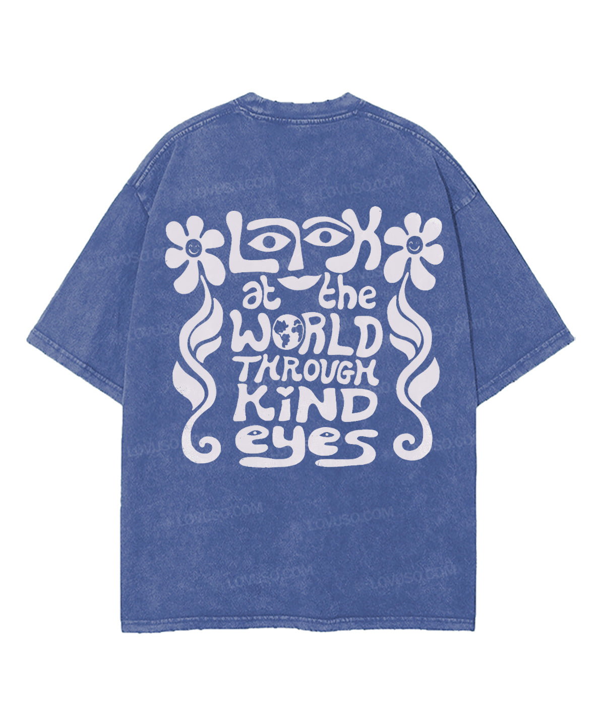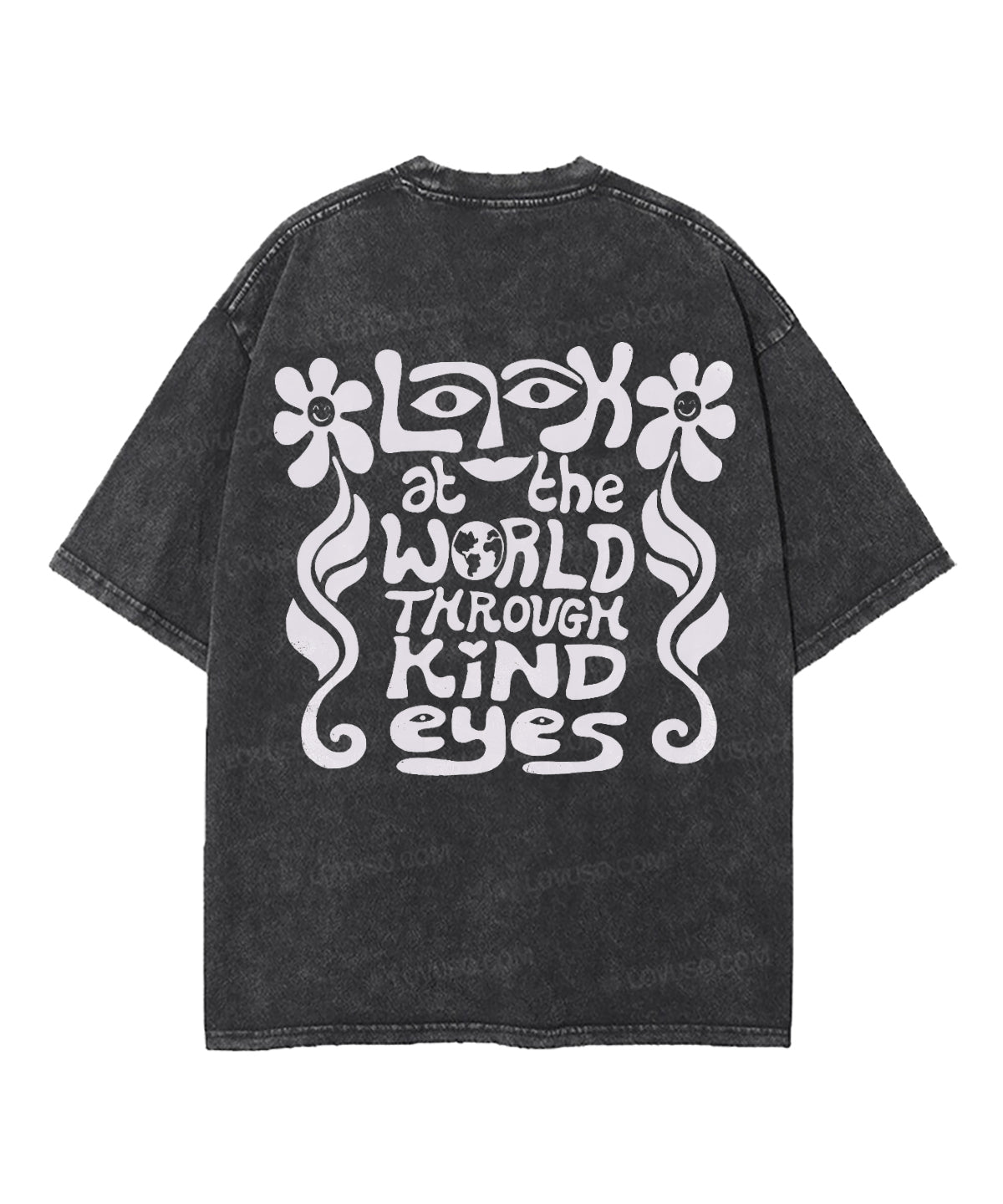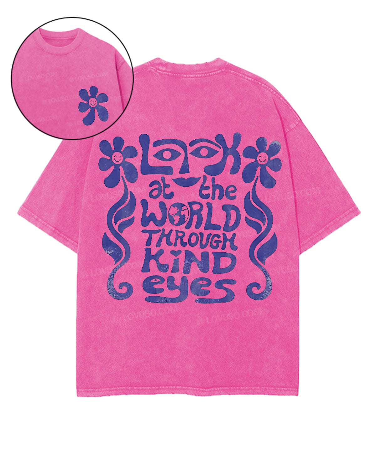 Funny Flower Look At The World Through Kind Eyes Double SIded Washed T-shirt