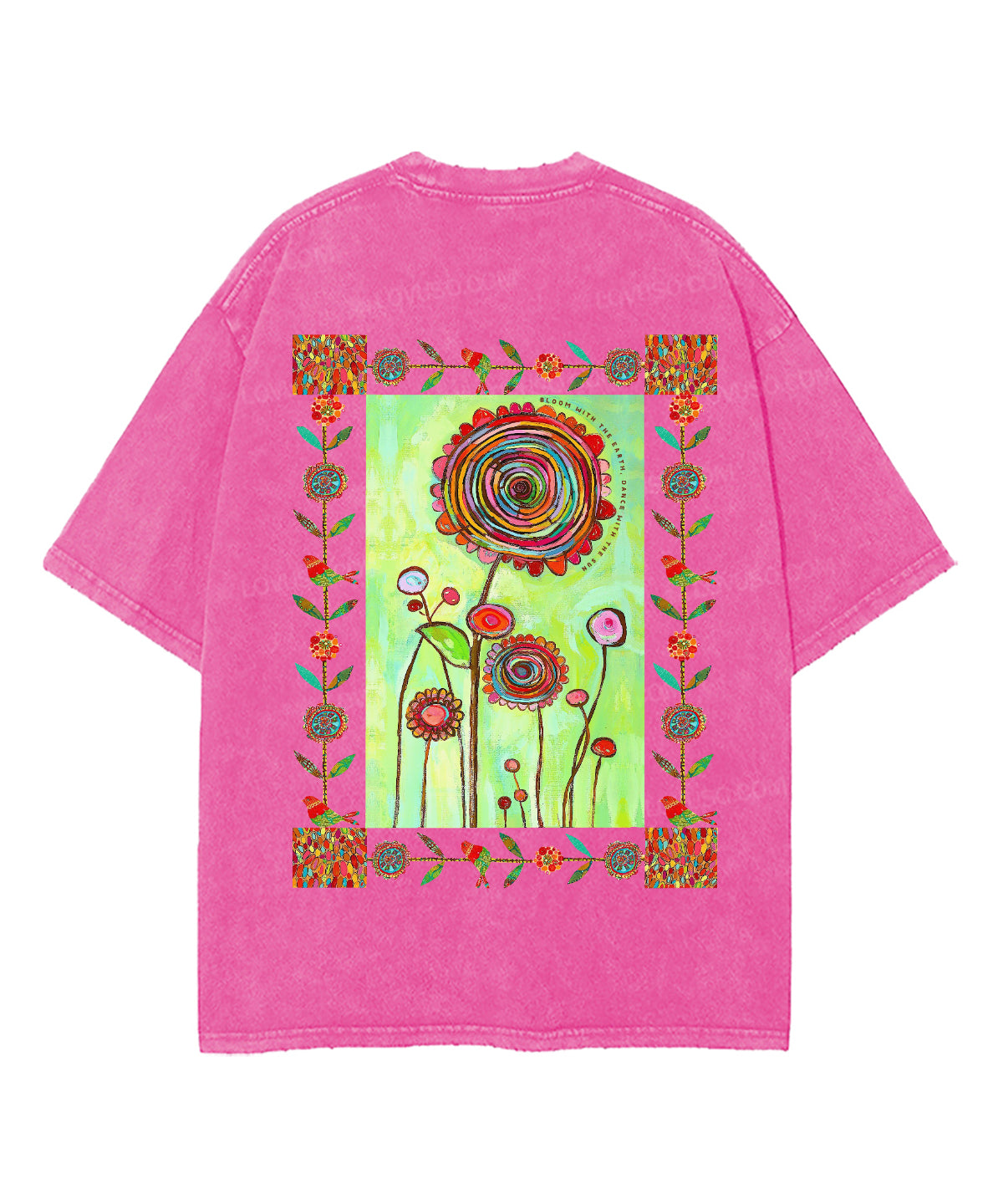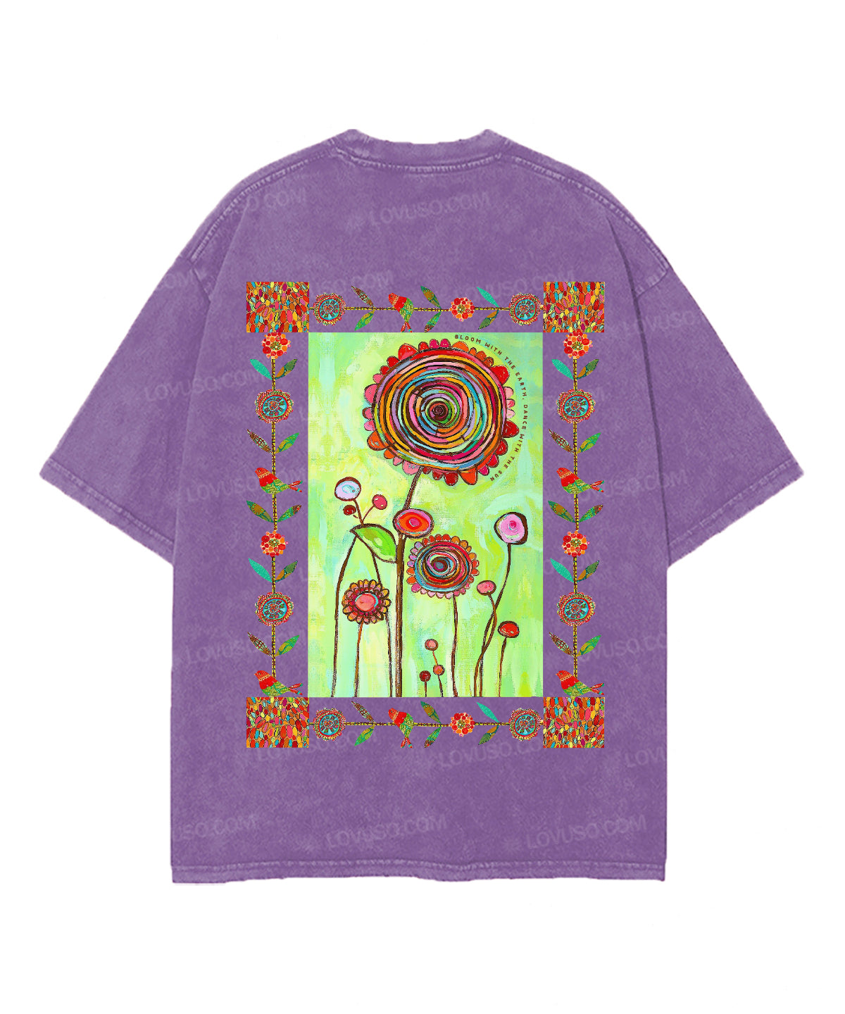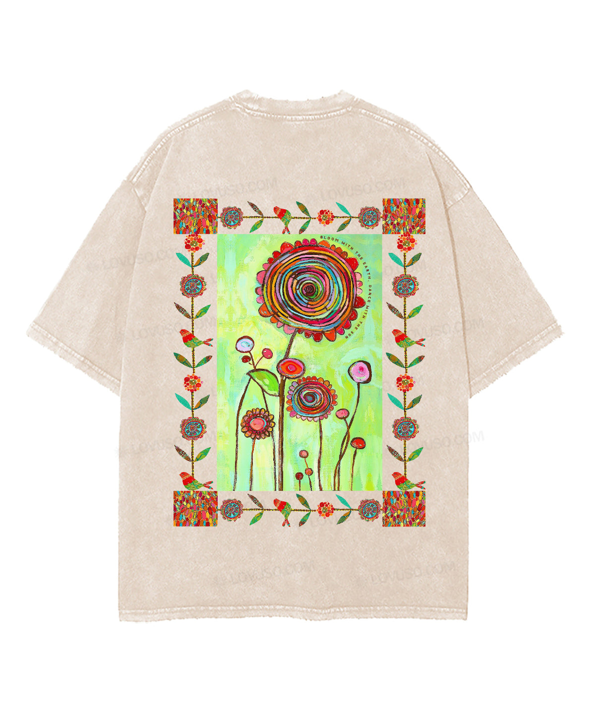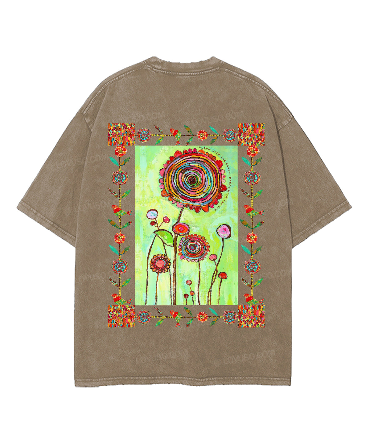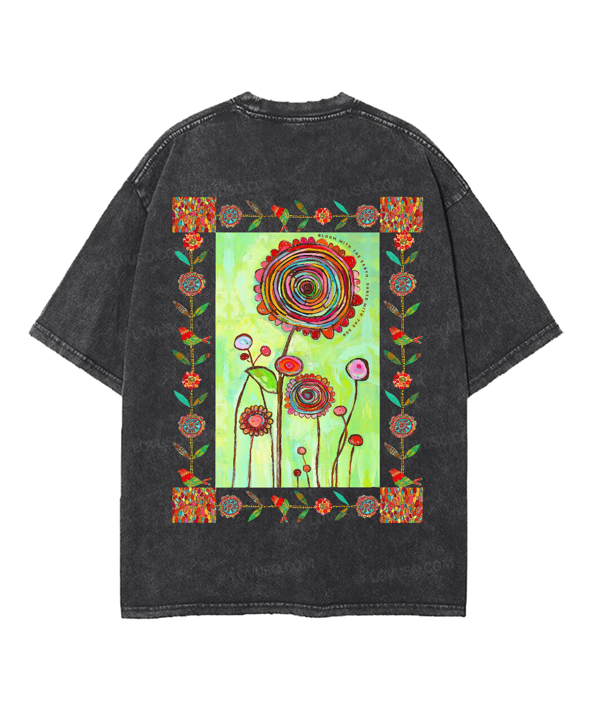 Retro Bloom With The Earth Dance With The Sun Double Sided Washed T-shirt