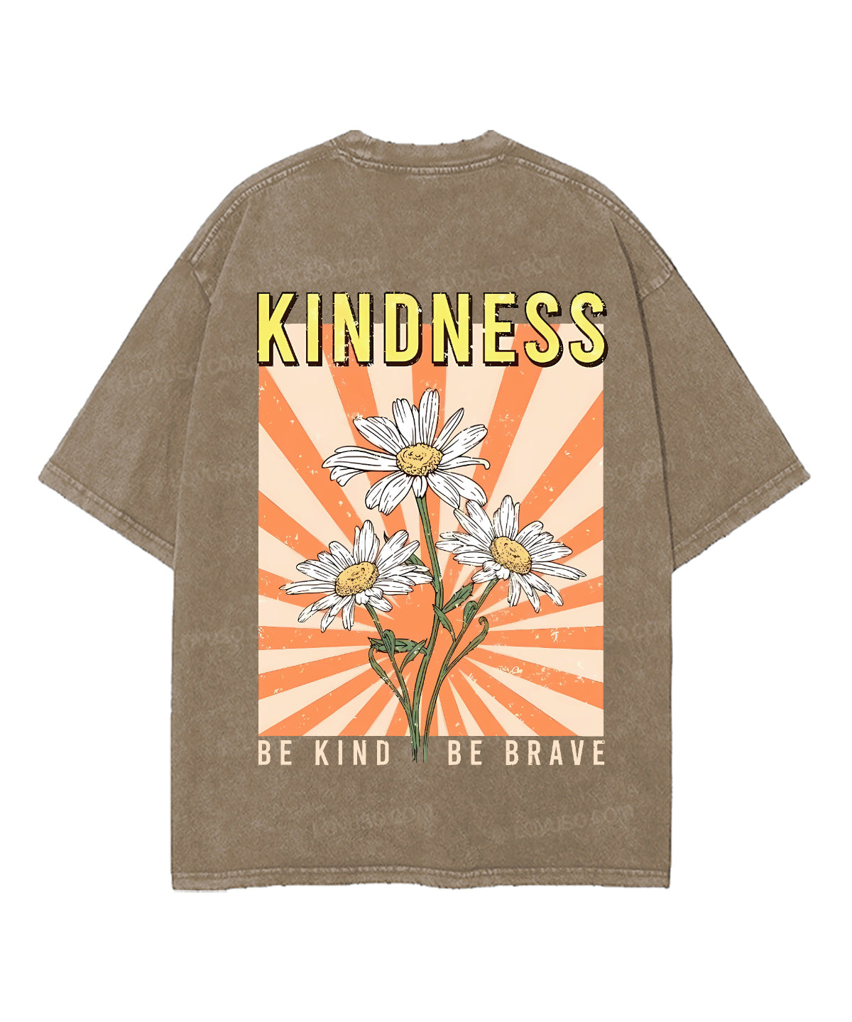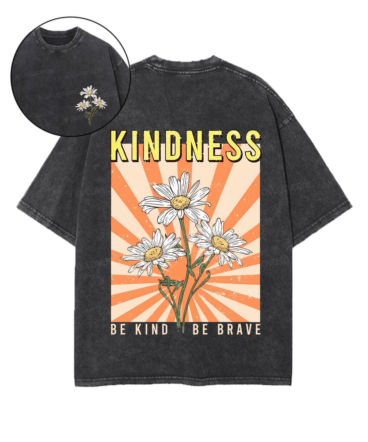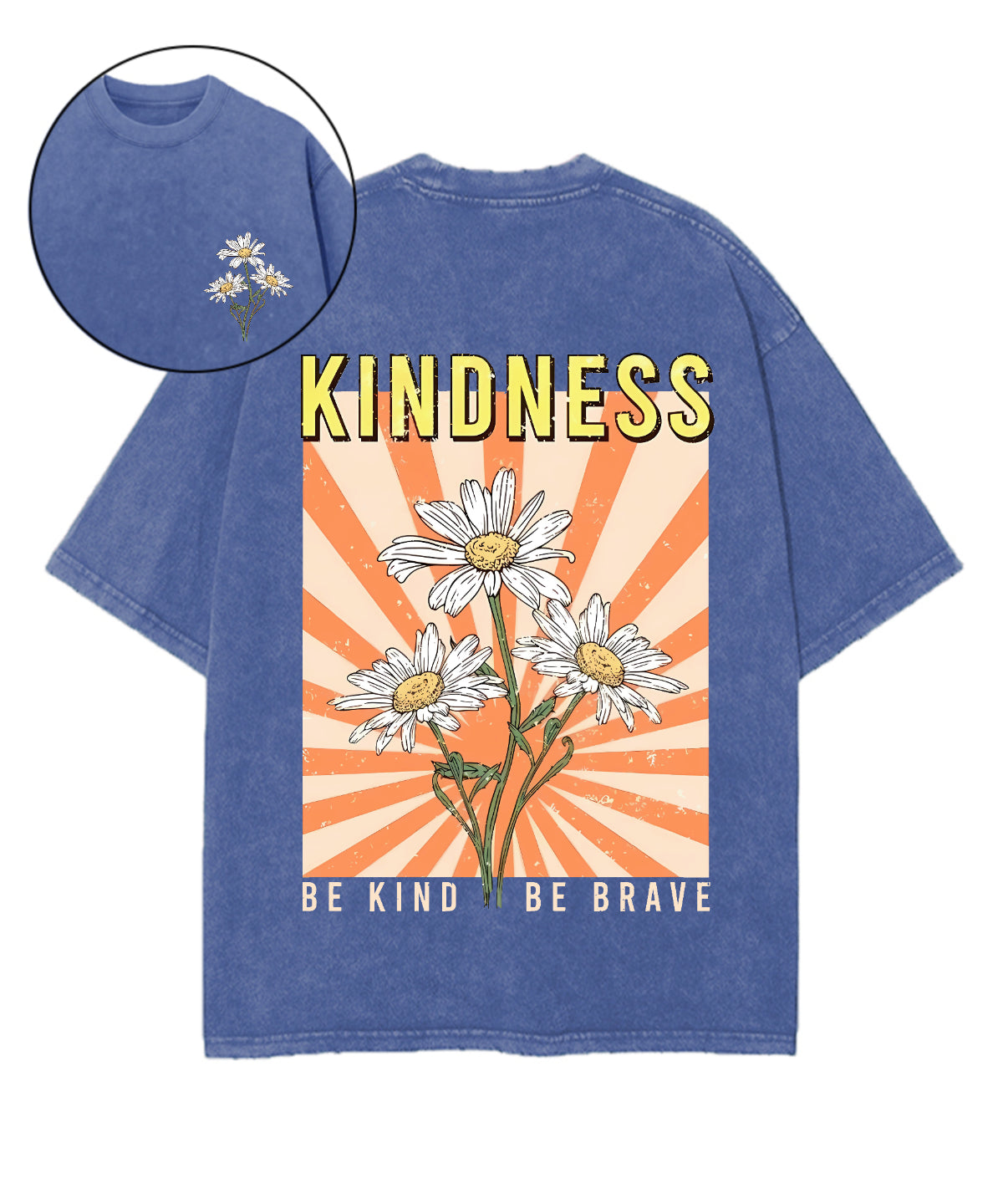 Retro Flower Be Kind Be Brave Double Sided Washed T-shirt