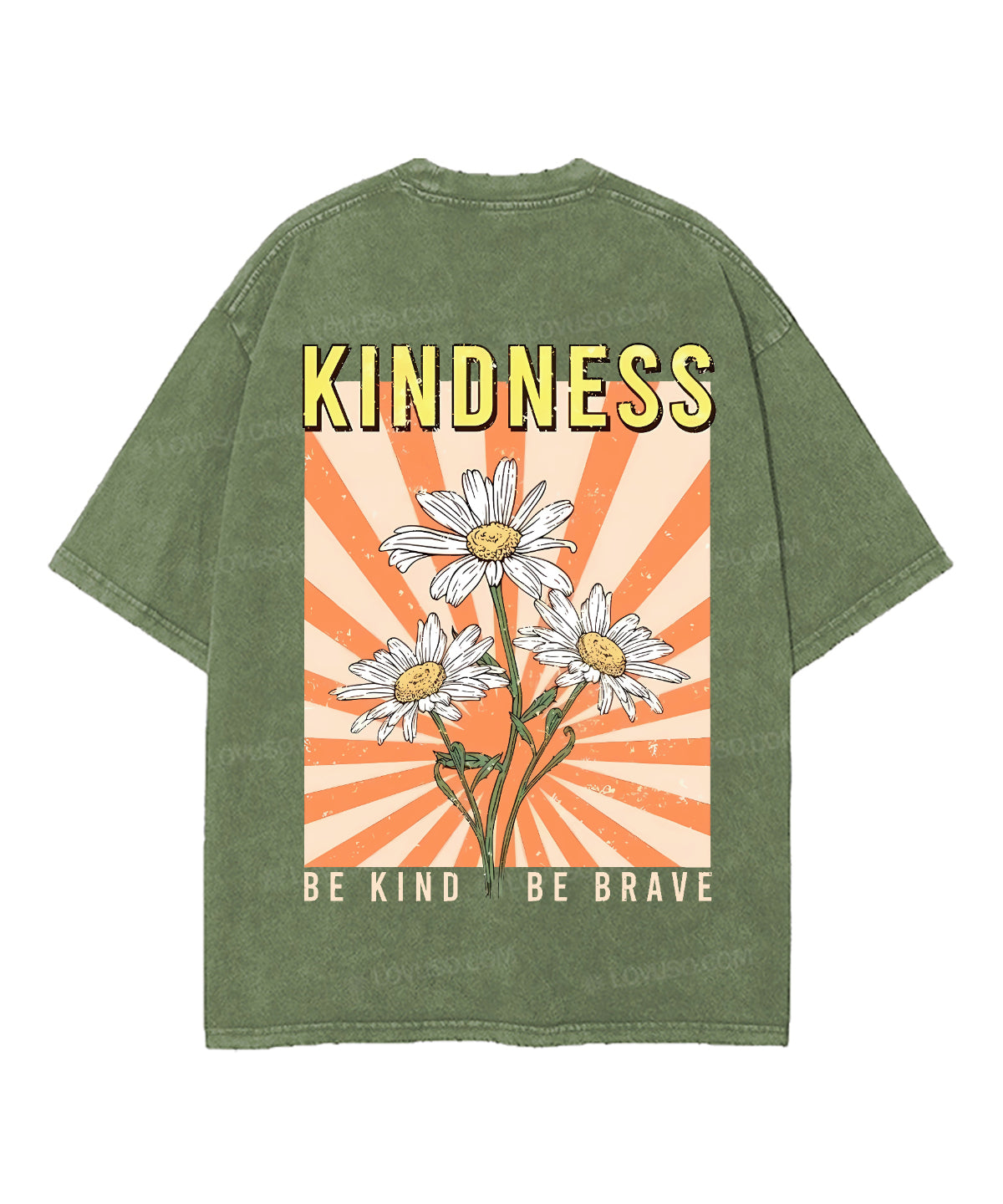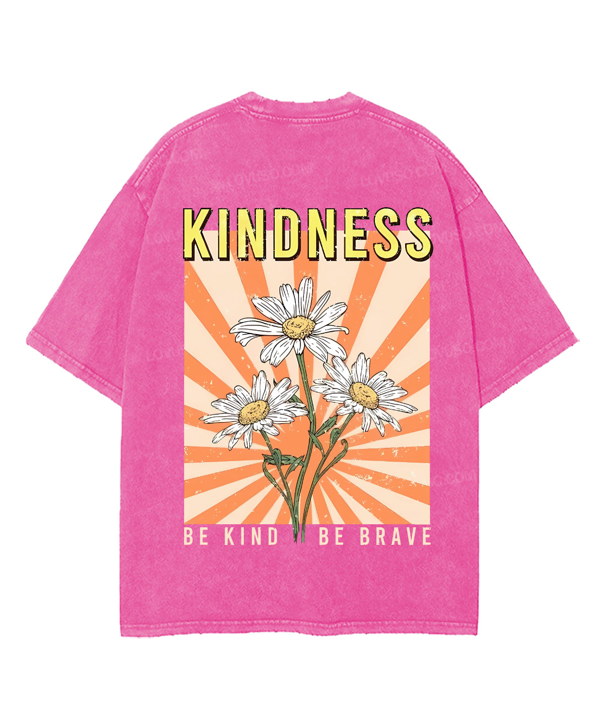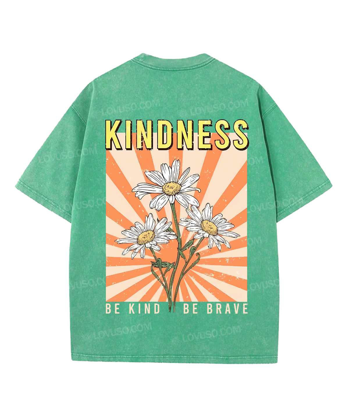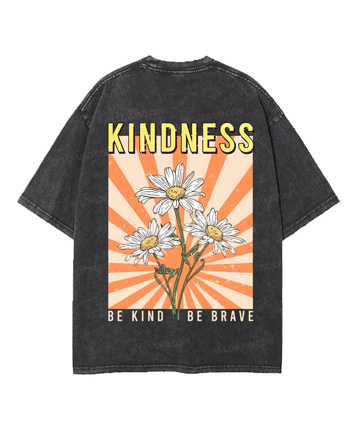 Retro Flower Be Kind Be Brave Double Sided Washed T-shirt