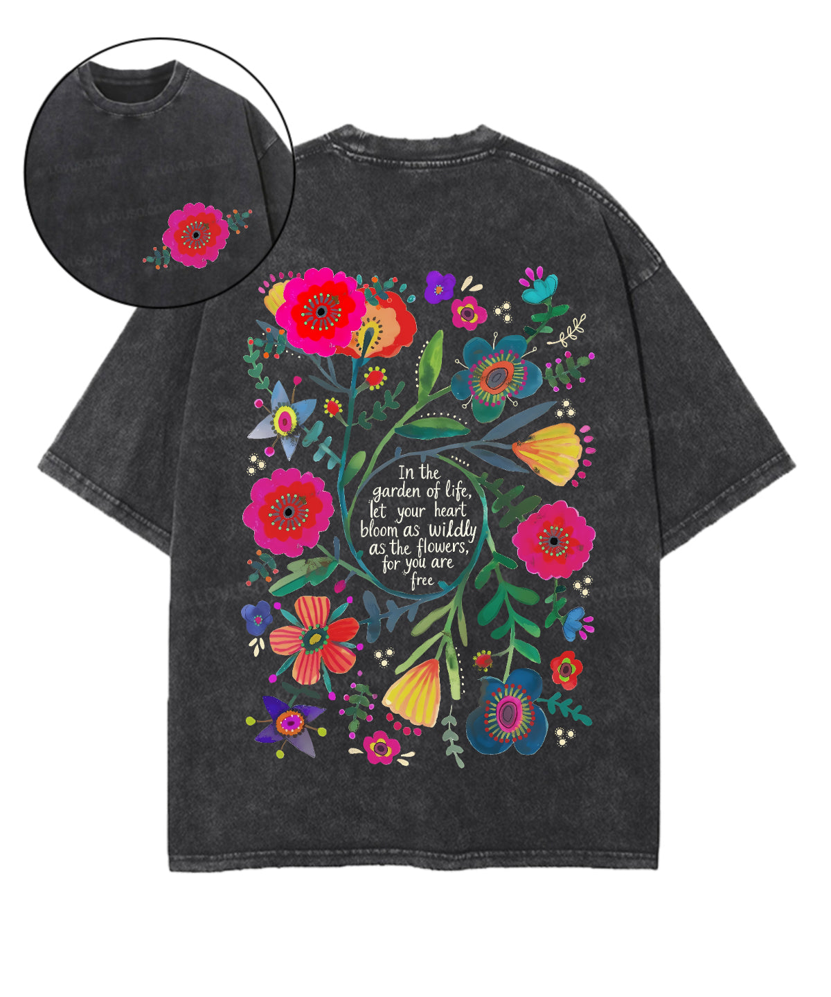 Retro Flower Double Sided Washed T-shirt