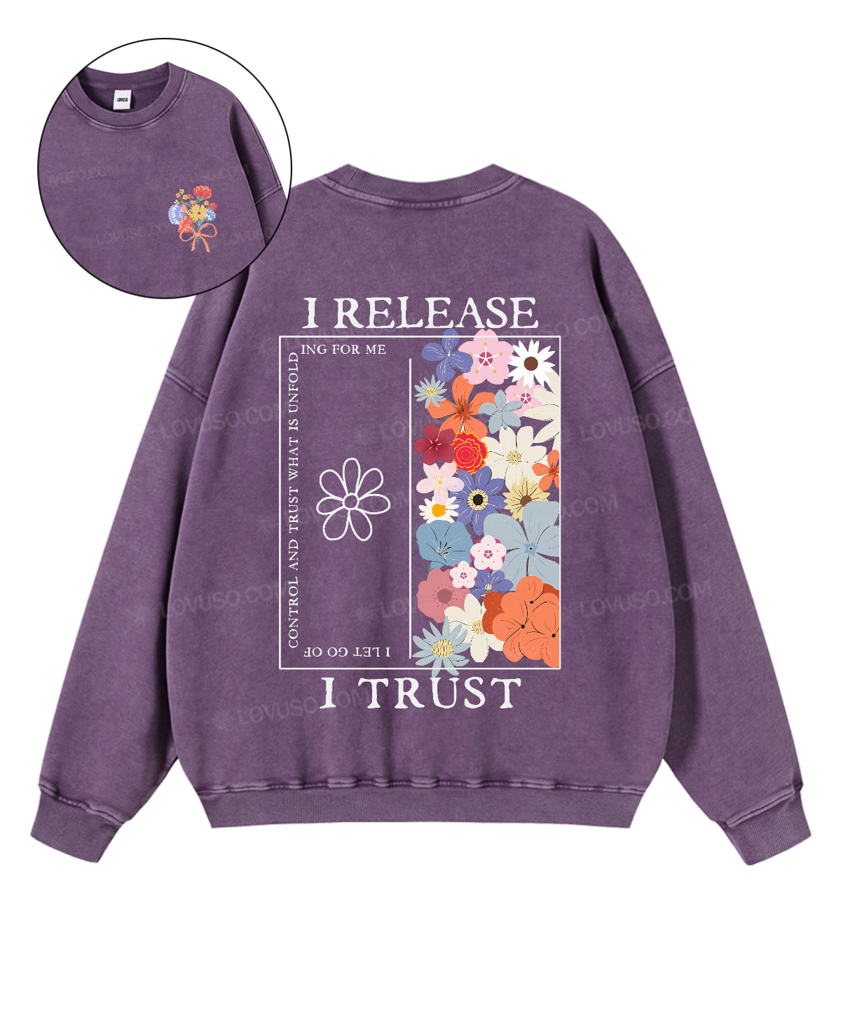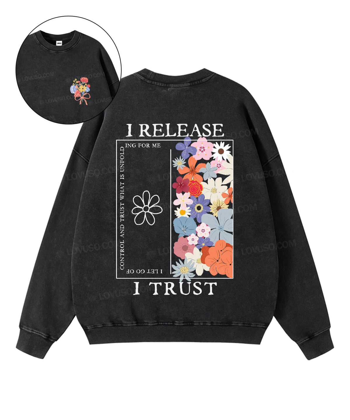 Retro Flower I Release I Trust Double Sided Washed Sweatshirt