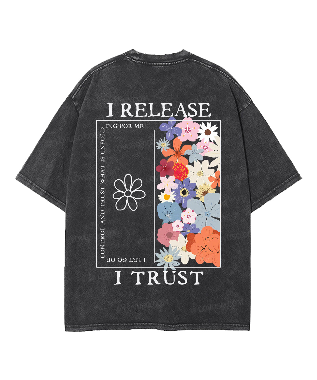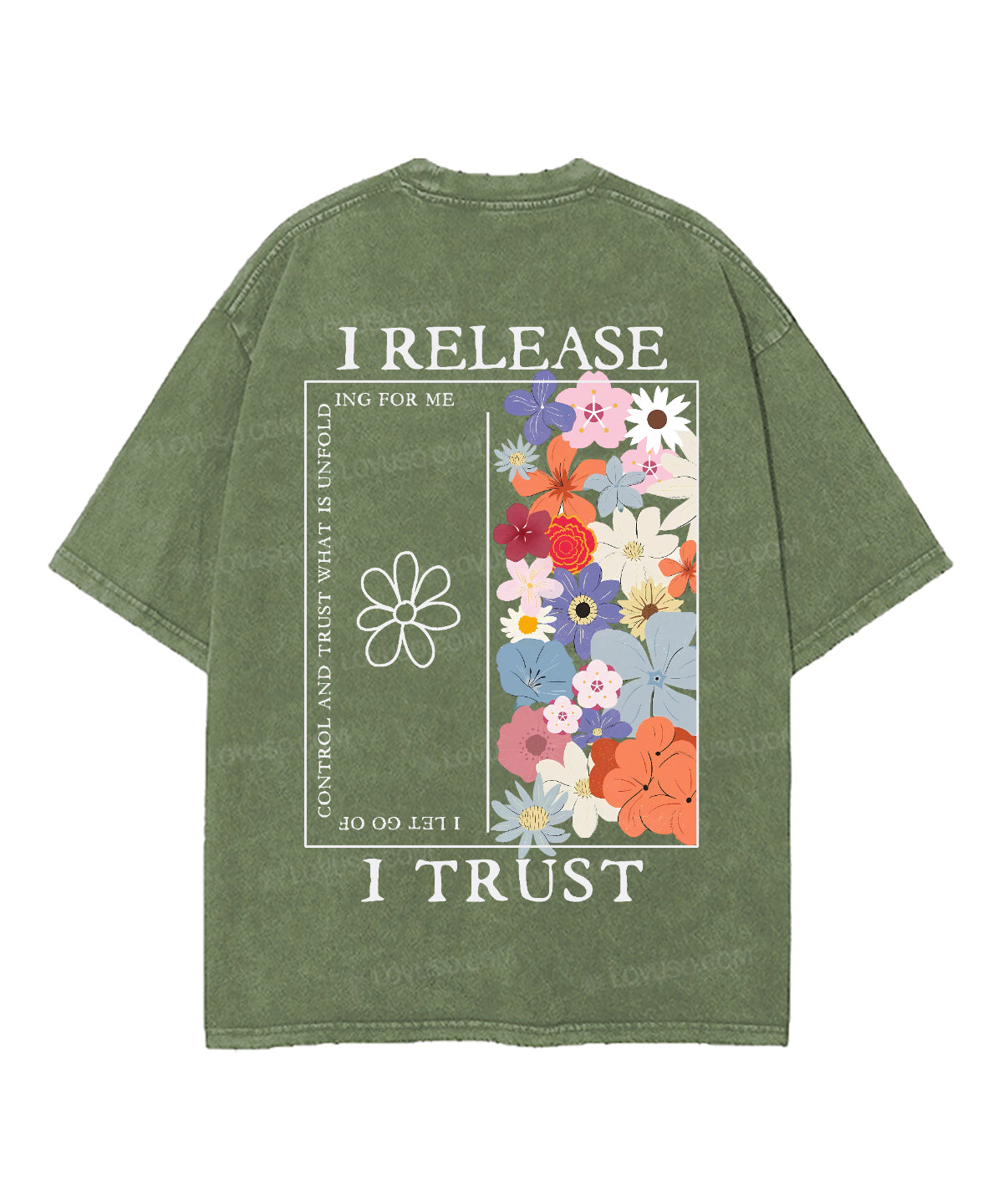 Retro Flower I Release I Trust Double Sided Washed T-shirt
