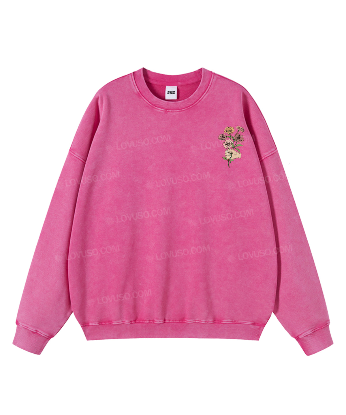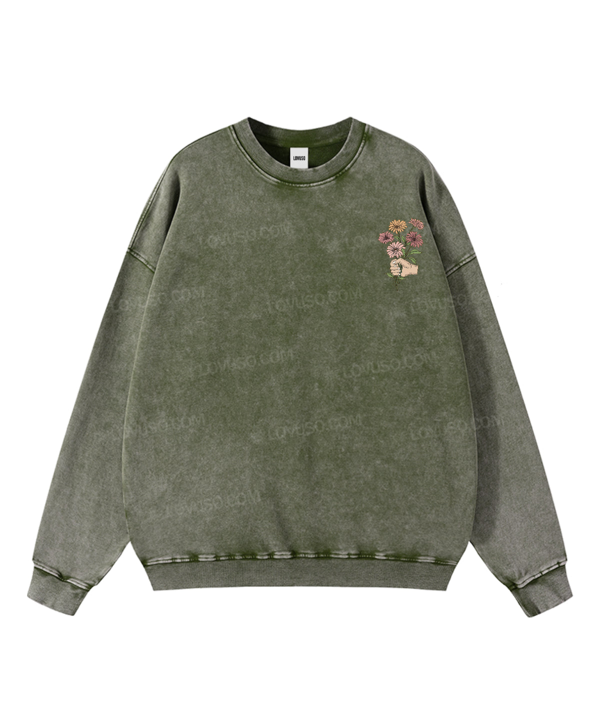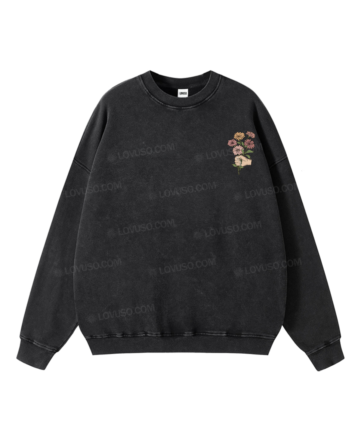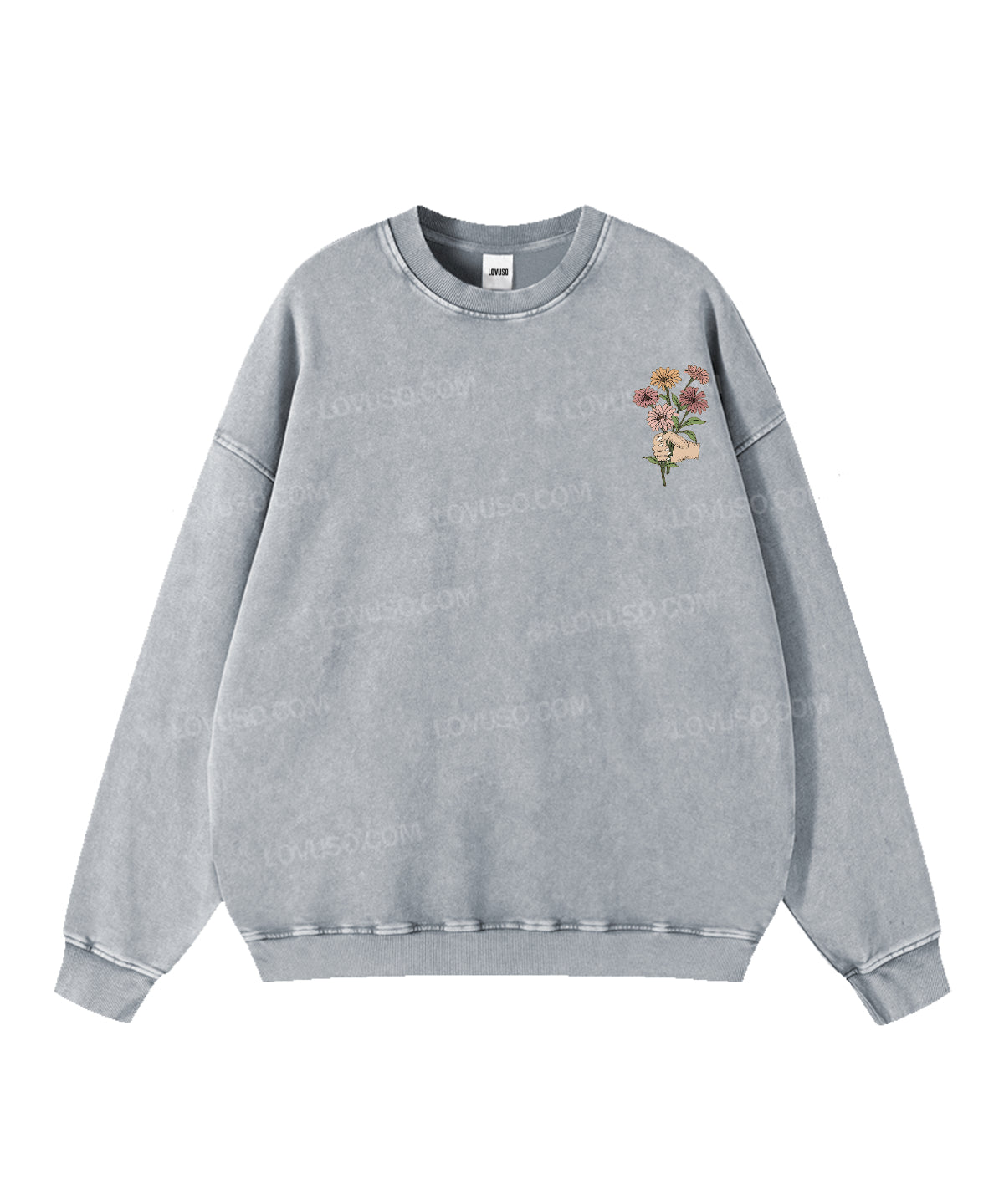 Washed for a naturally lived-in feel, this Lovuso crewneck sweatshirt carries the comfort of something familiar — soft, grounding, and quietly expressive. The classic crew neckline creates a calm inner space, offering a gentle sense of safety and ease, as if the world slows down when you slip it on. With its worn-in texture and relaxed silhouette, it’s designed for slow days, creative flow, and moments of returning to yourself.