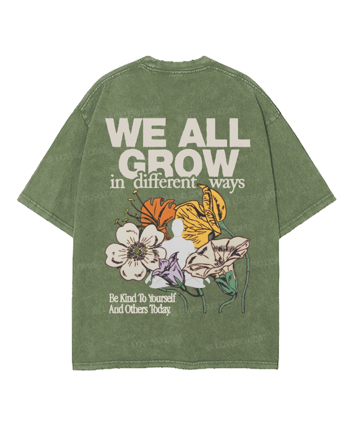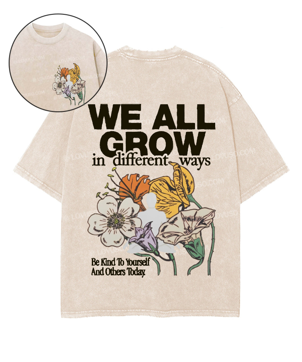 Retro Flower We All Grow In Different Ways Double Sided Washed T-shirt