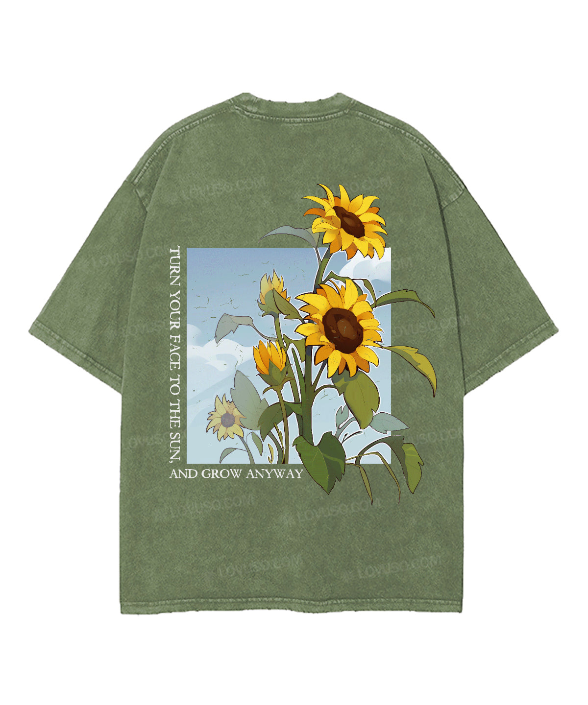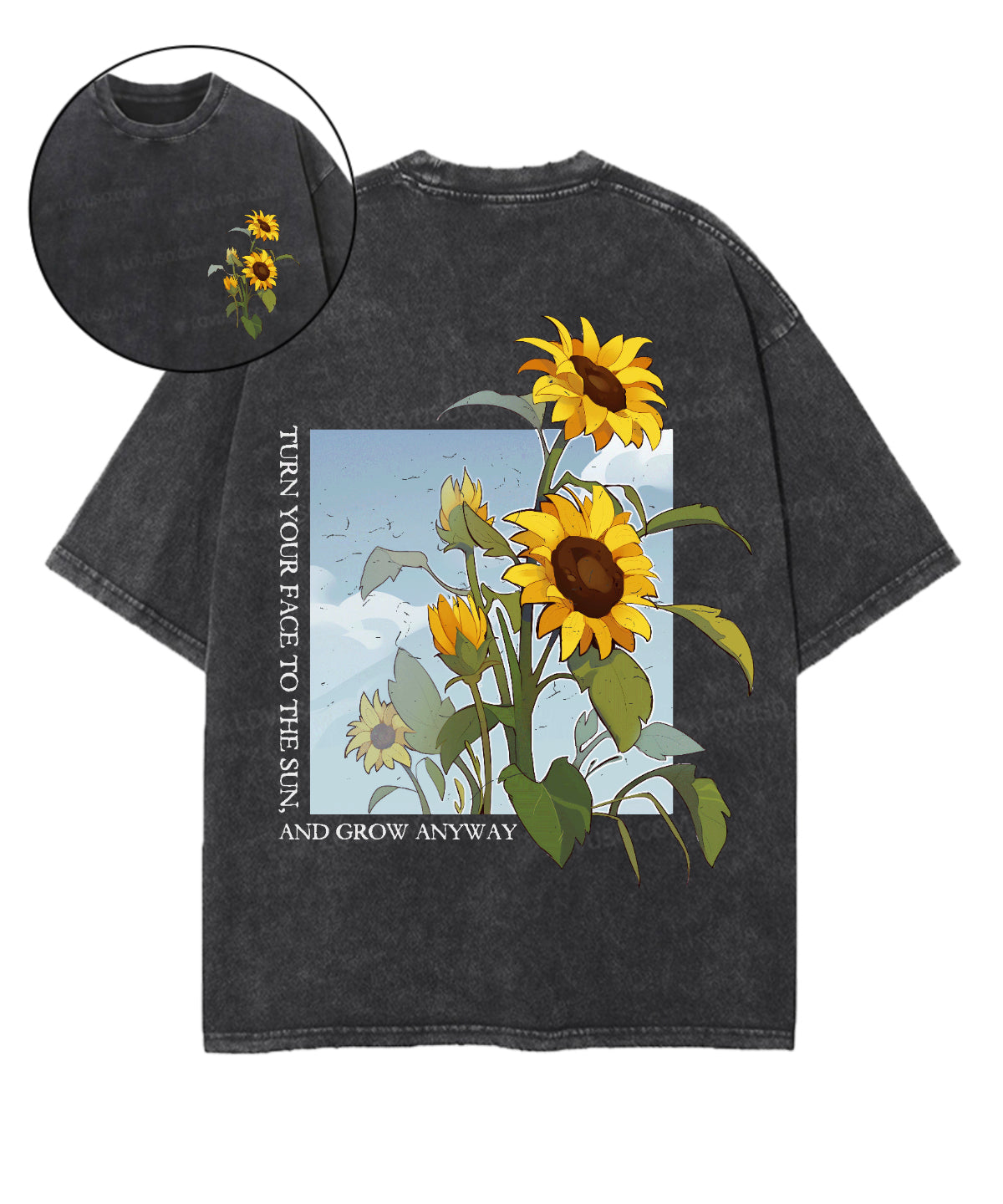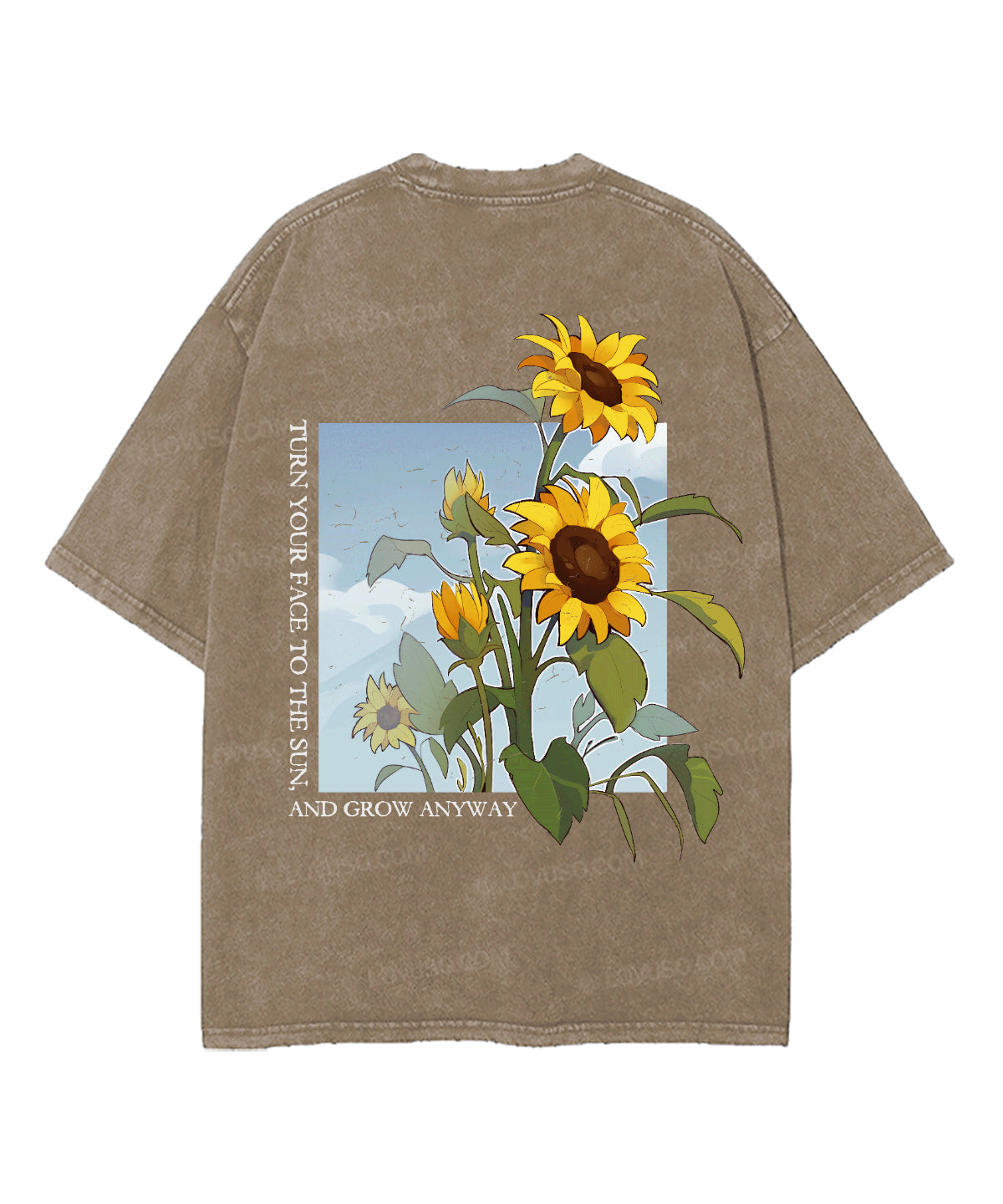 Sunflower Turn Your Face To The Sun Double Sided Washed T-shirt