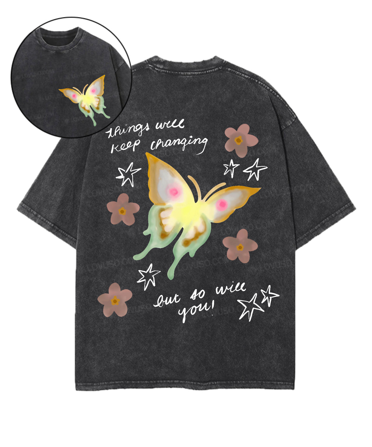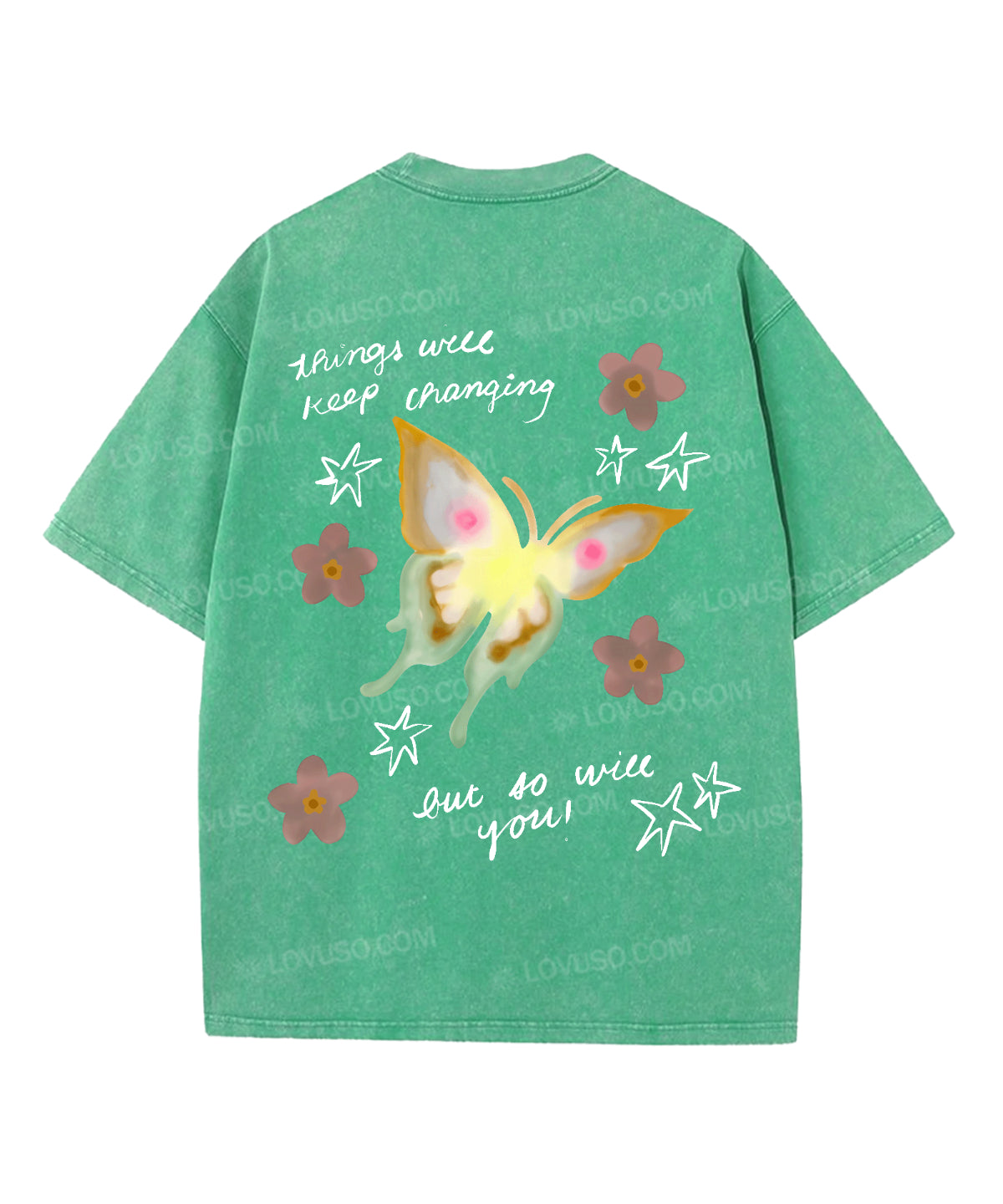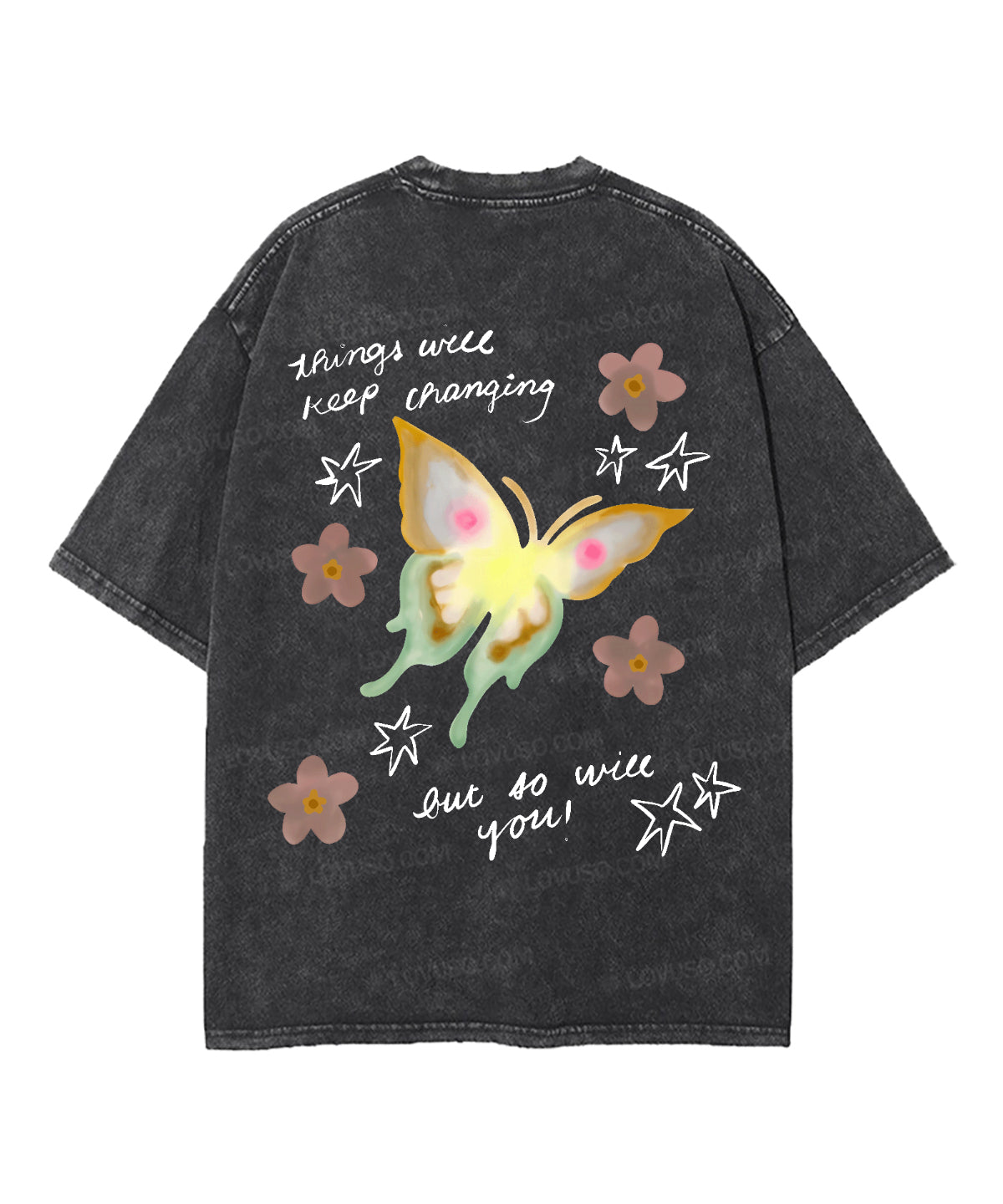 Retro Flower Moving Slow Is Still Moving Double Sided Washed T-shirt