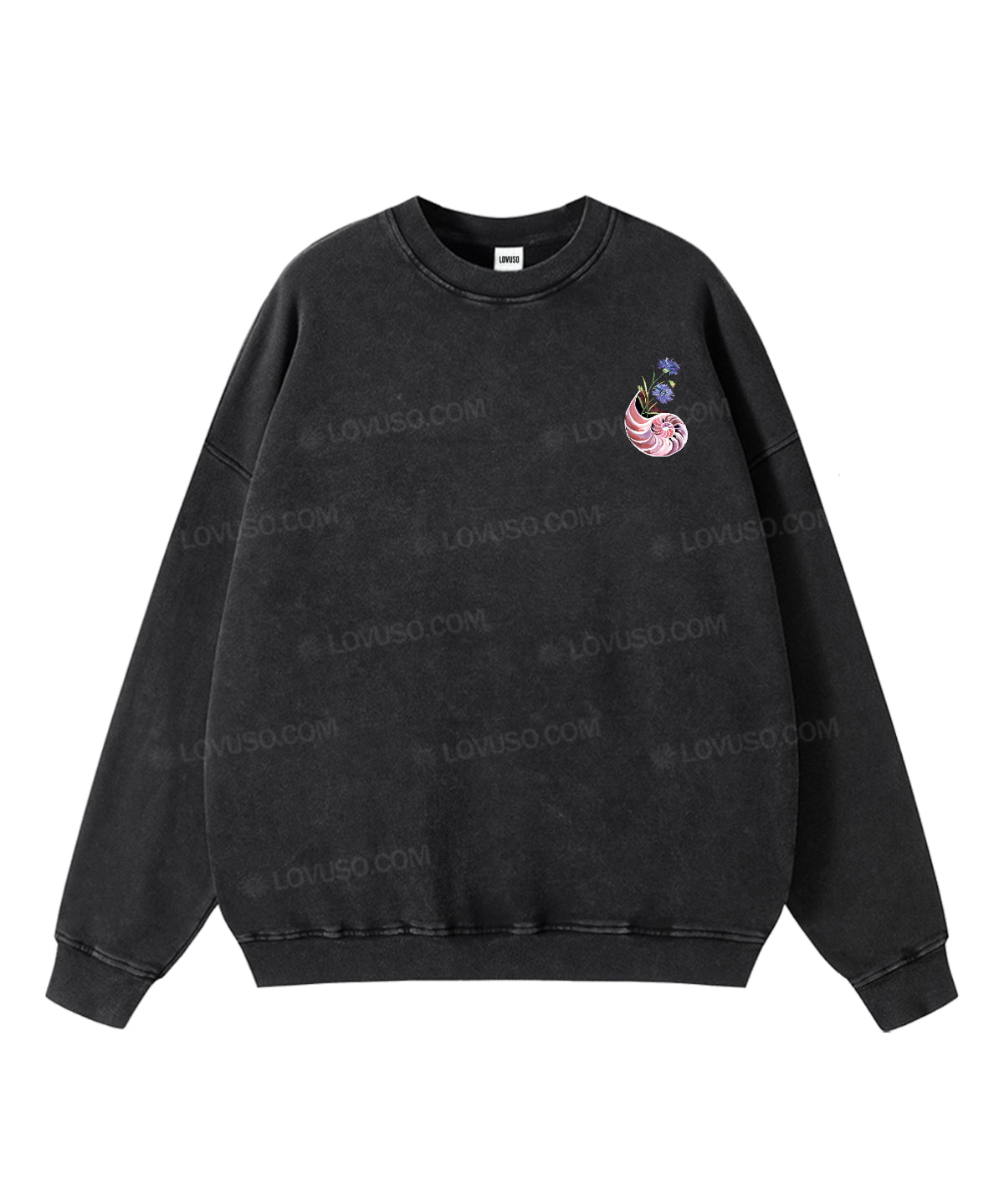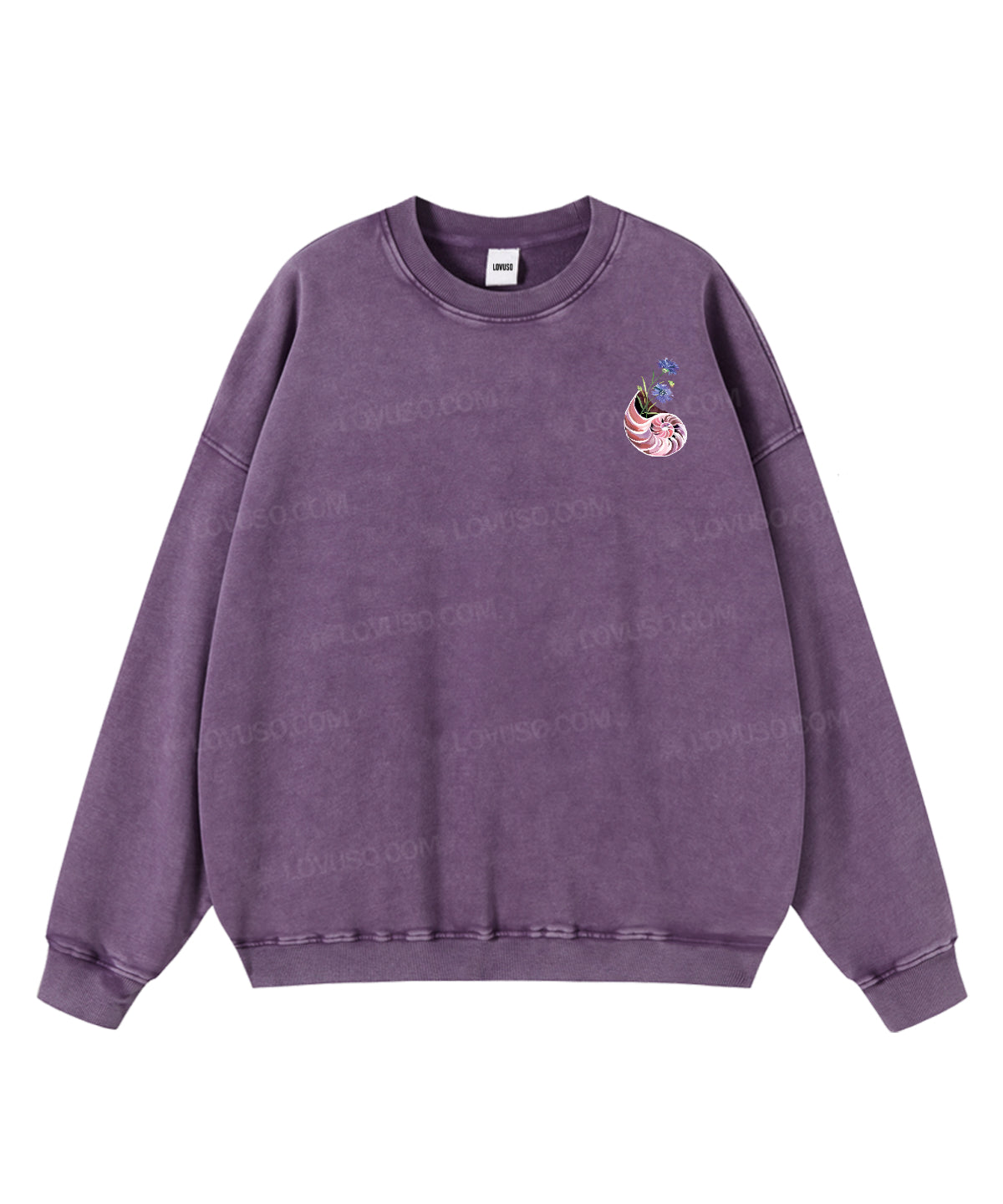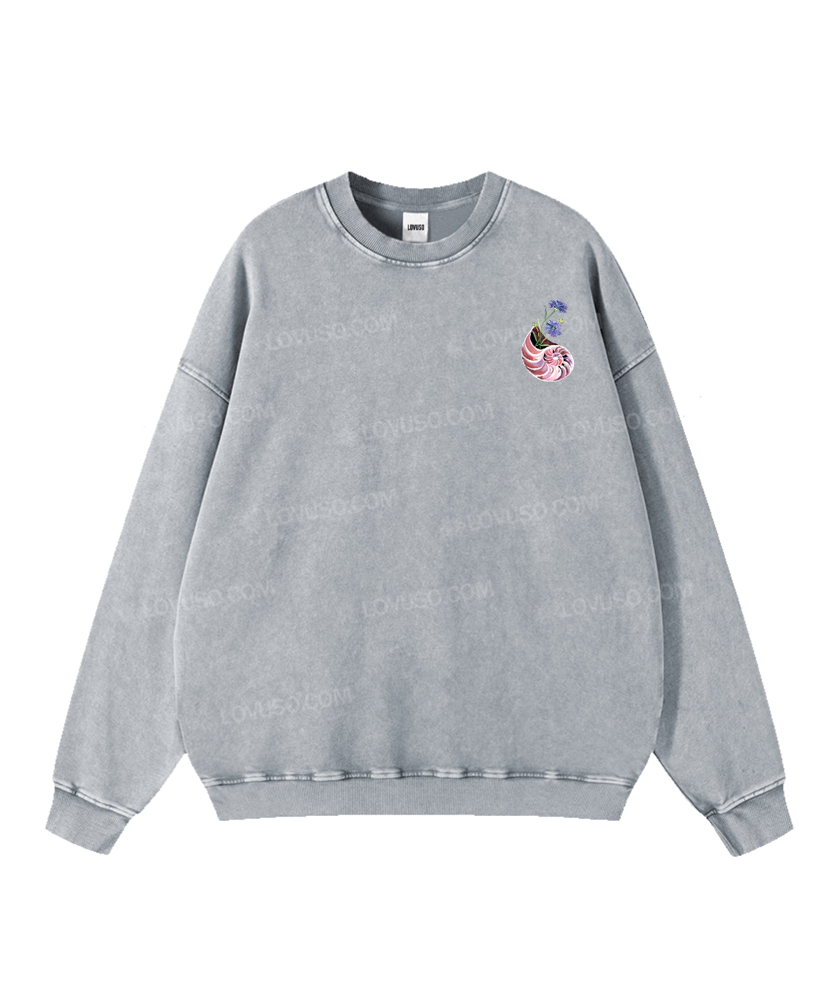 Washed for a naturally lived-in feel, this Lovuso crewneck sweatshirt carries the comfort of something familiar — soft, grounding, and quietly expressive. The classic crew neckline creates a calm inner space, offering a gentle sense of safety and ease, as if the world slows down when you slip it on. With its worn-in texture and relaxed silhouette, it’s designed for slow days, creative flow, and moments of returning to yourself.