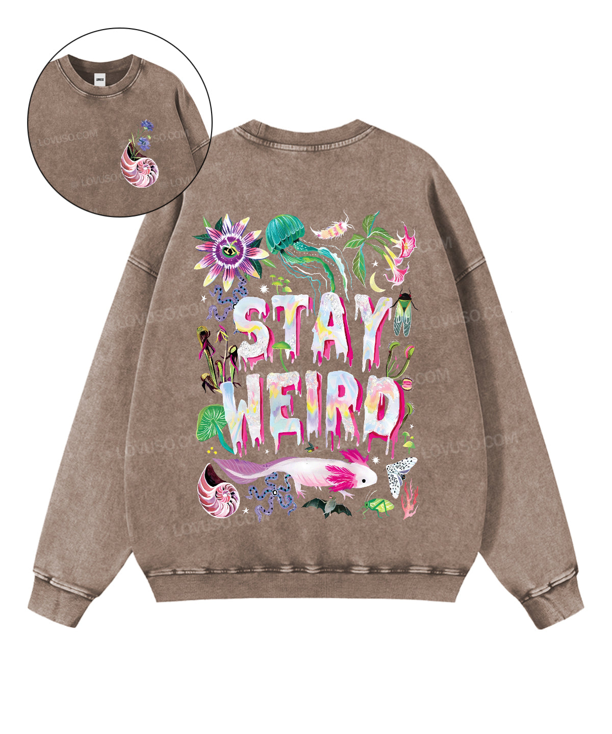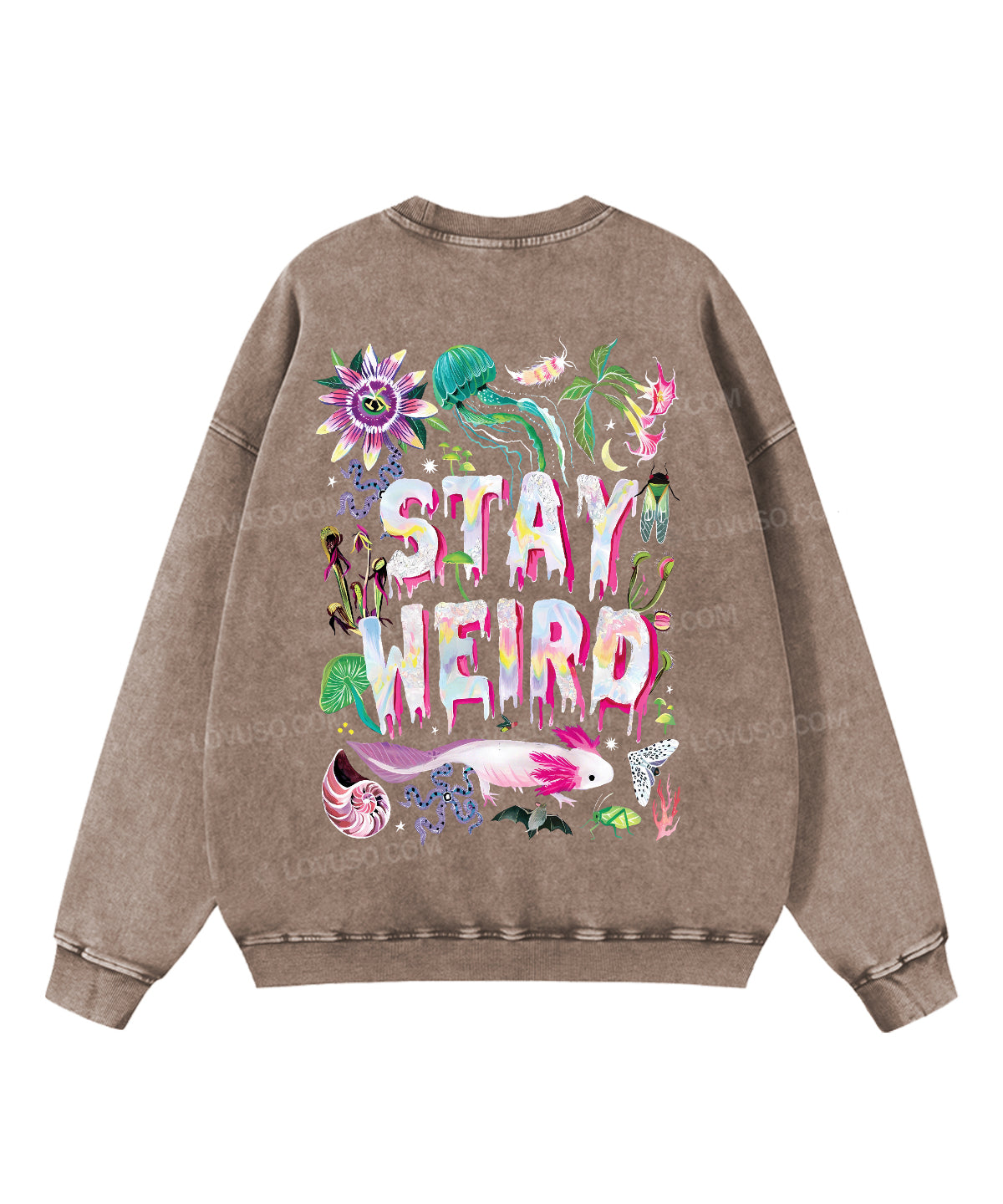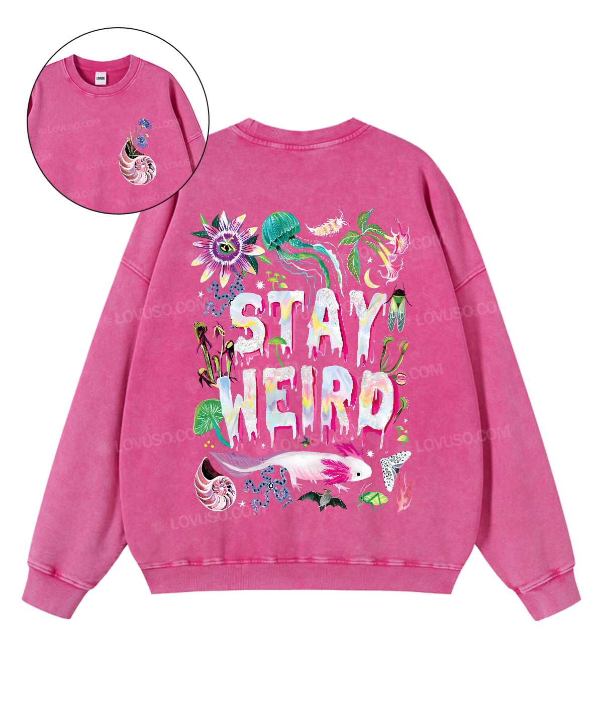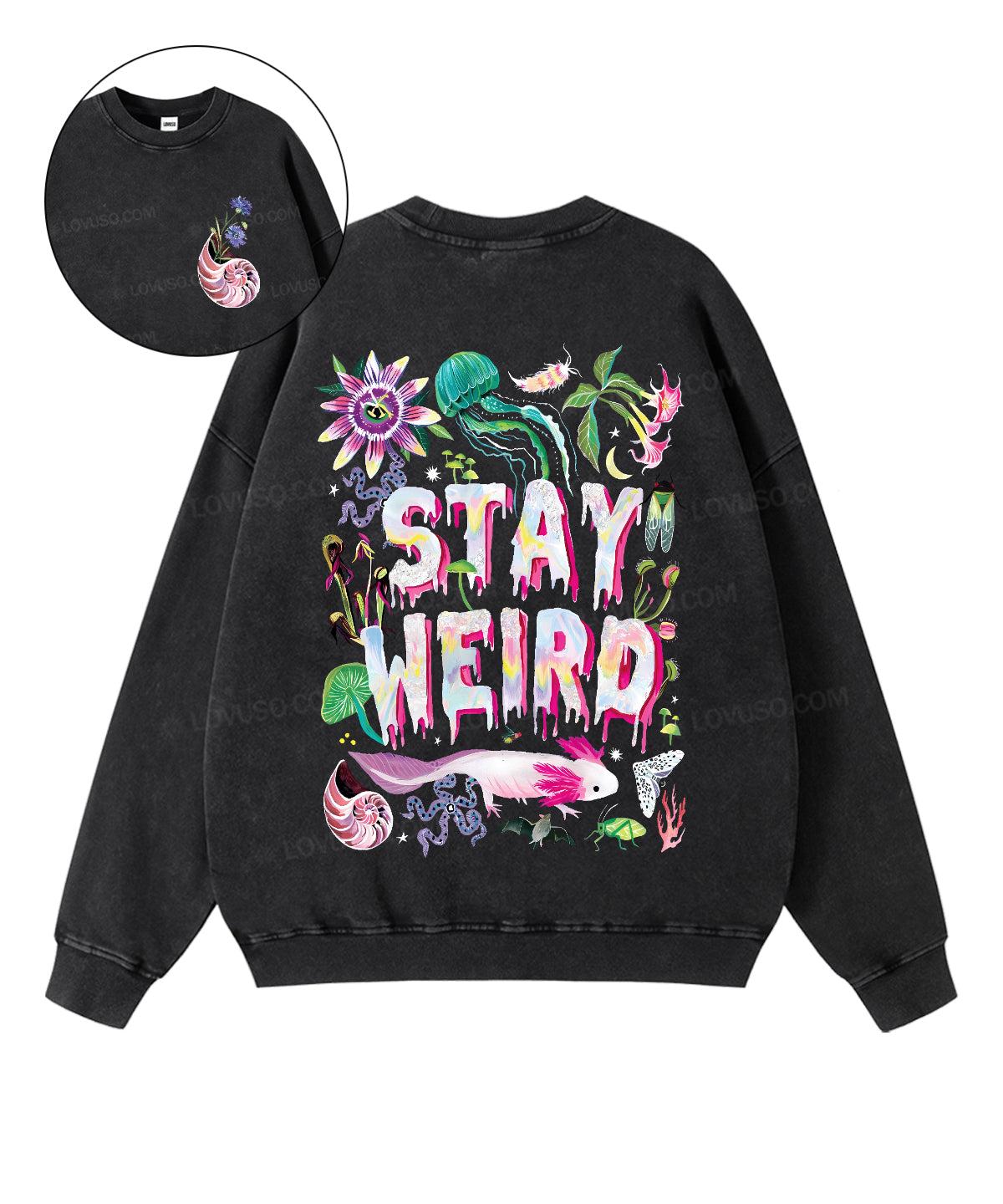 Mystic Marine Life And Mushroom Stay Weird Double Sided Washed Sweatshirt