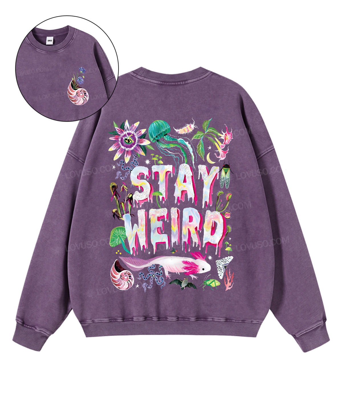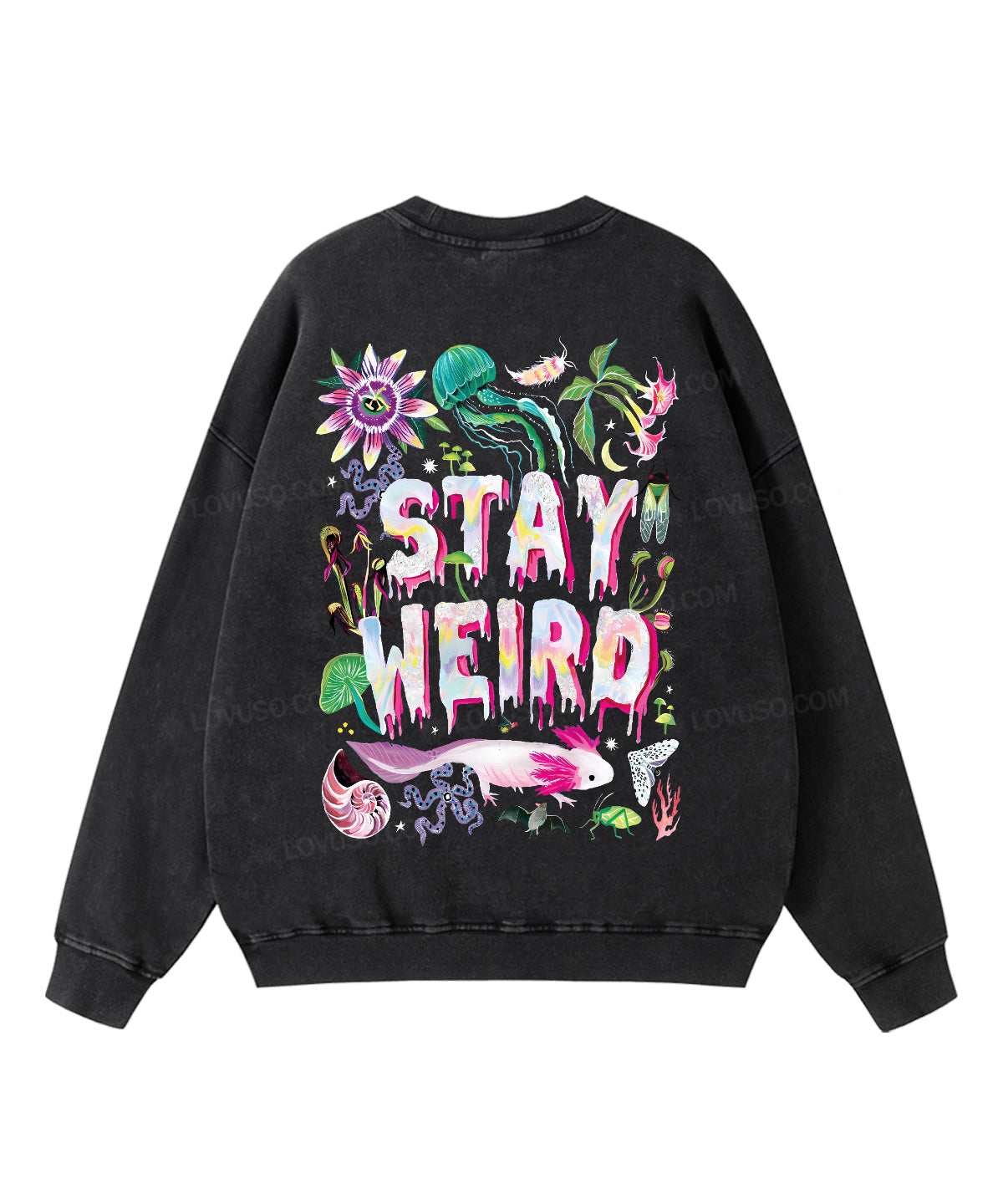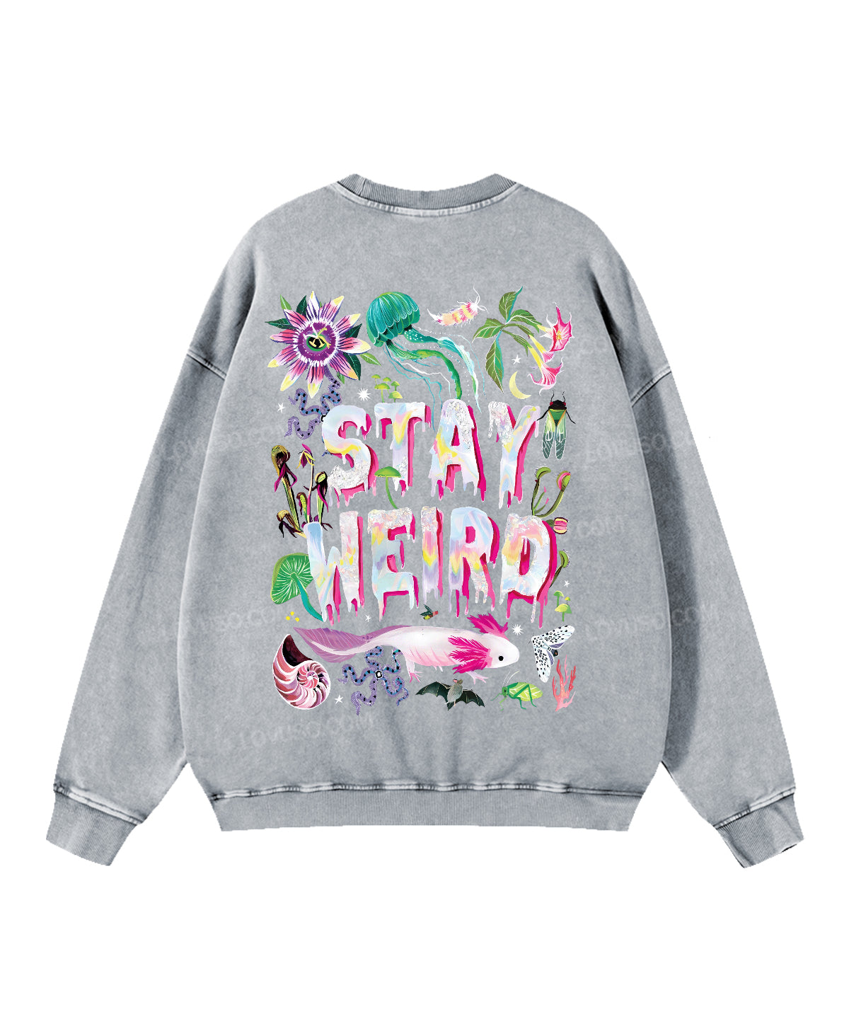 Mystic Marine Life And Mushroom Stay Weird Double Sided Washed Sweatshirt