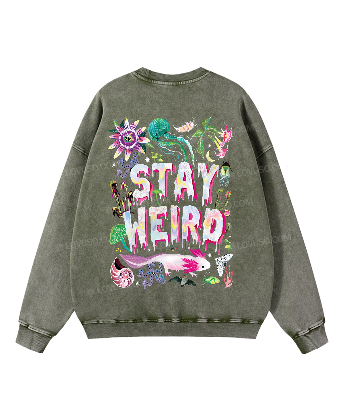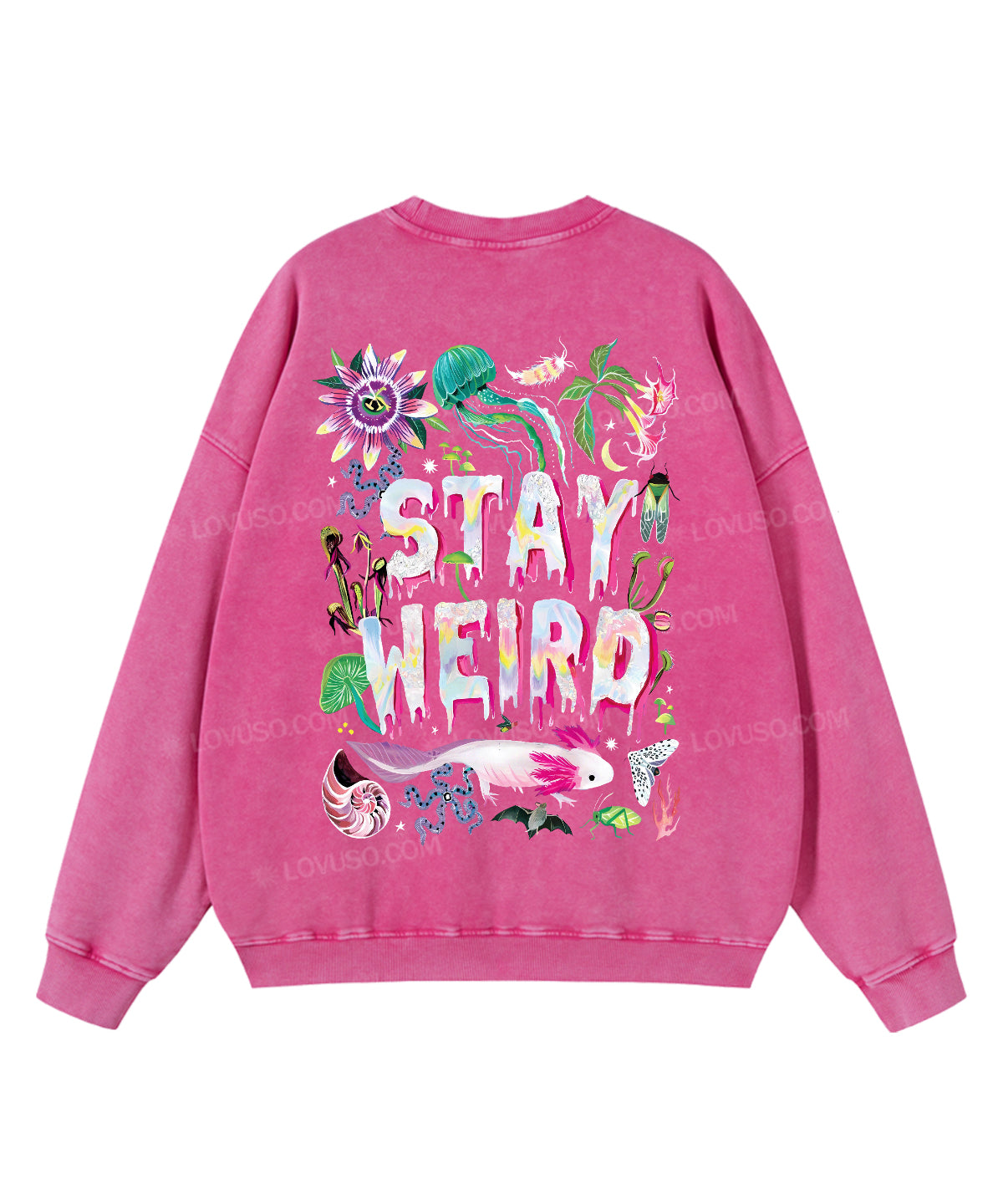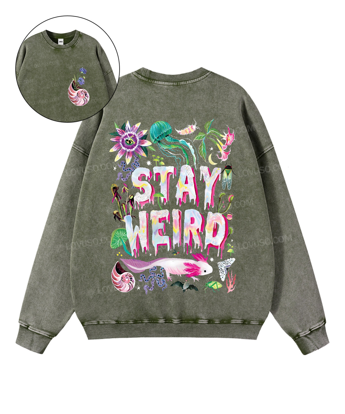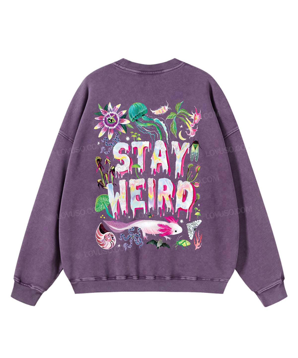 Mystic Marine Life And Mushroom Stay Weird Double Sided Washed Sweatshirt