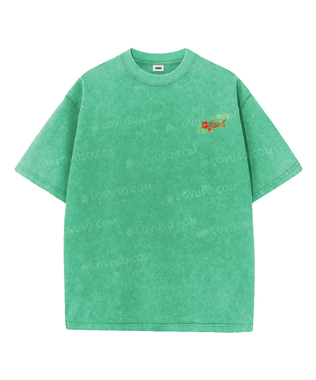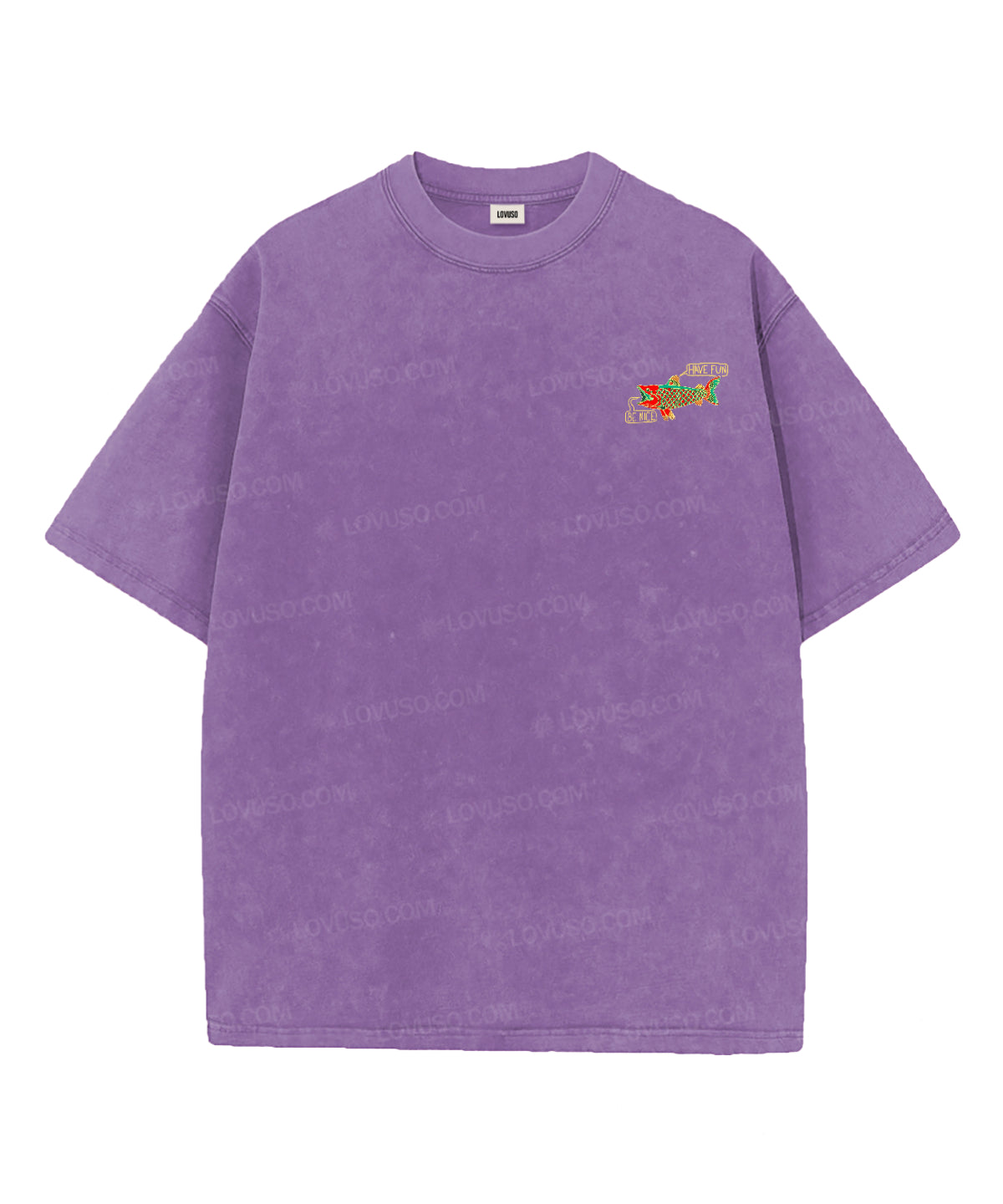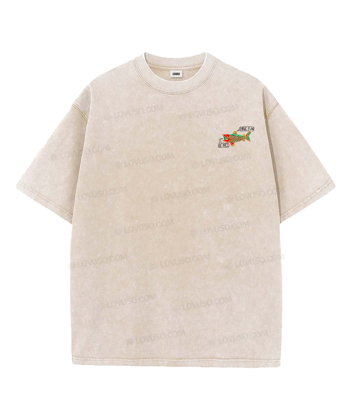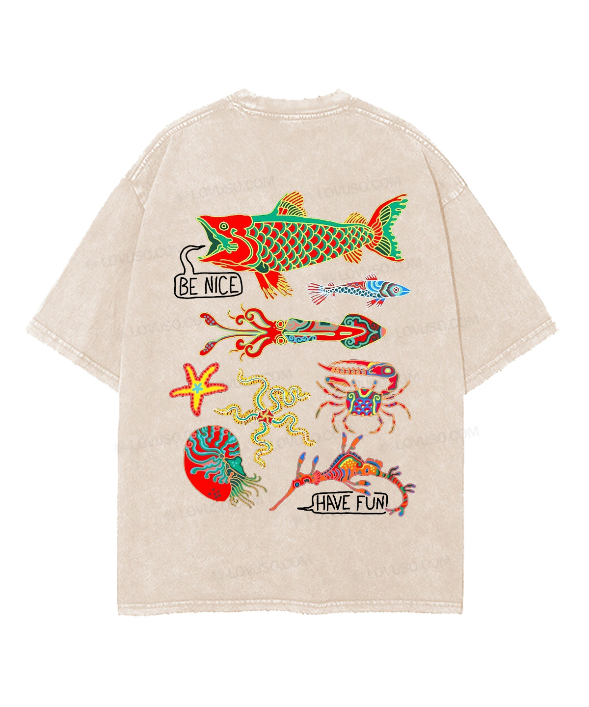 Retro Colorful Fish Be Nice Have Fun Double Sided Washed T-shirt