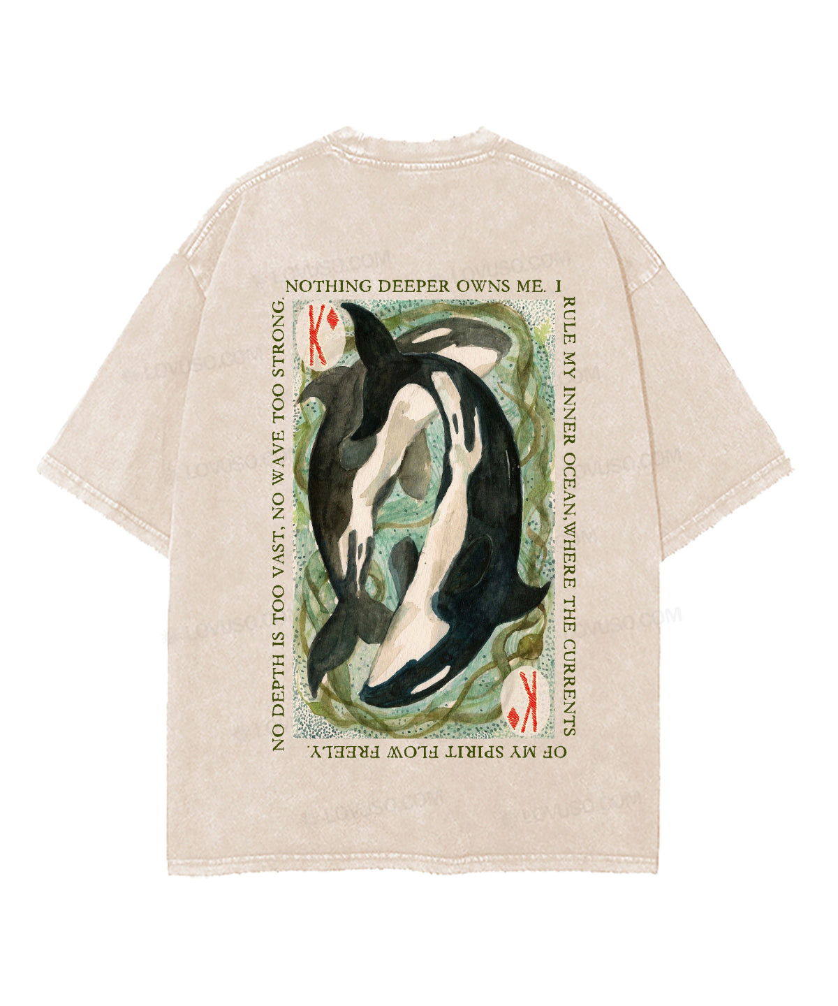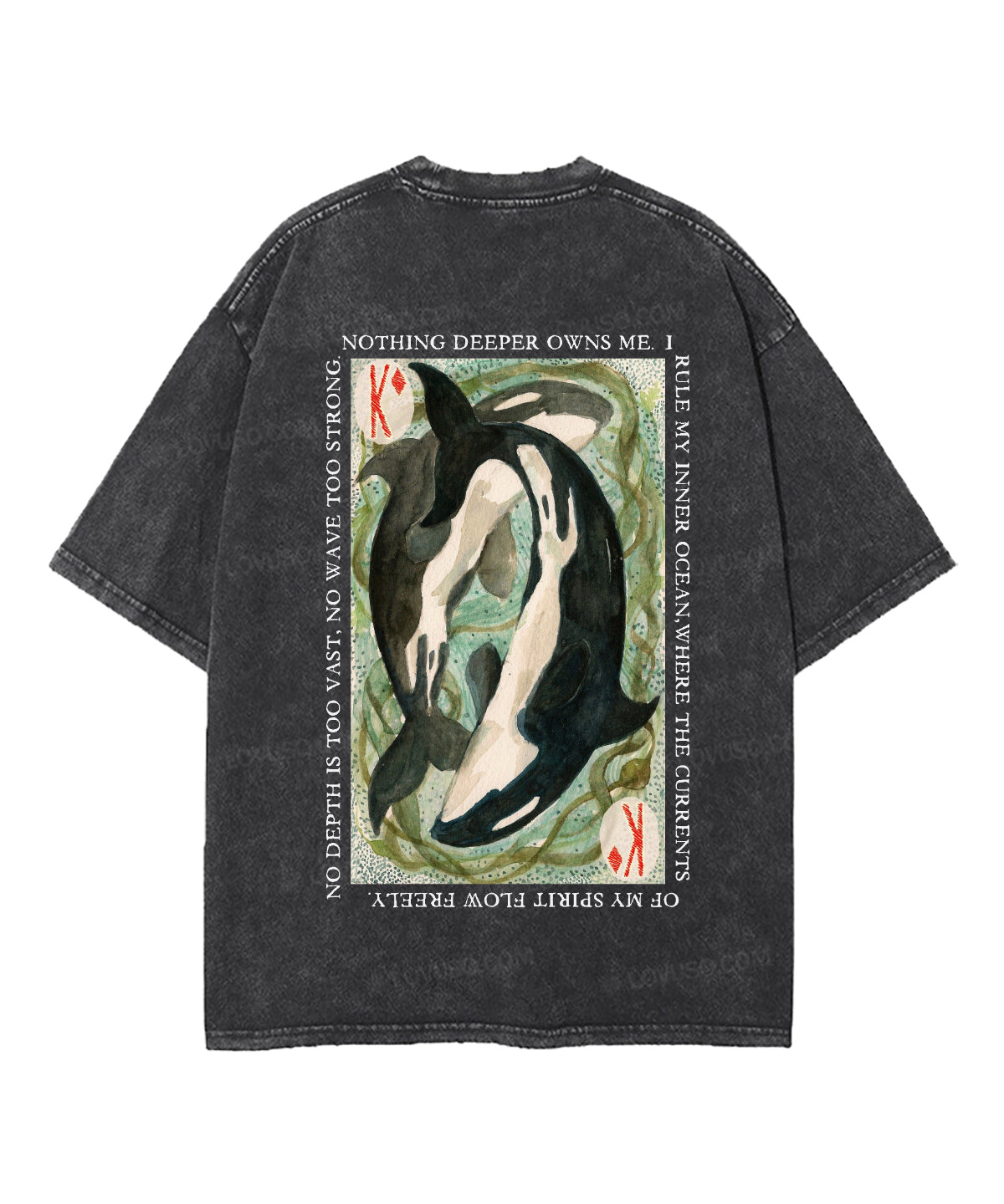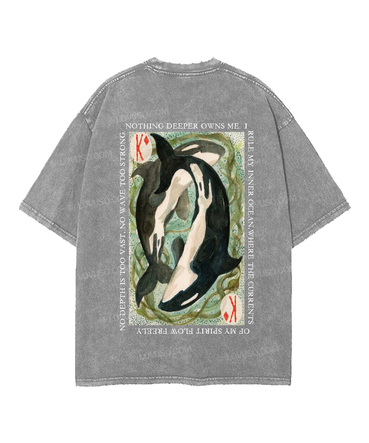 Retro Whale Tarot Double Sided Washed T-shirt