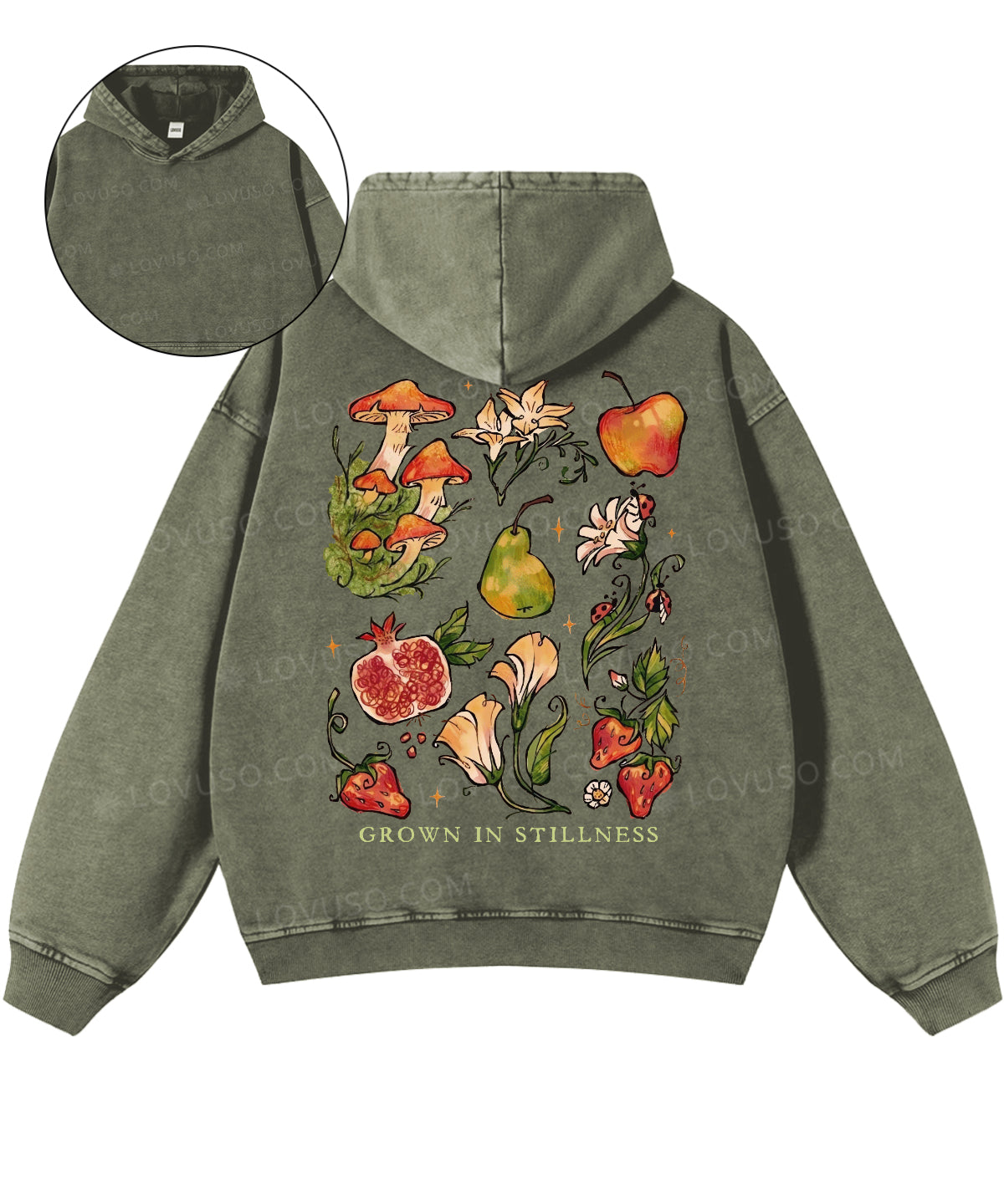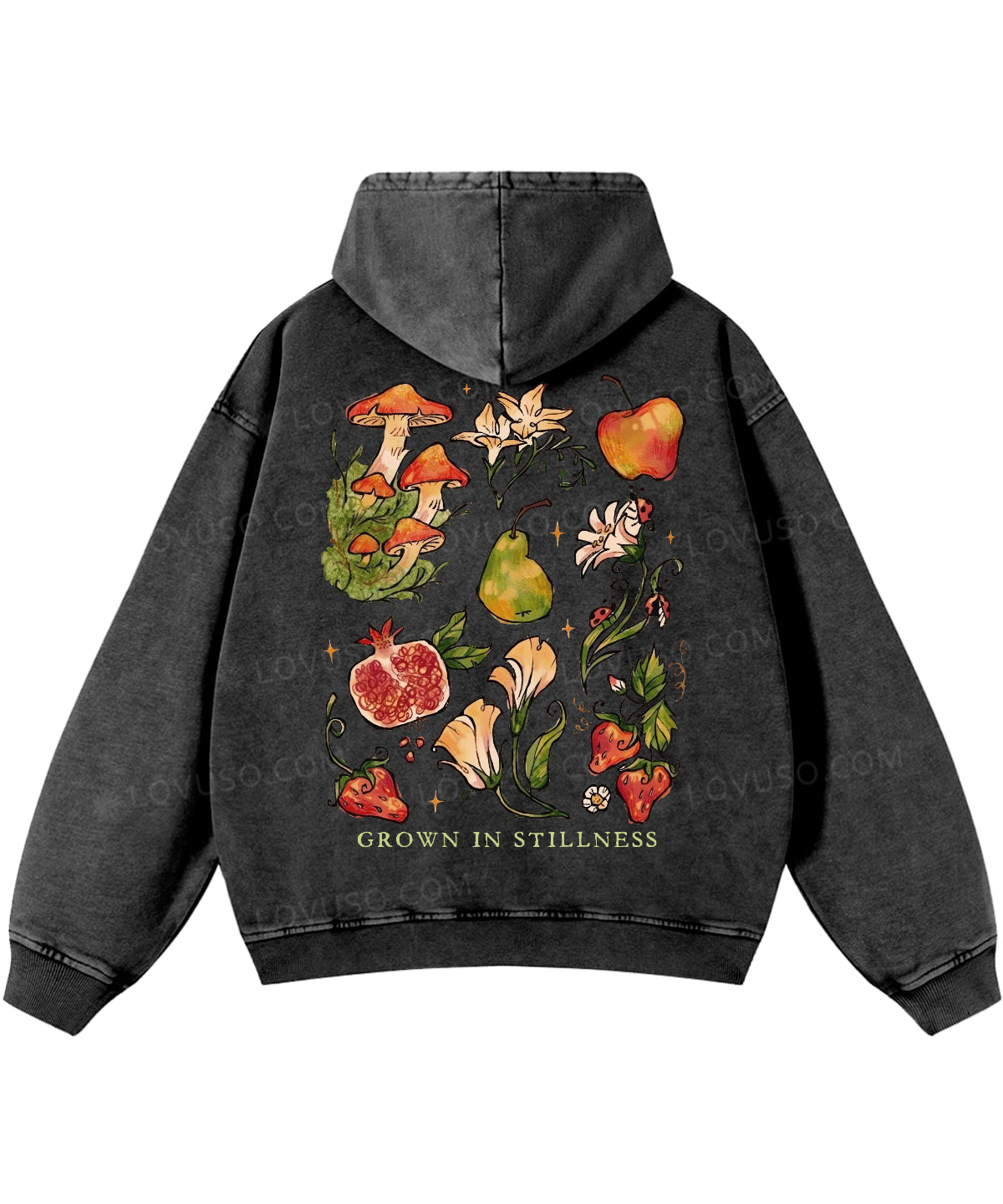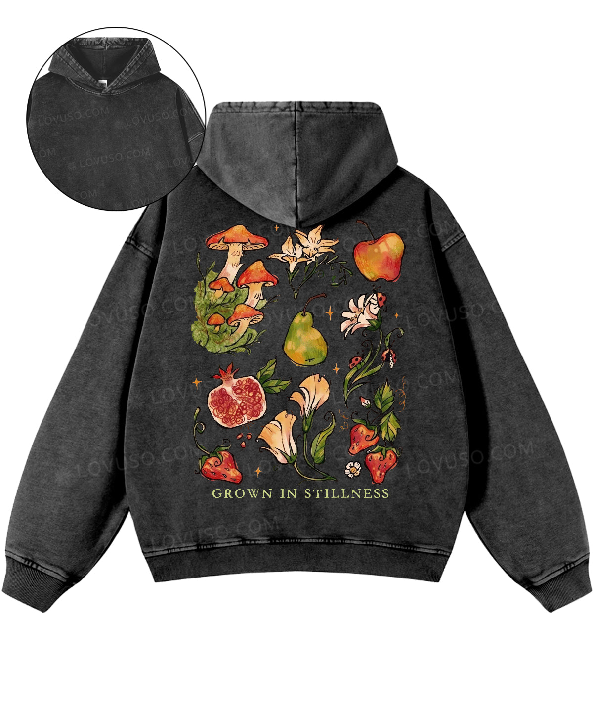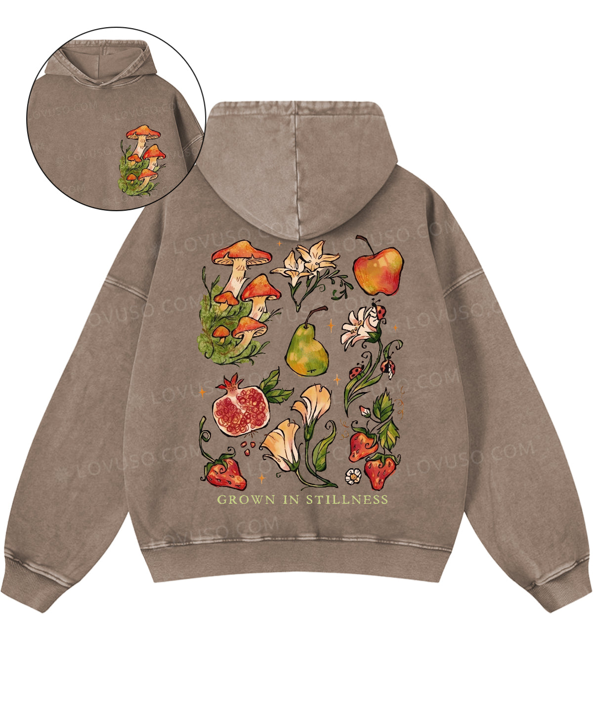 Retro Mushroom Grown In Stillness Double Sided Washed Hoodie