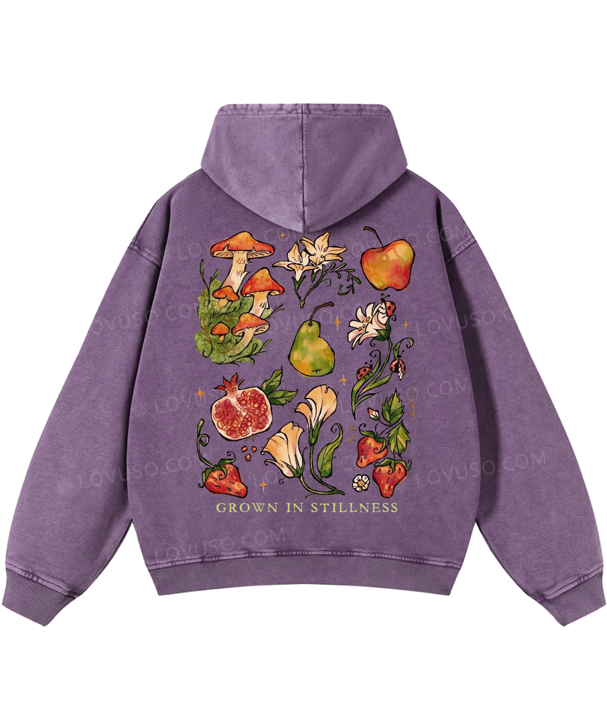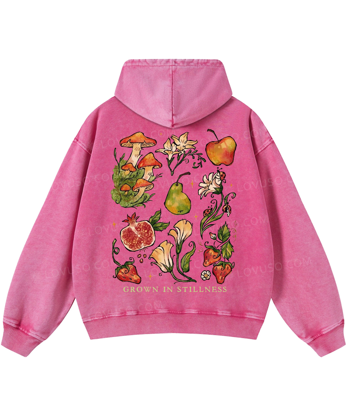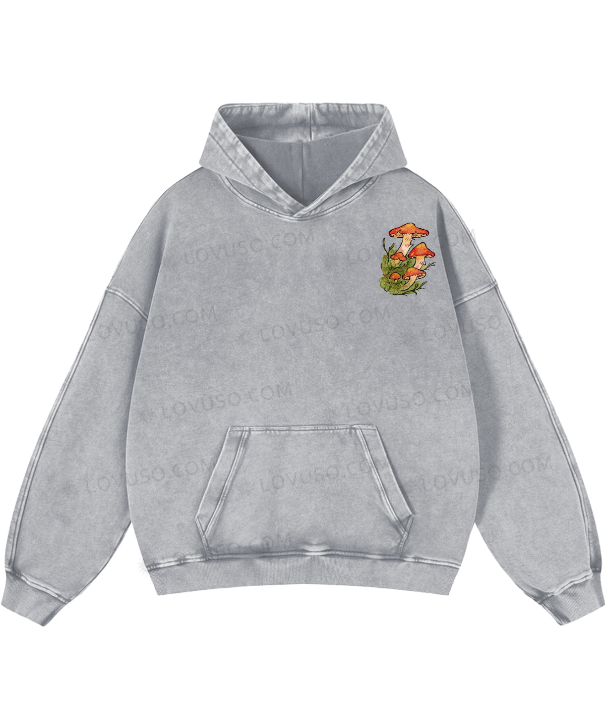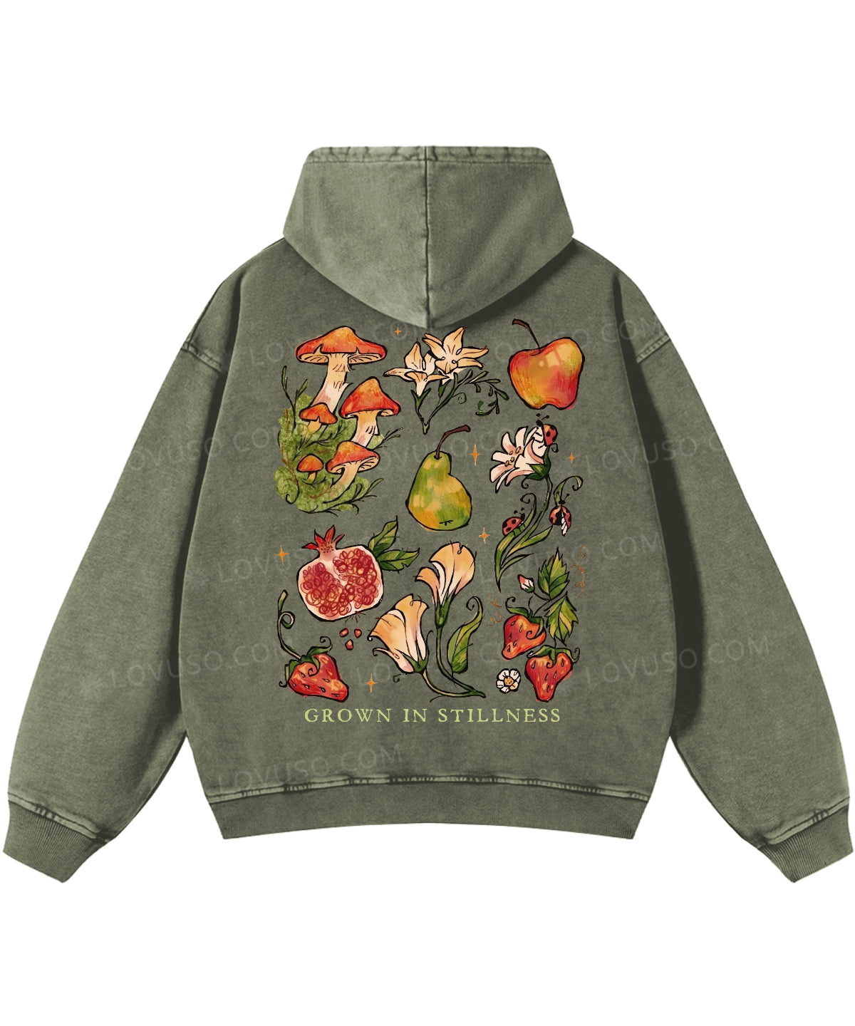 Retro Mushroom Grown In Stillness Double Sided Washed Hoodie