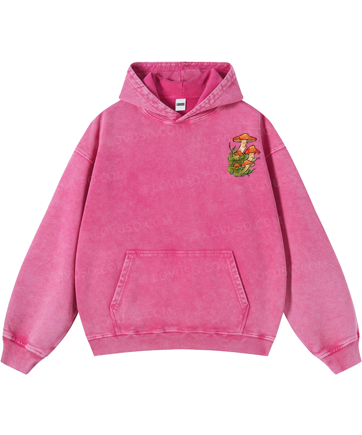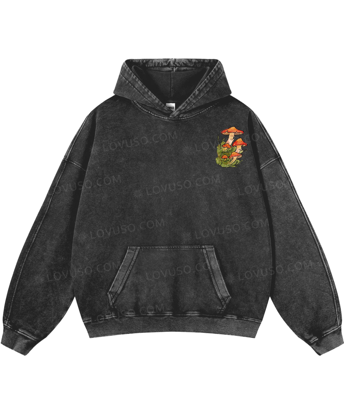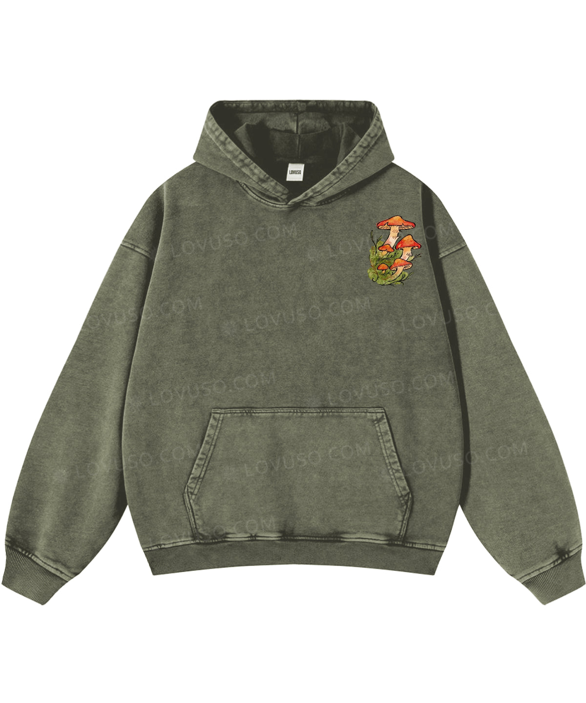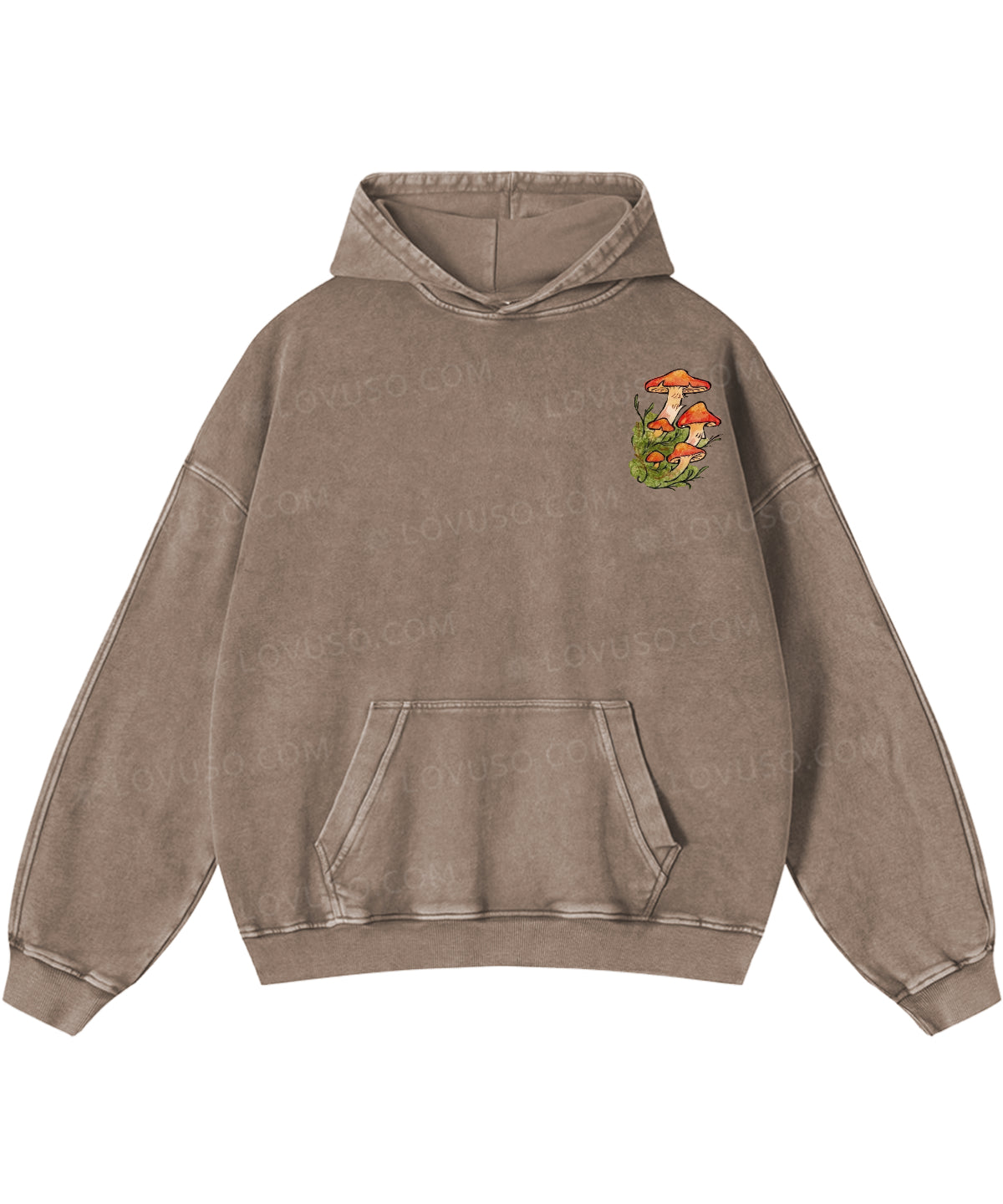 Retro Mushroom Grown In Stillness Double Sided Washed Hoodie