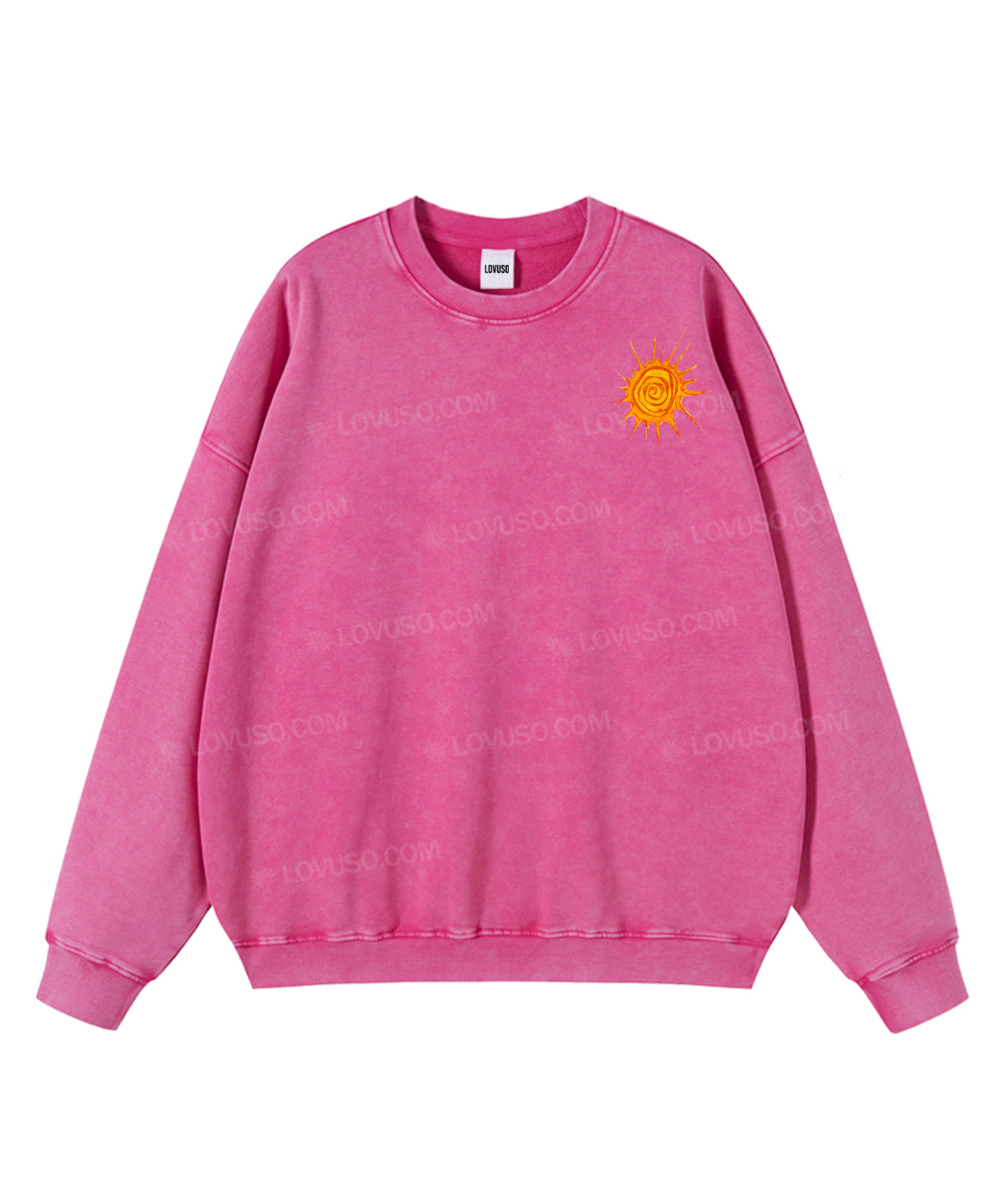 Washed for a naturally lived-in feel, this Lovuso crewneck sweatshirt carries the comfort of something familiar — soft, grounding, and quietly expressive. The classic crew neckline creates a calm inner space, offering a gentle sense of safety and ease, as if the world slows down when you slip it on. With its worn-in texture and relaxed silhouette, it’s designed for slow days, creative flow, and moments of returning to yourself.
