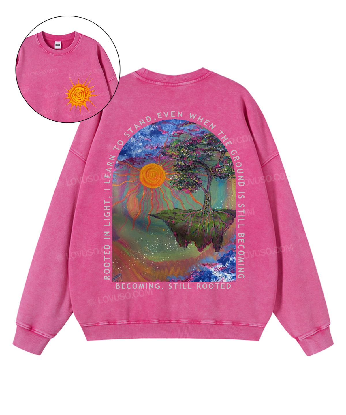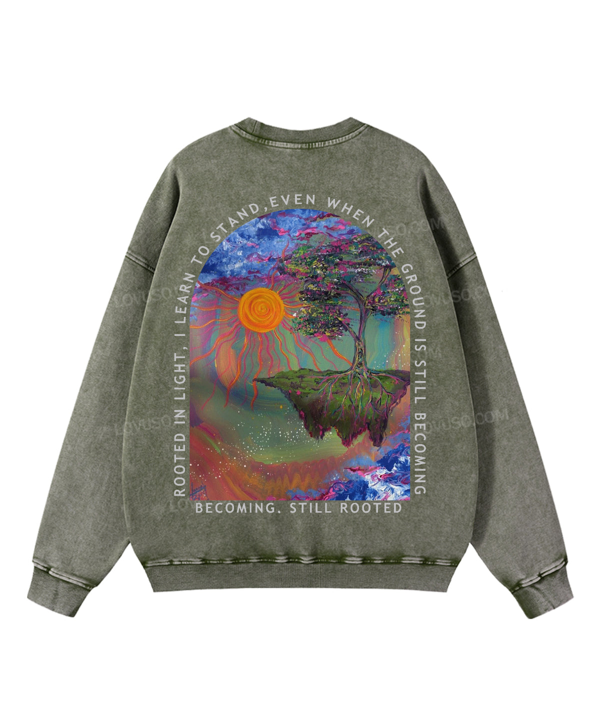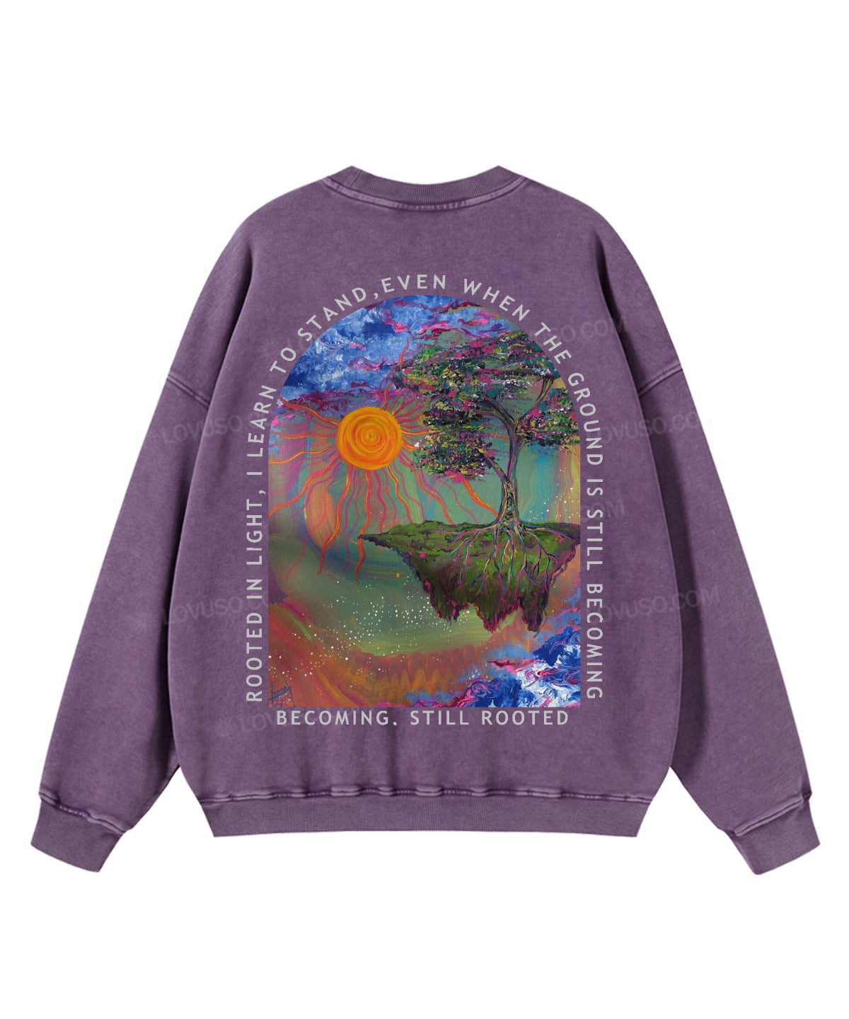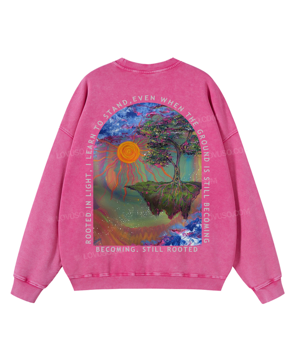 Rooted In Light I Learn To Stand Double Sided Washed Sweatshirt