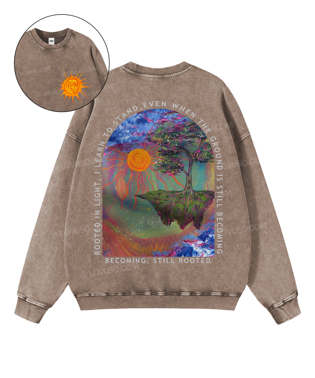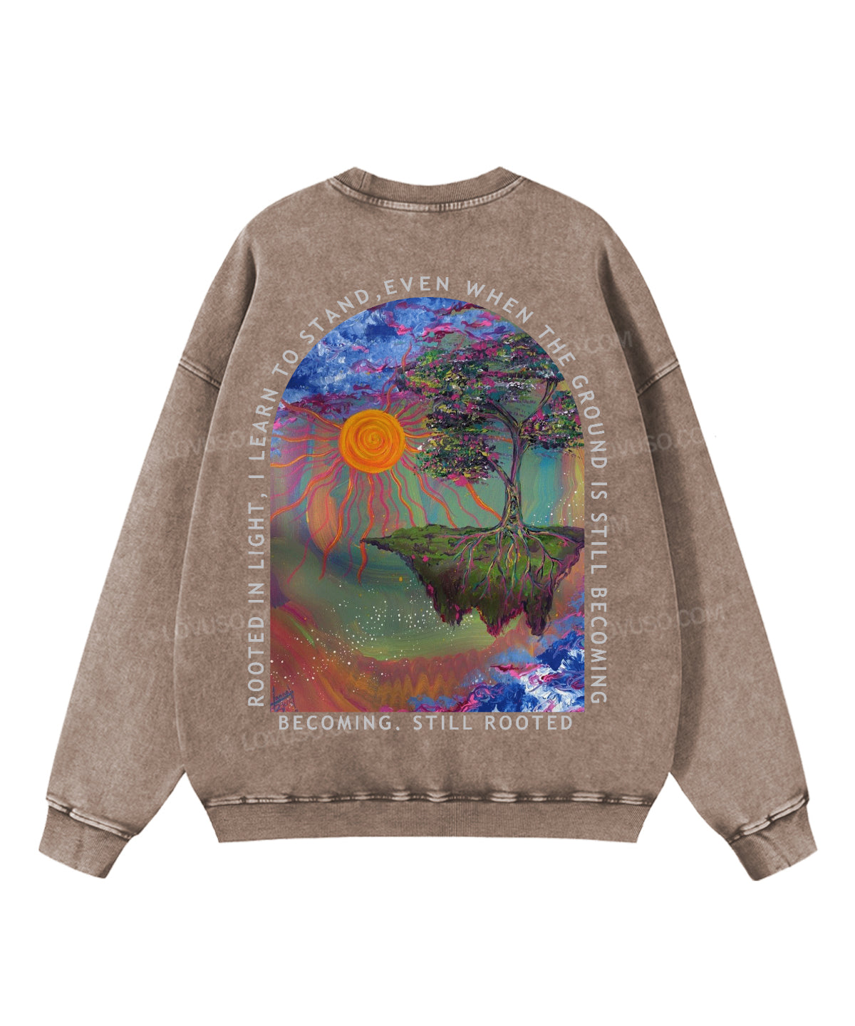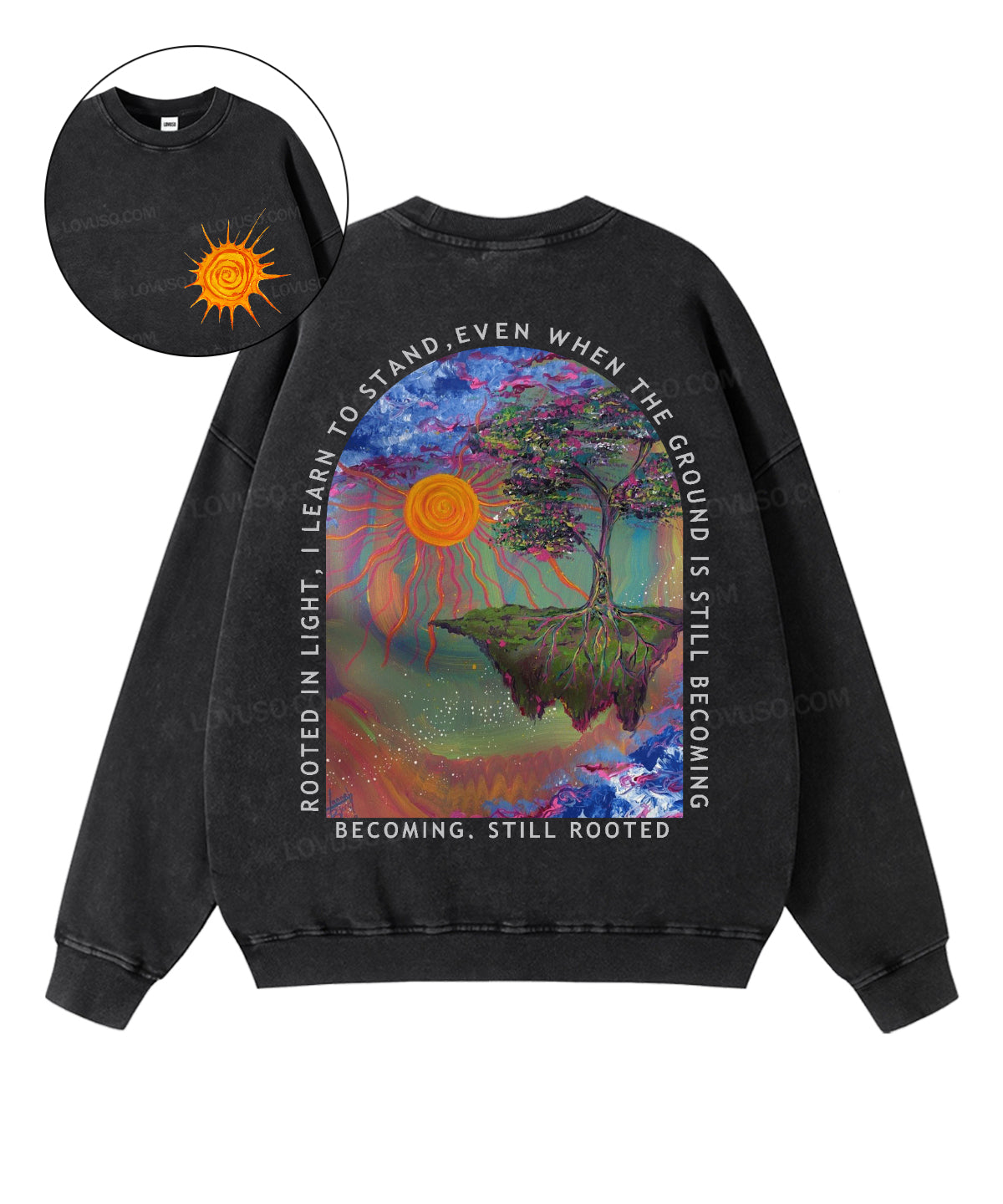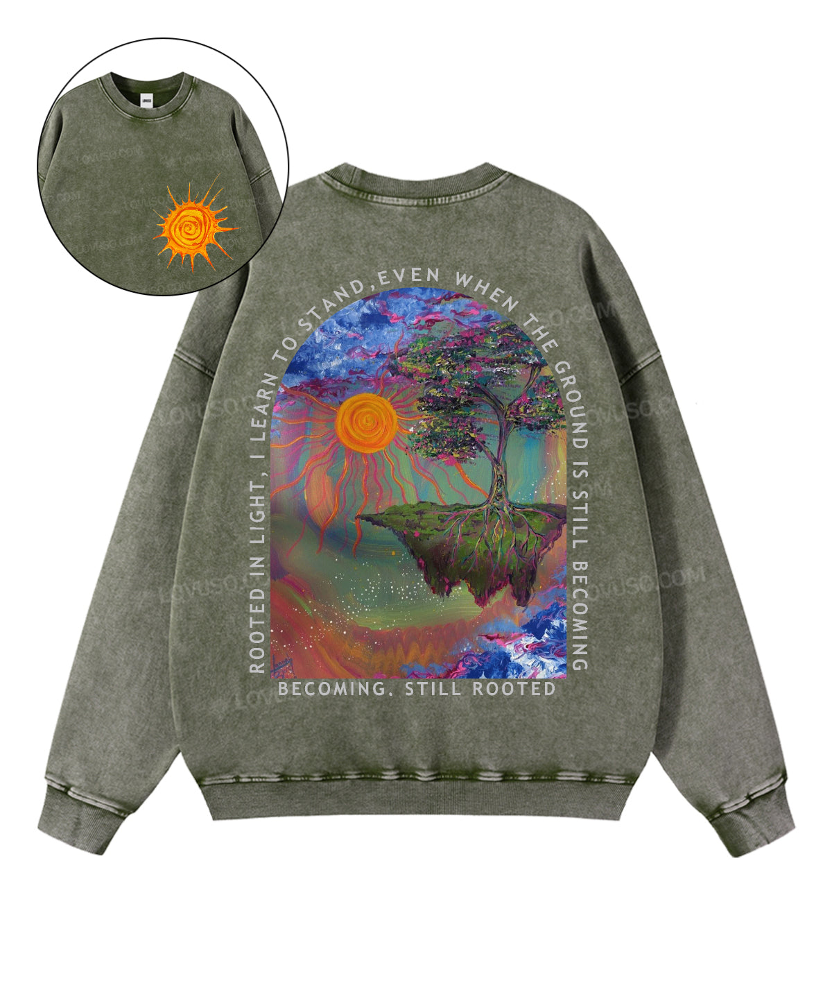 Rooted In Light I Learn To Stand Double Sided Washed Sweatshirt