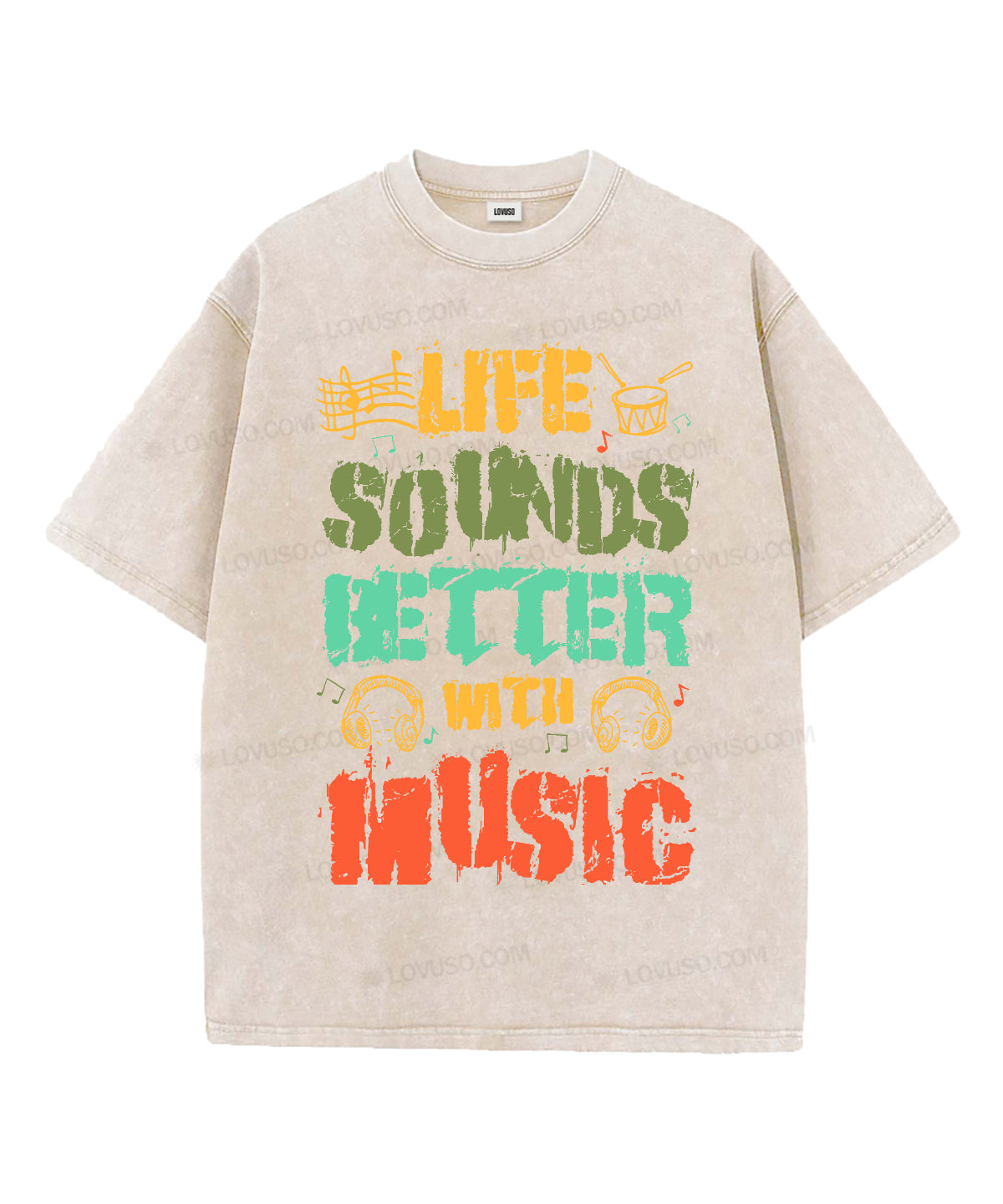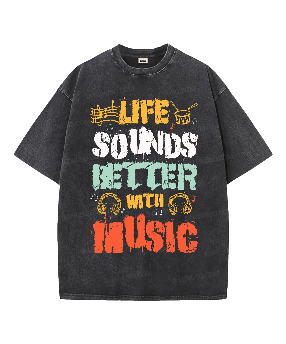 Life Sounds Better With Music Double Sided Washed T-shirt