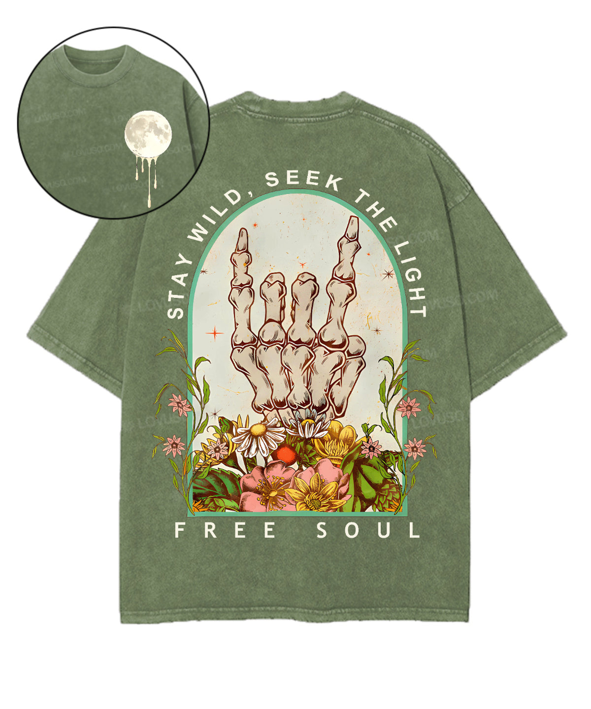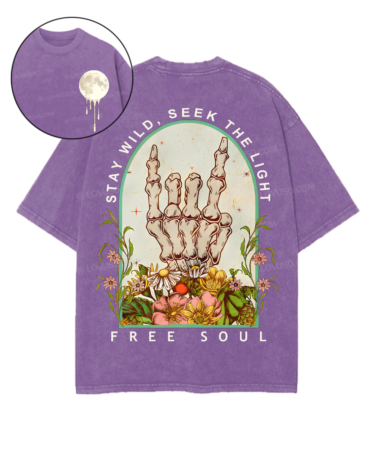 Stay Wild Seek The Light Double Sided Washed T-shirt