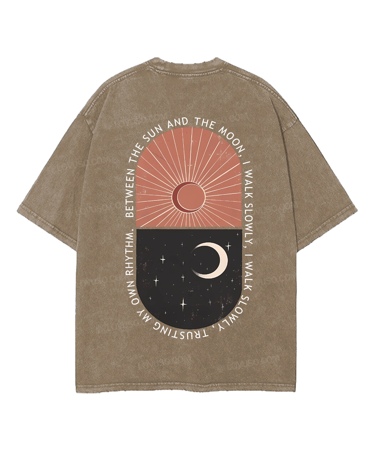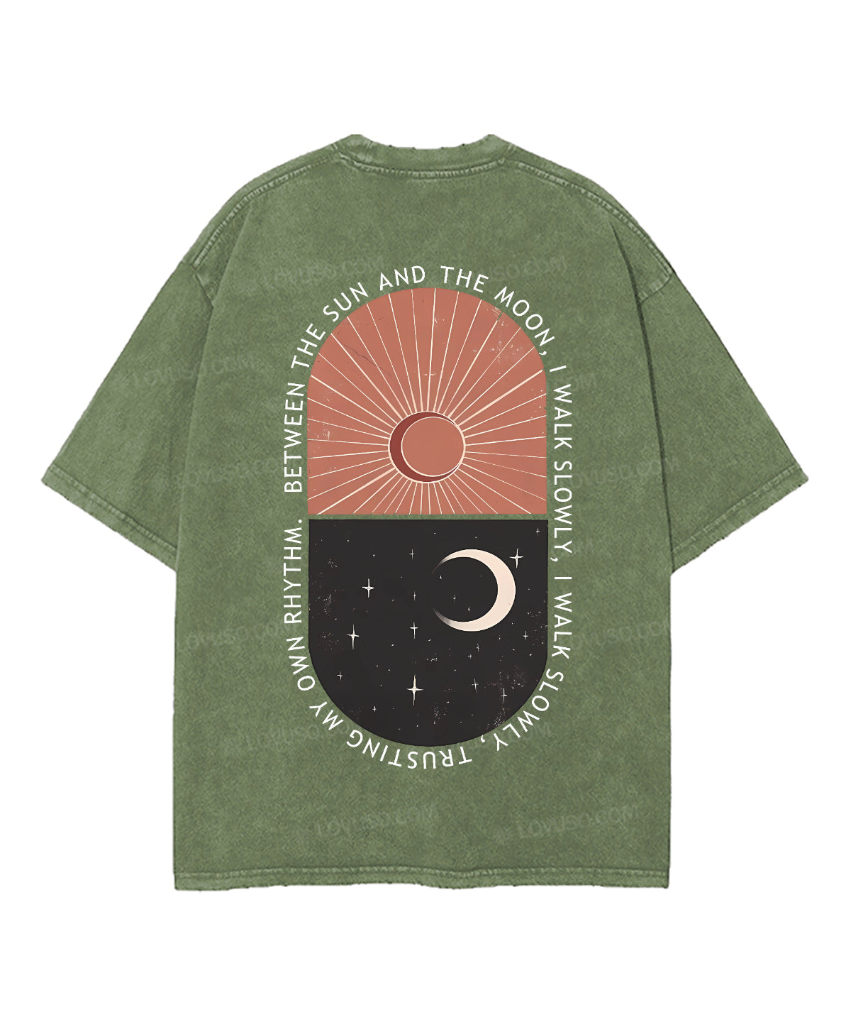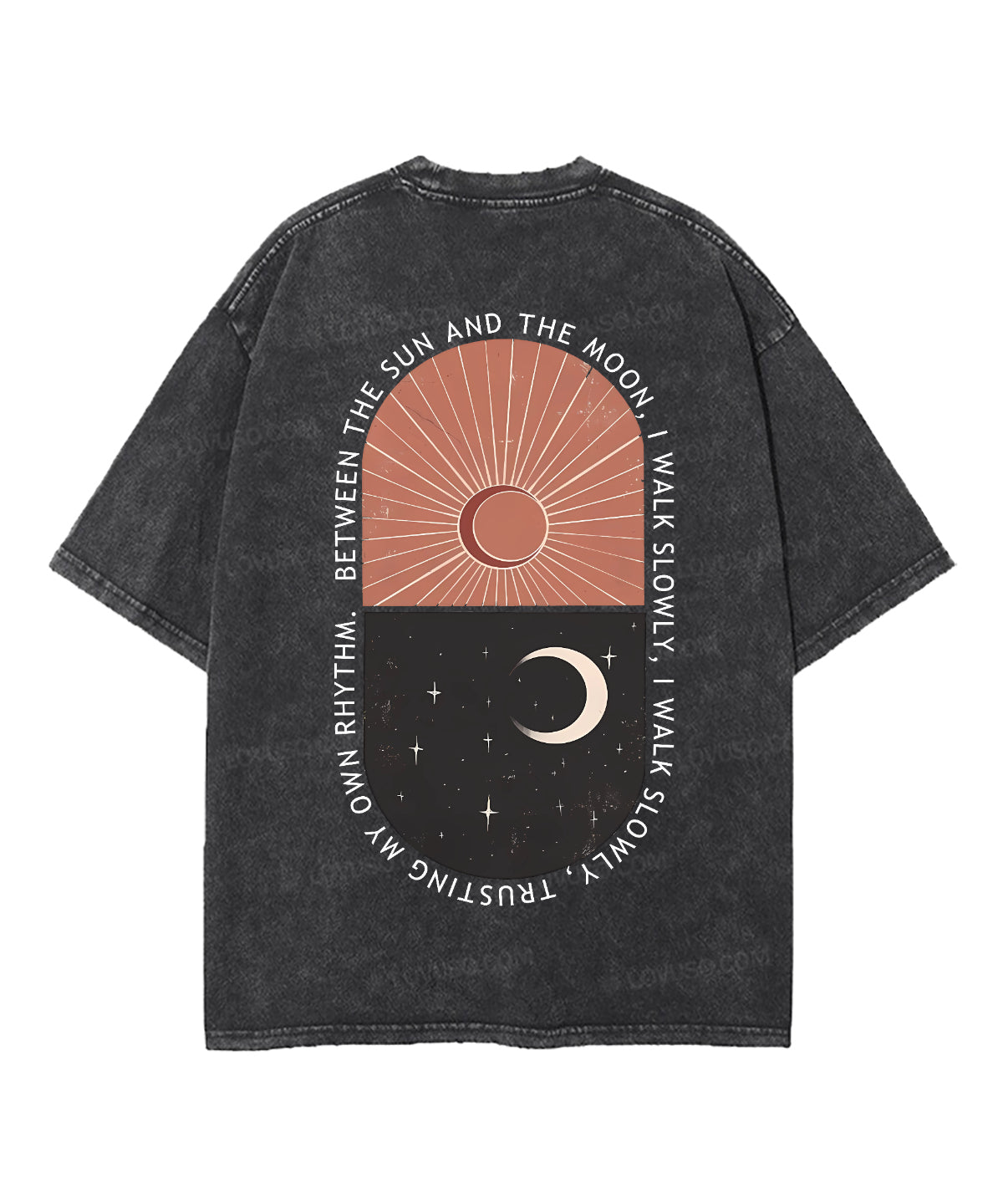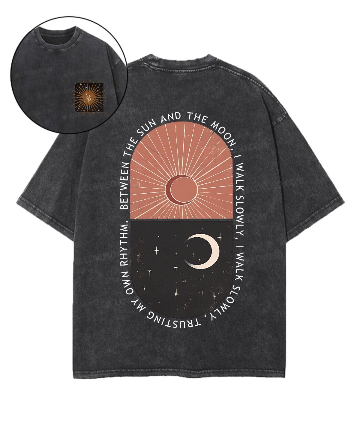 Mysic Sun Moon I Walk Slowly Double Sided Washed T-shirt