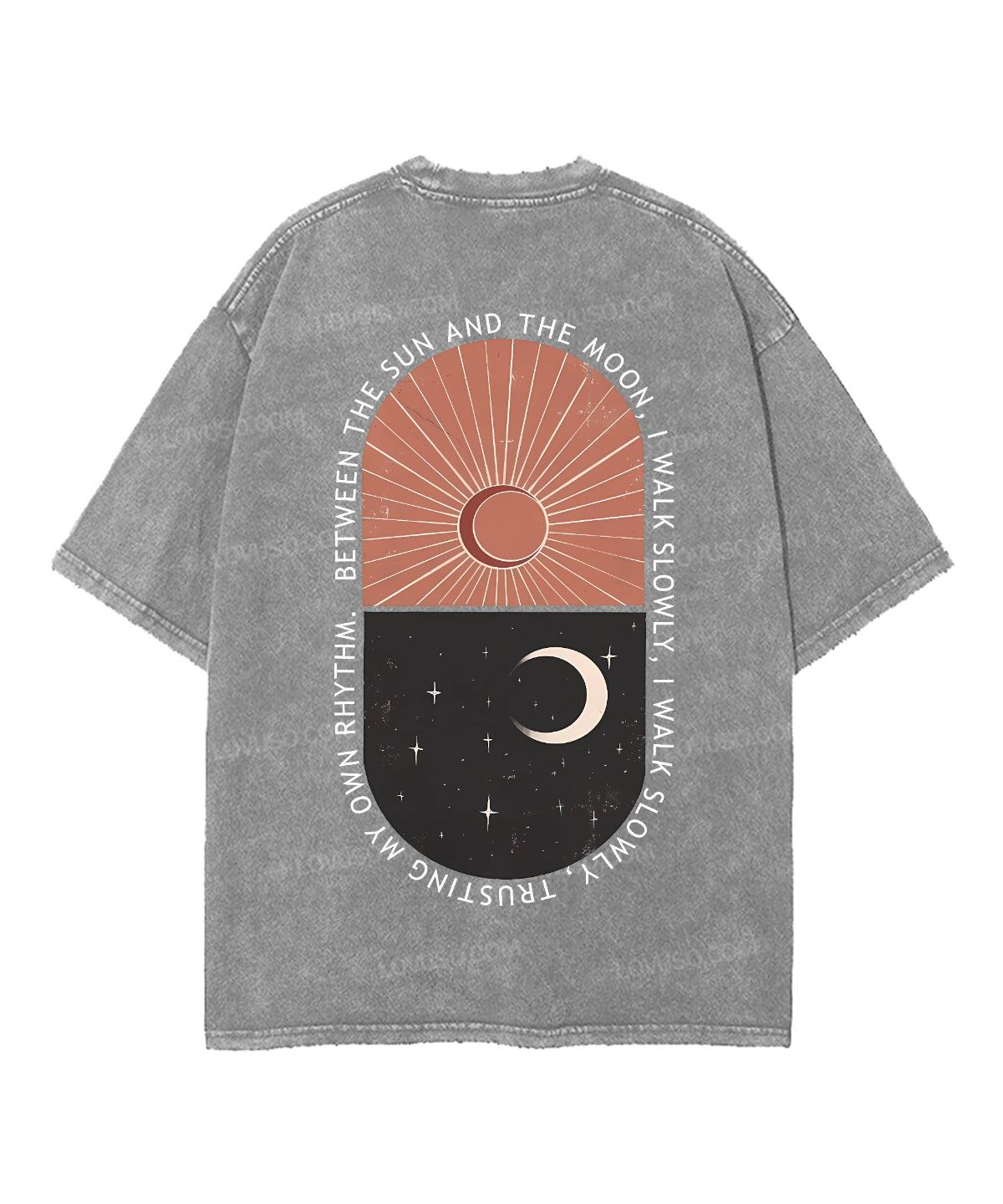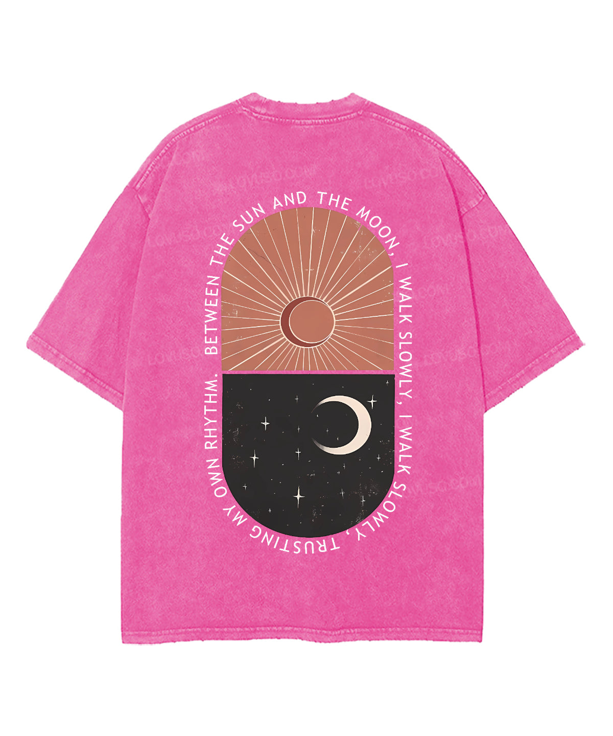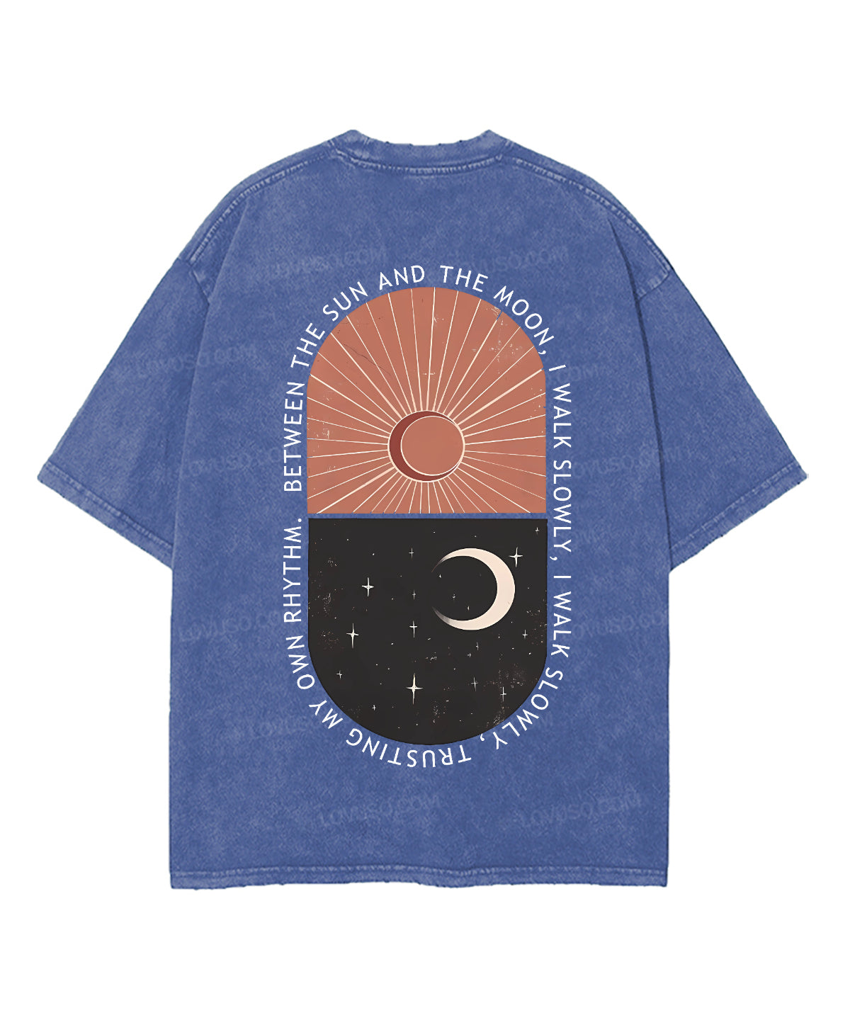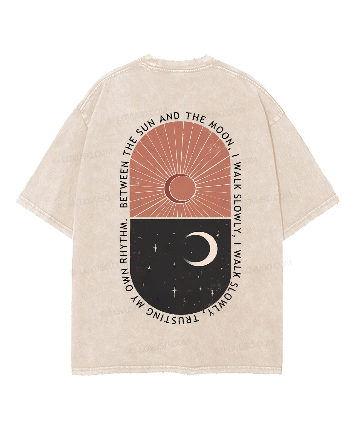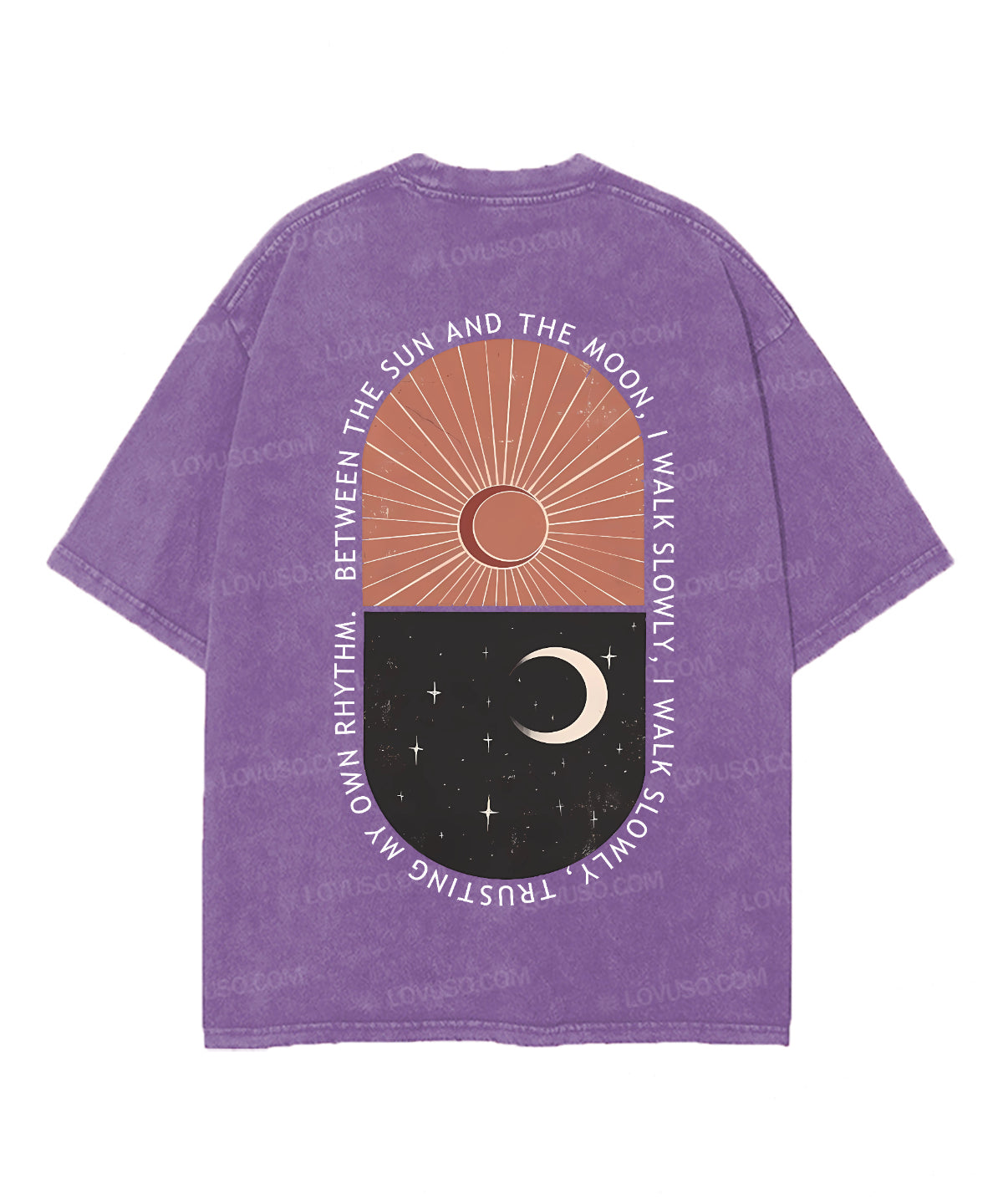 Mysic Sun Moon I Walk Slowly Double Sided Washed T-shirt