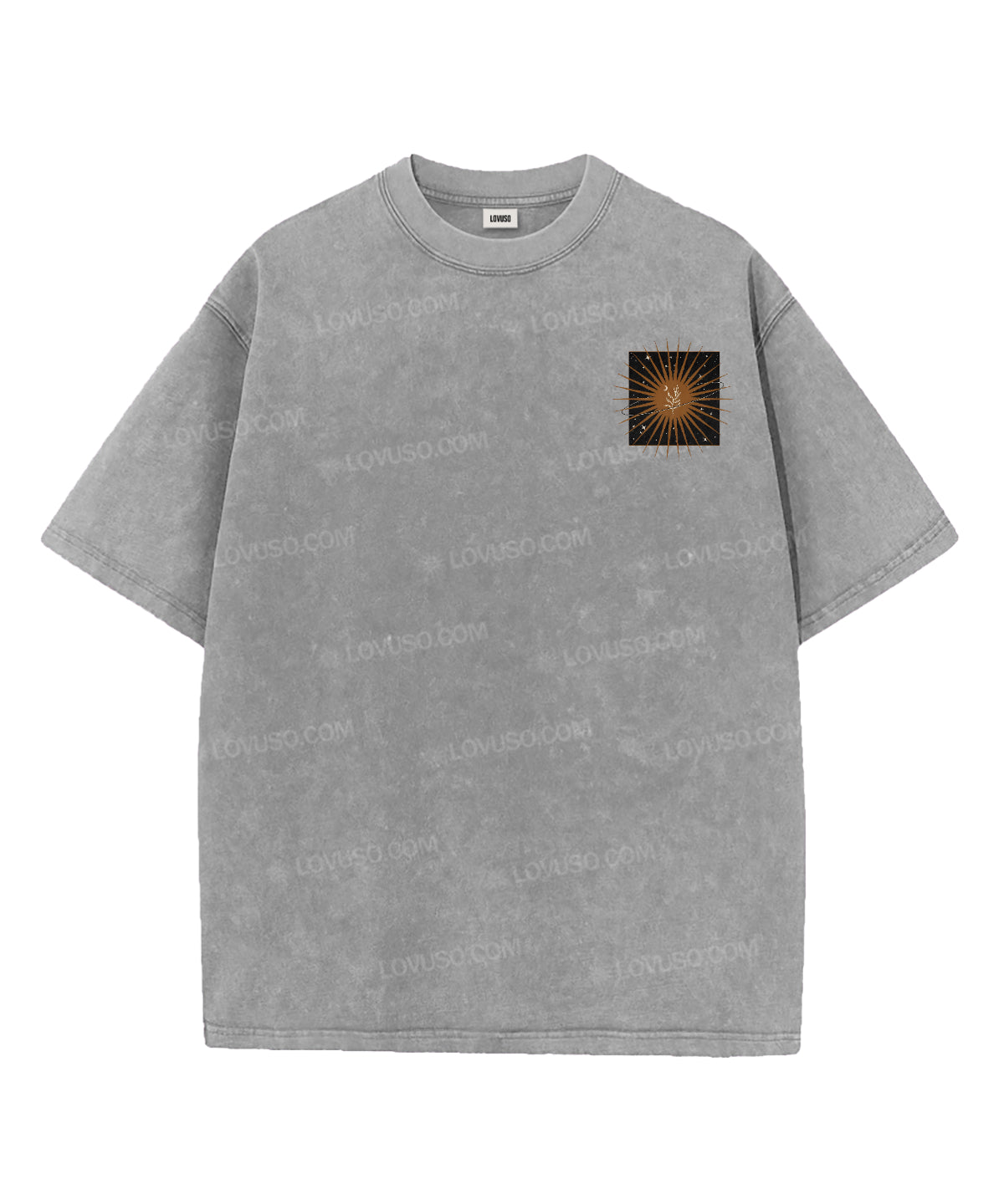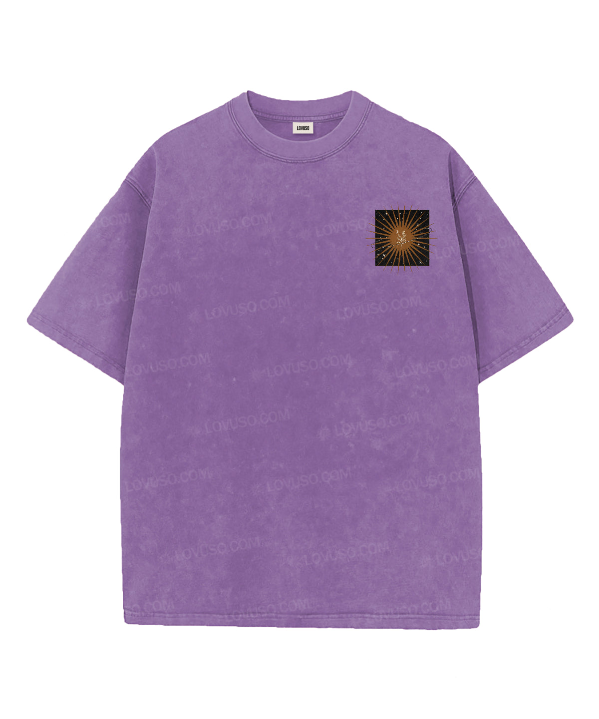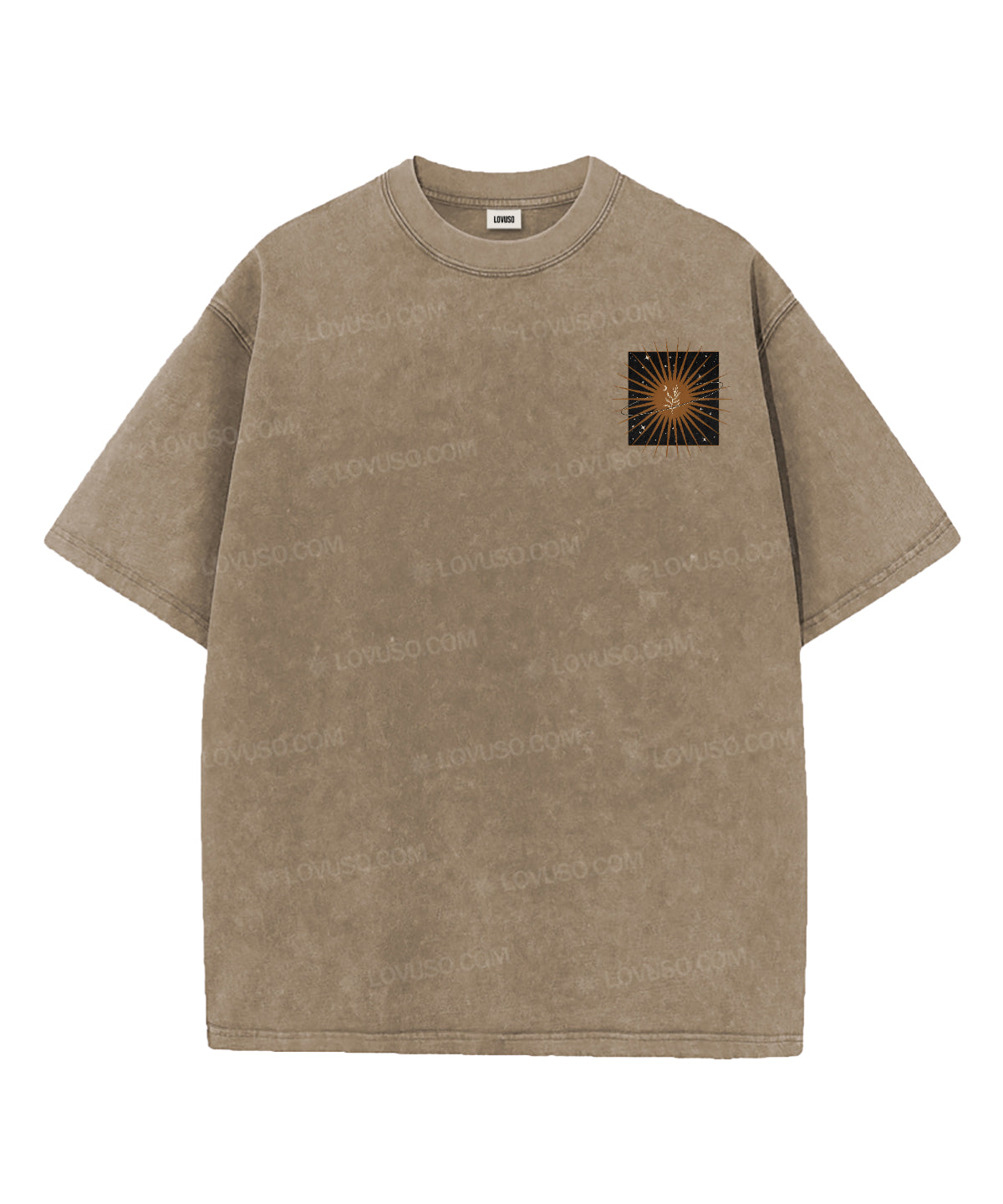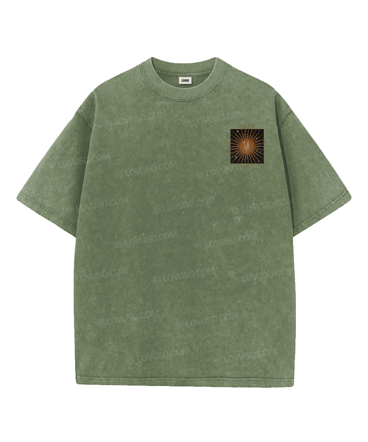 Mysic Sun Moon I Walk Slowly Double Sided Washed T-shirt
